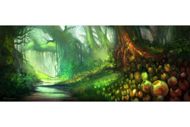 Лотос и водопад. Фентези-иллюстрации с цветами. Цифровой арт by Jason Chan