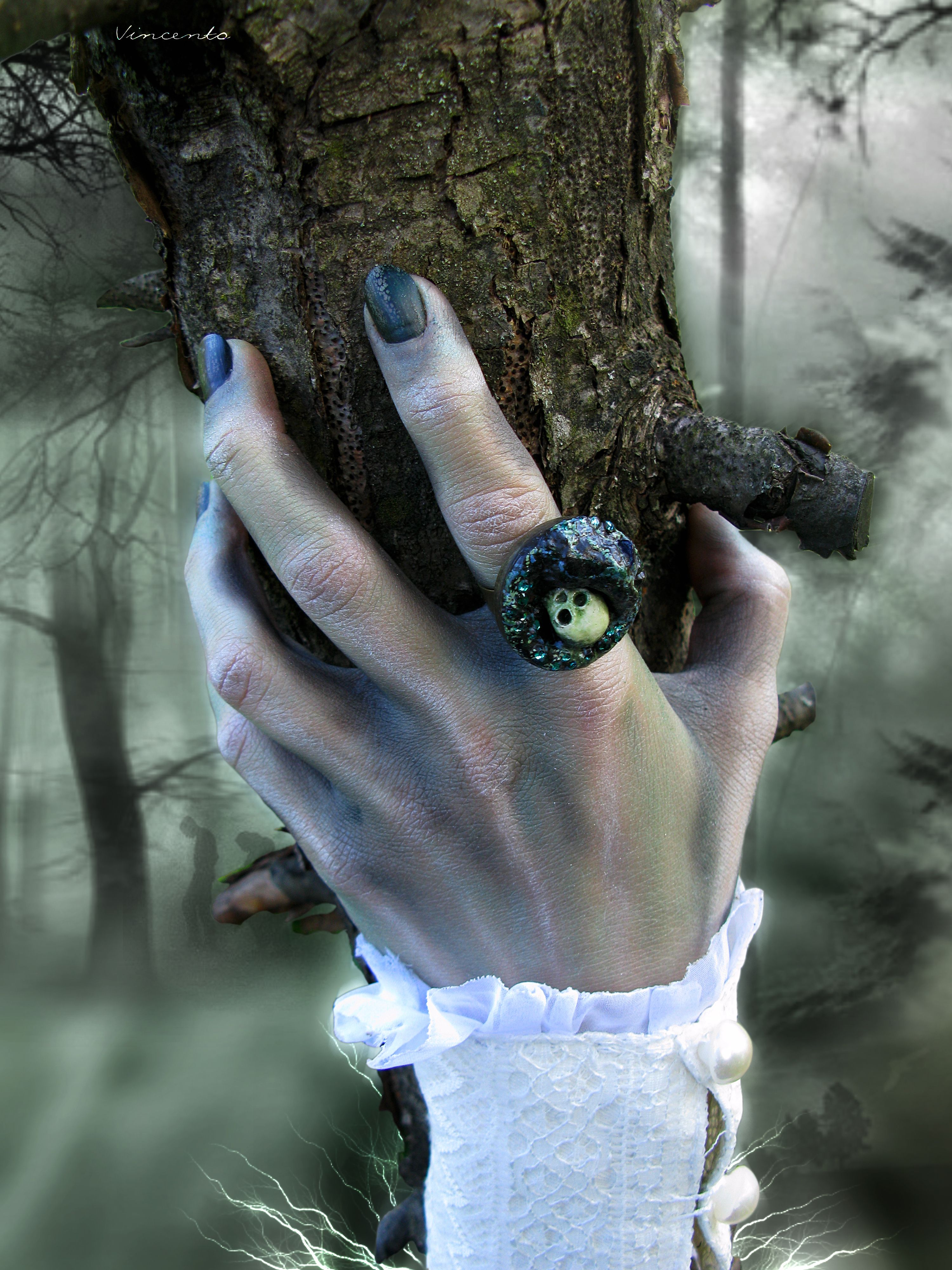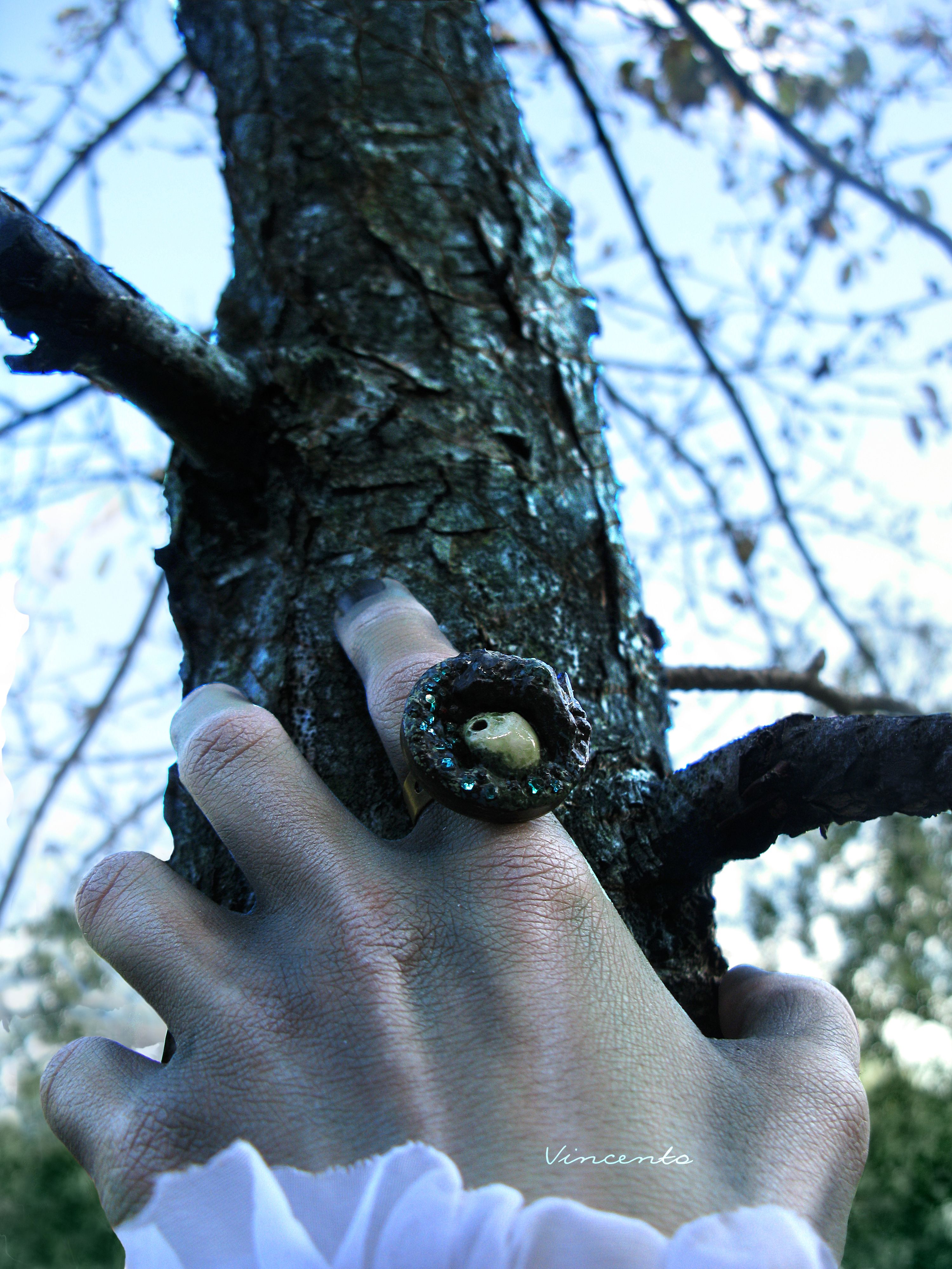 - Довольно эпатажное кольцо с атрибутами готики.