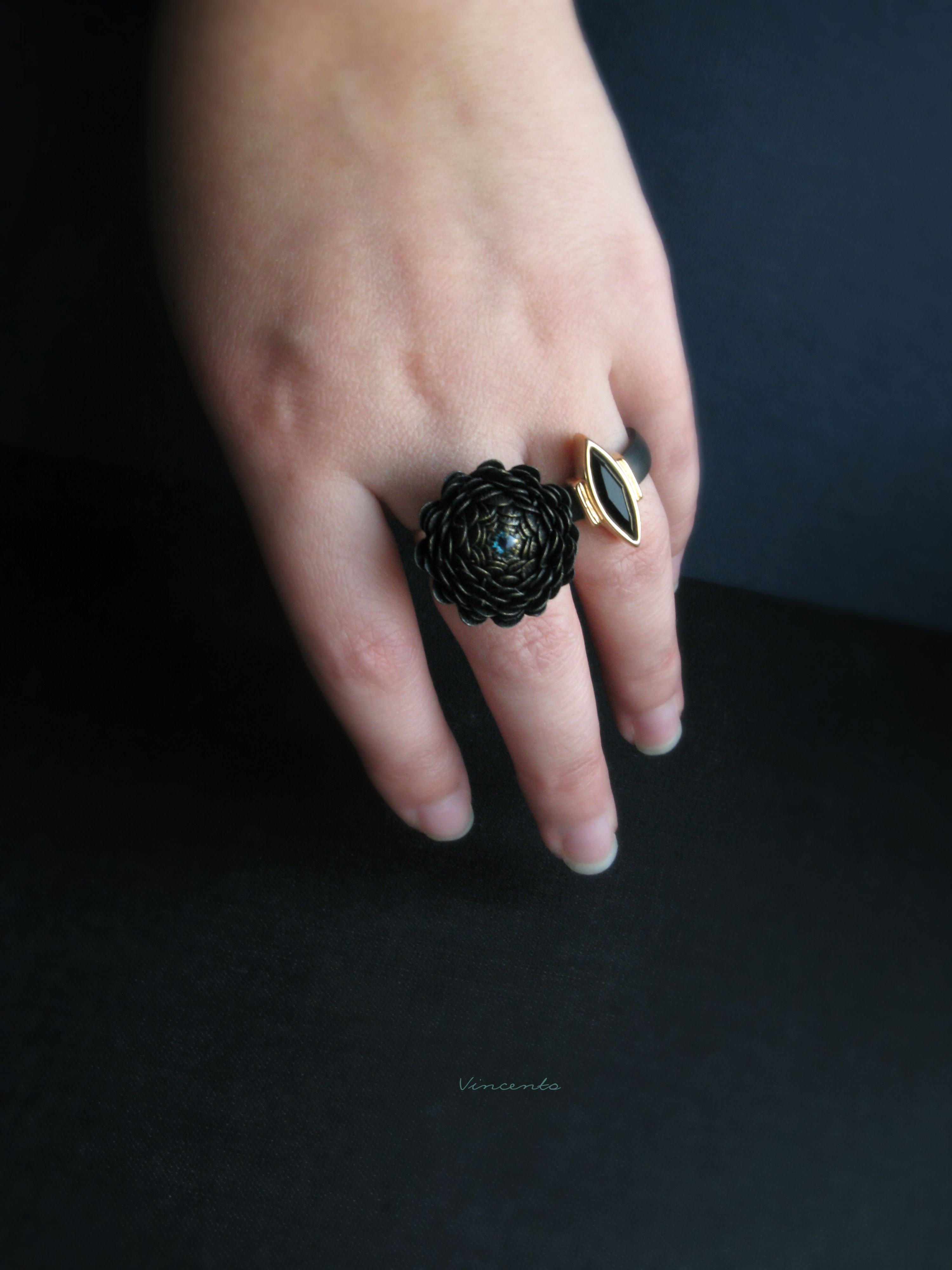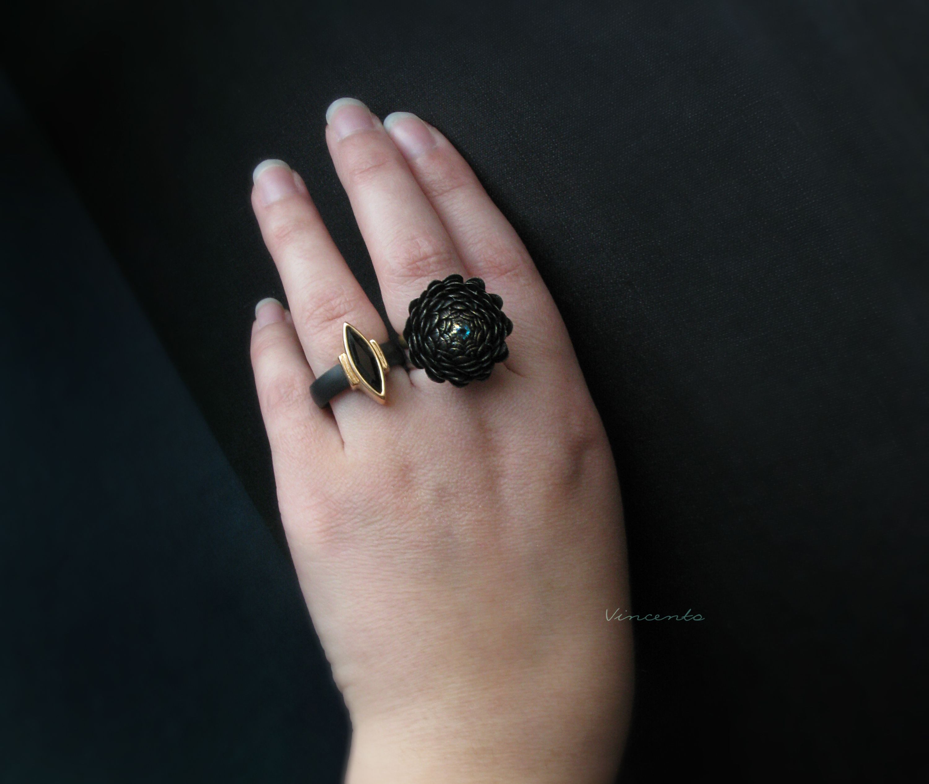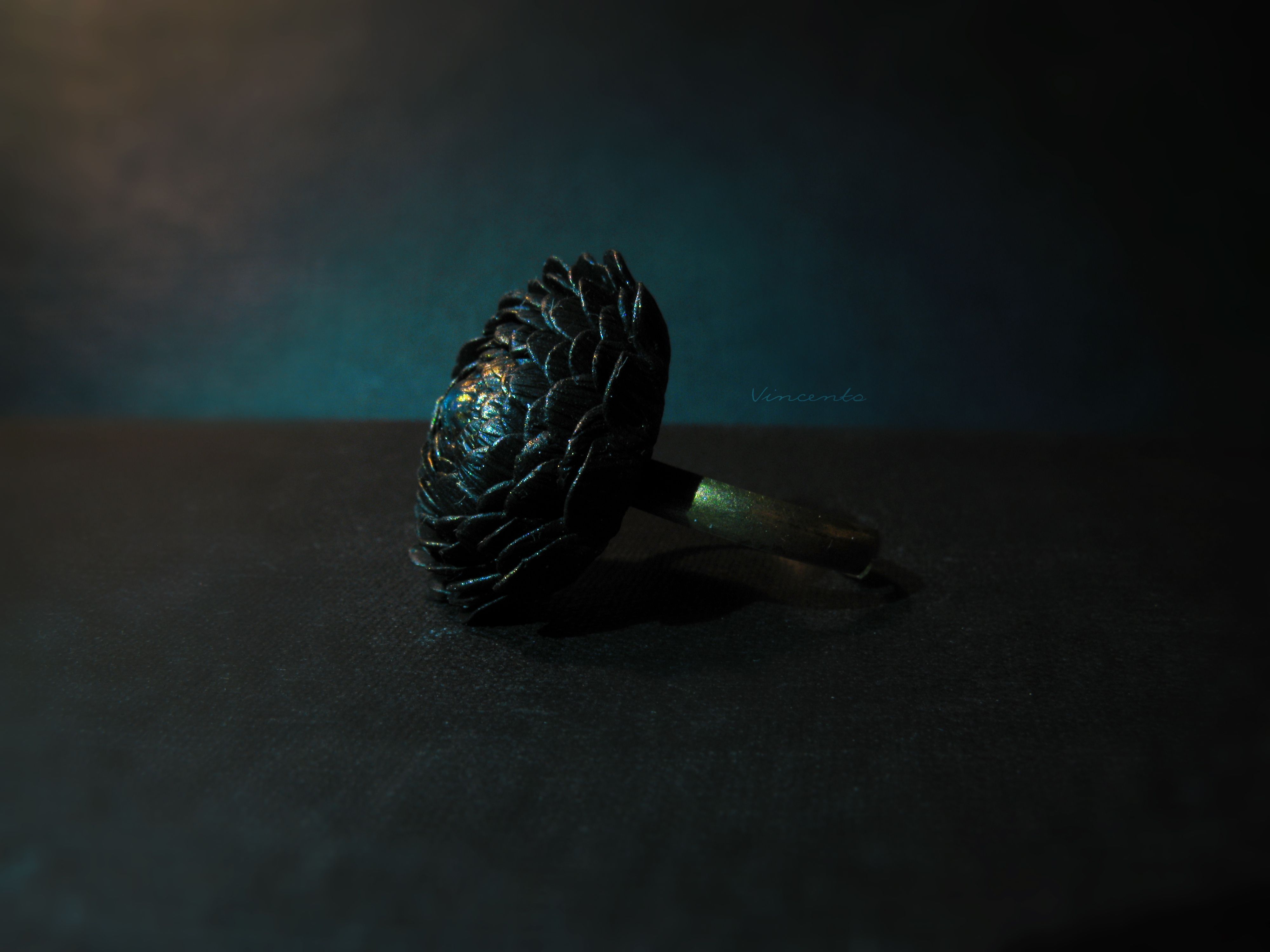 - "Око Ворона" - эффектное готическое кольцо в виде фэнтезийного цветка с тонкими чёрными лепестками и мистической сине-зелёной сердцевинкой.