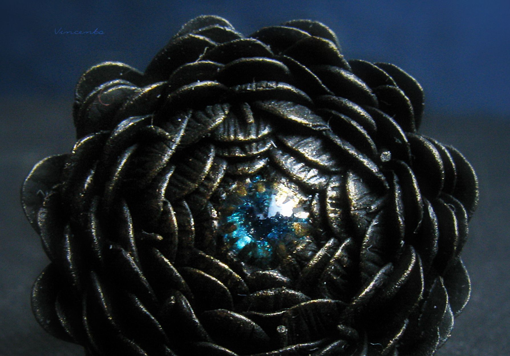 - Лёгкий бронзовый отлив лепестков делает колечко ещё более загадочным... А сердцевину, напоминающую глаз ворона, можно разглядывать часами...