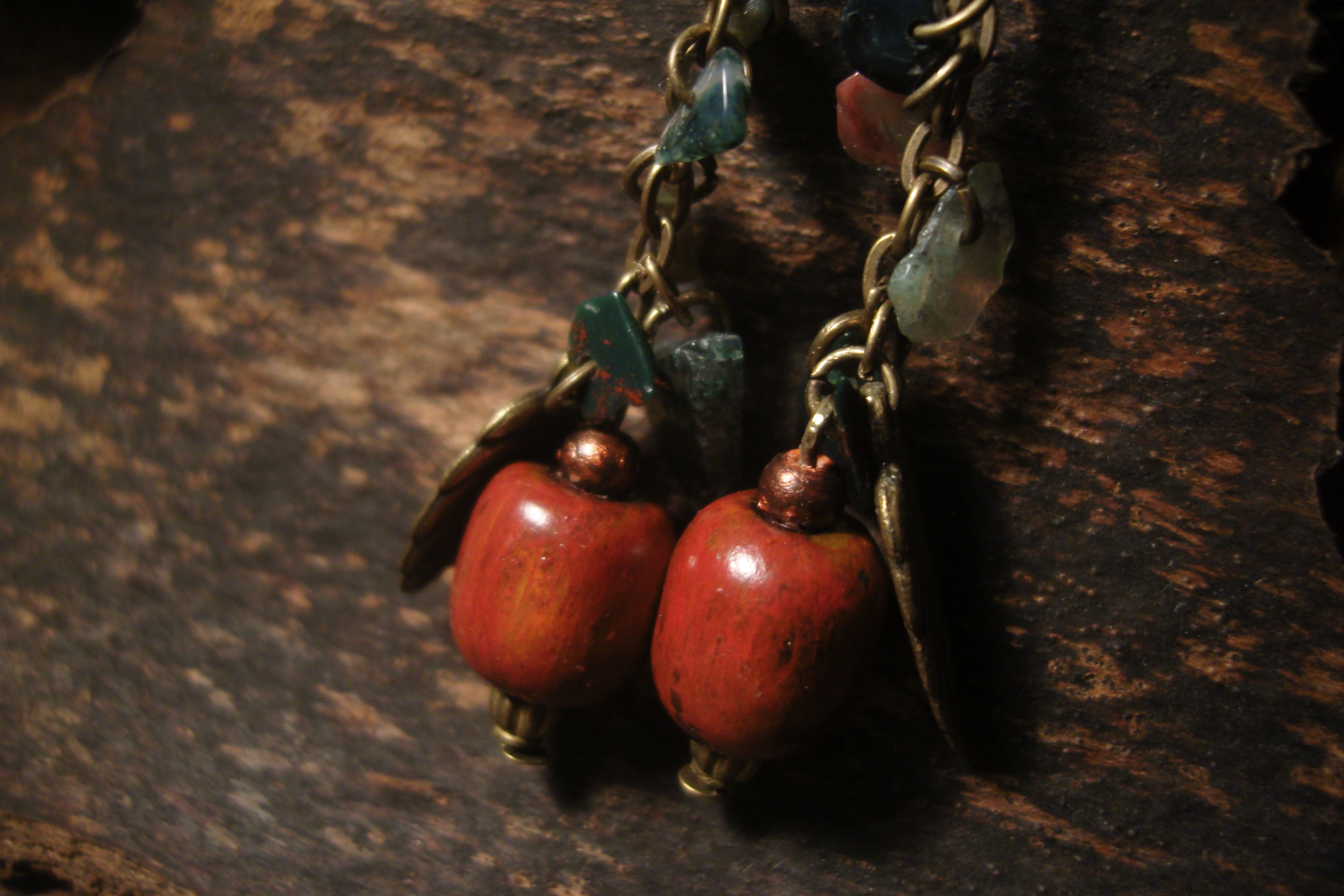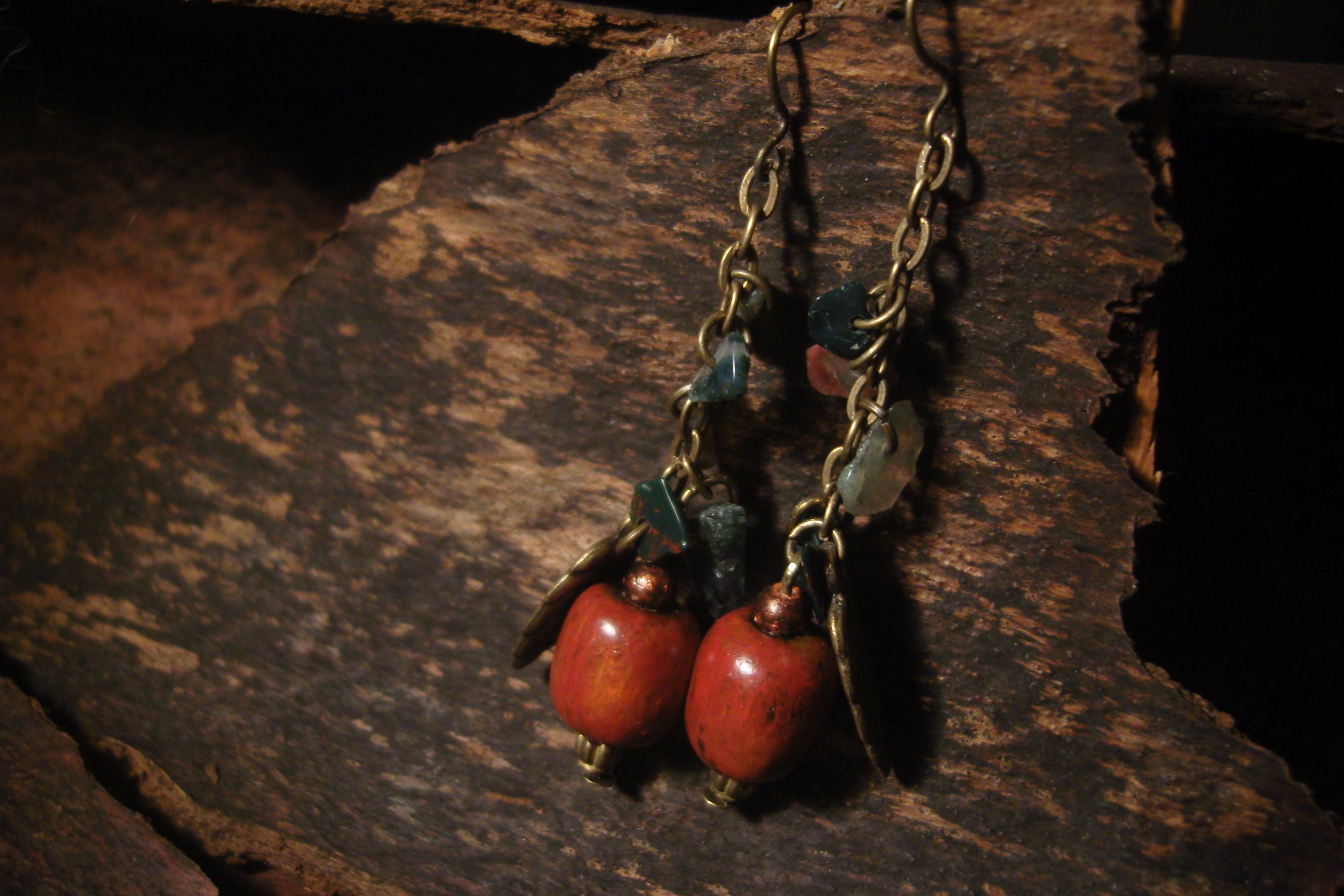 - Красно-коричневые деревянные бусины ручной работы яркими всполохами задают тон всему образу, нарядный, уютный, осенний...