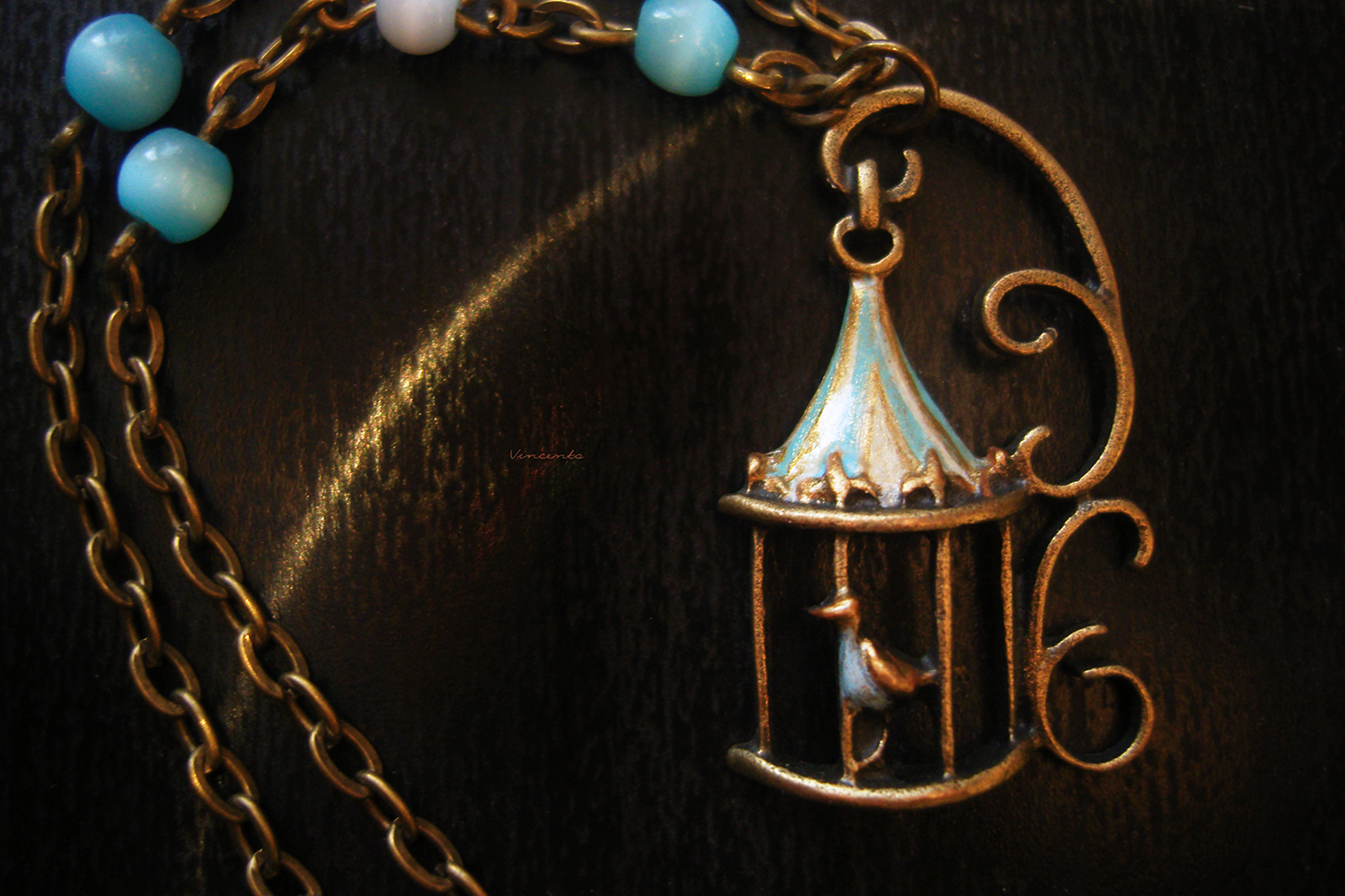 - Нежная подвесочка с птичкой в клетке на тонкой цепочке в стиле винтажного бохо.