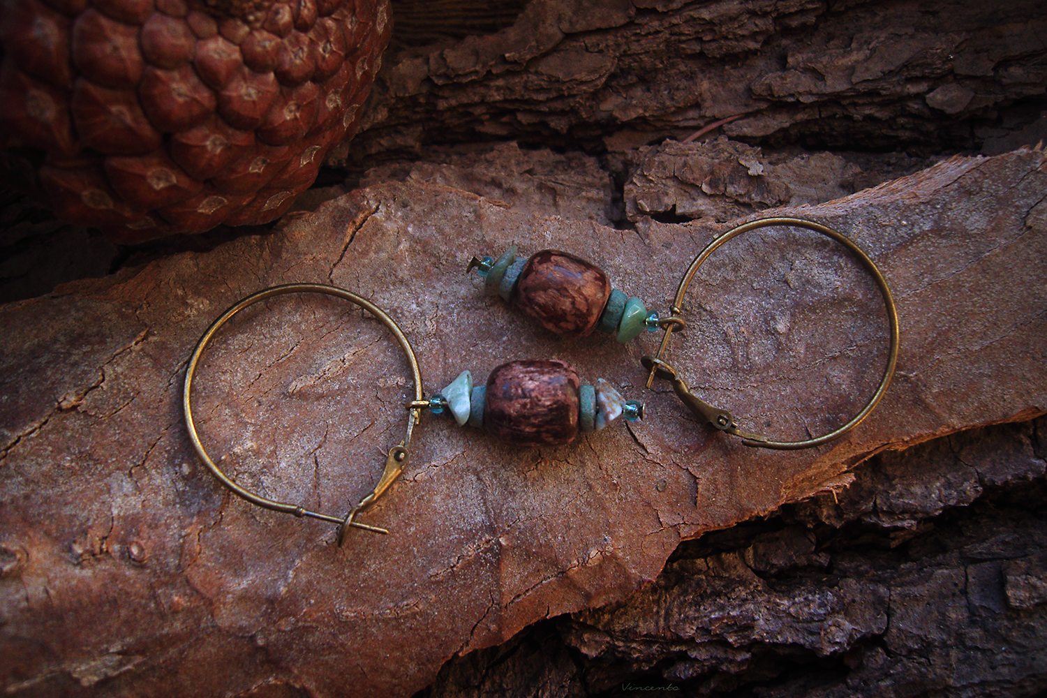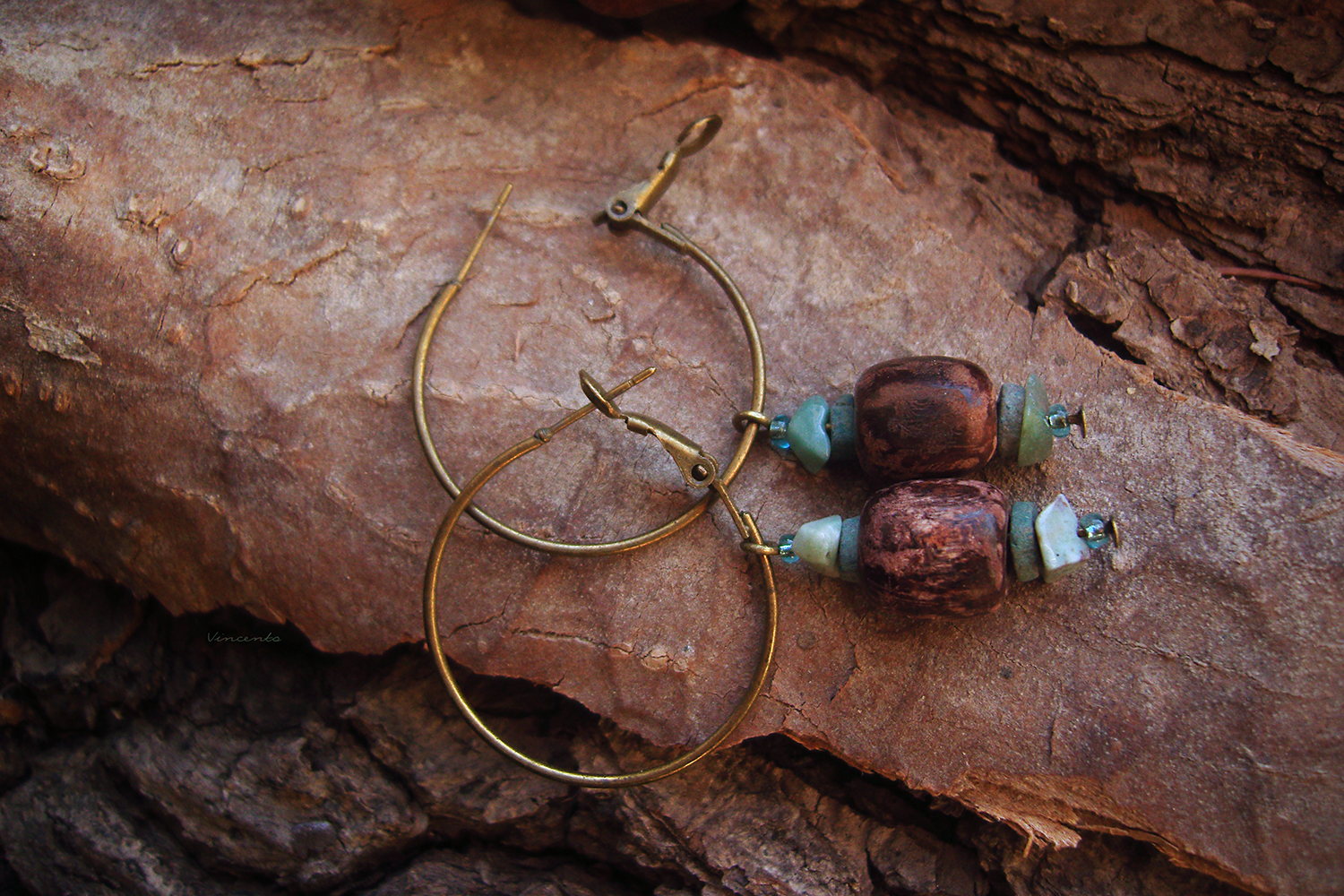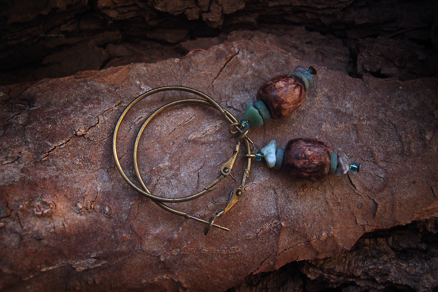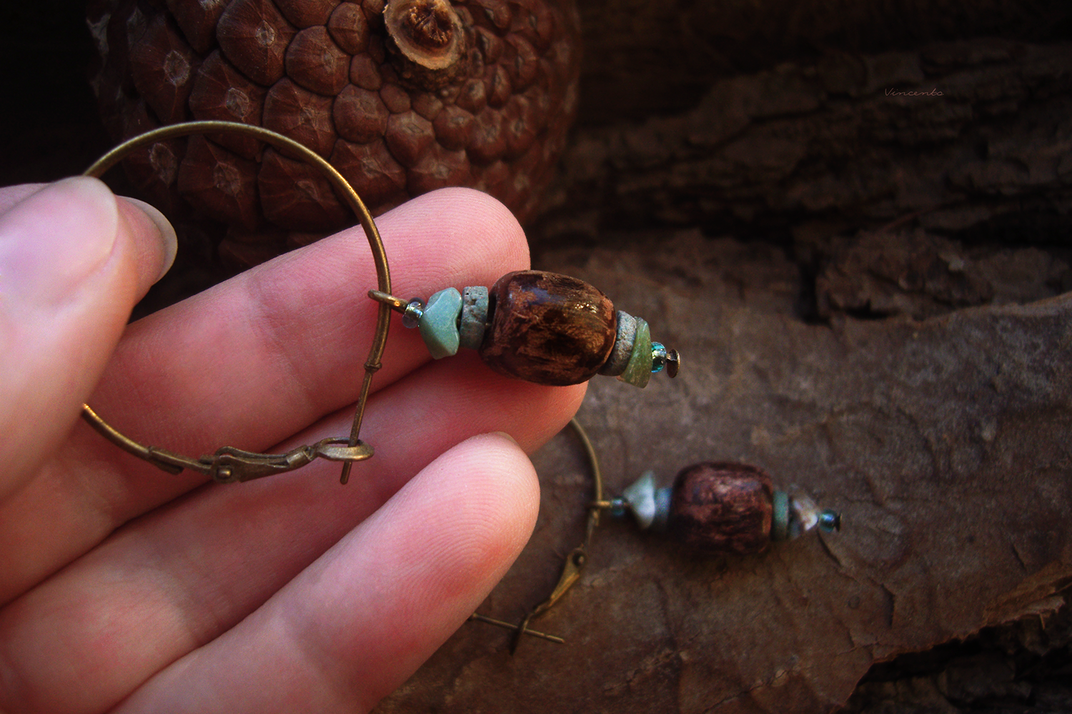 - Красивые серьги-кольца с подвесками в стиле лесного бохо.