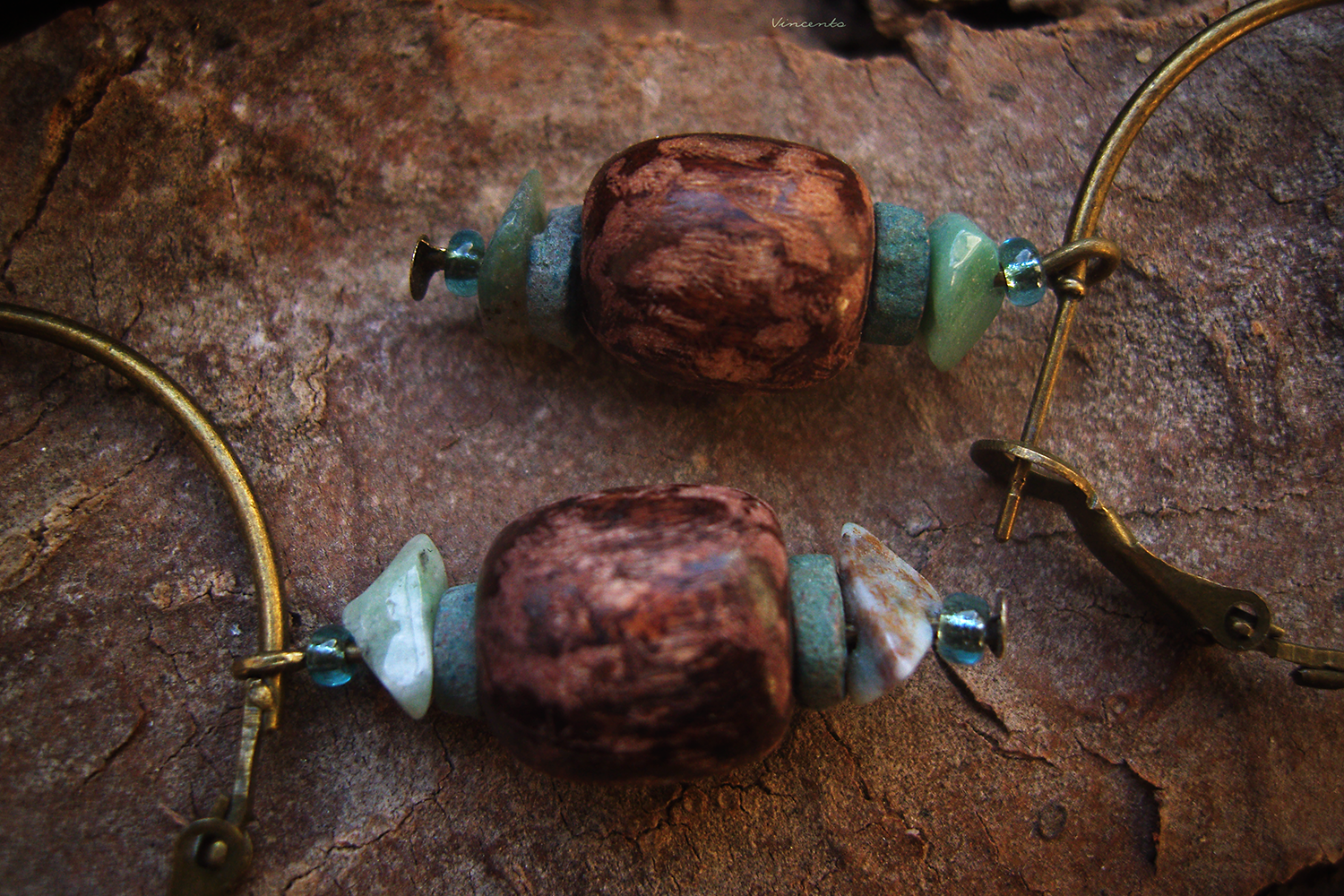 - Материалы: металлическая фурнитура, деревянные бусины, натуральный кварц, глиняные бусины, чешский бисер.