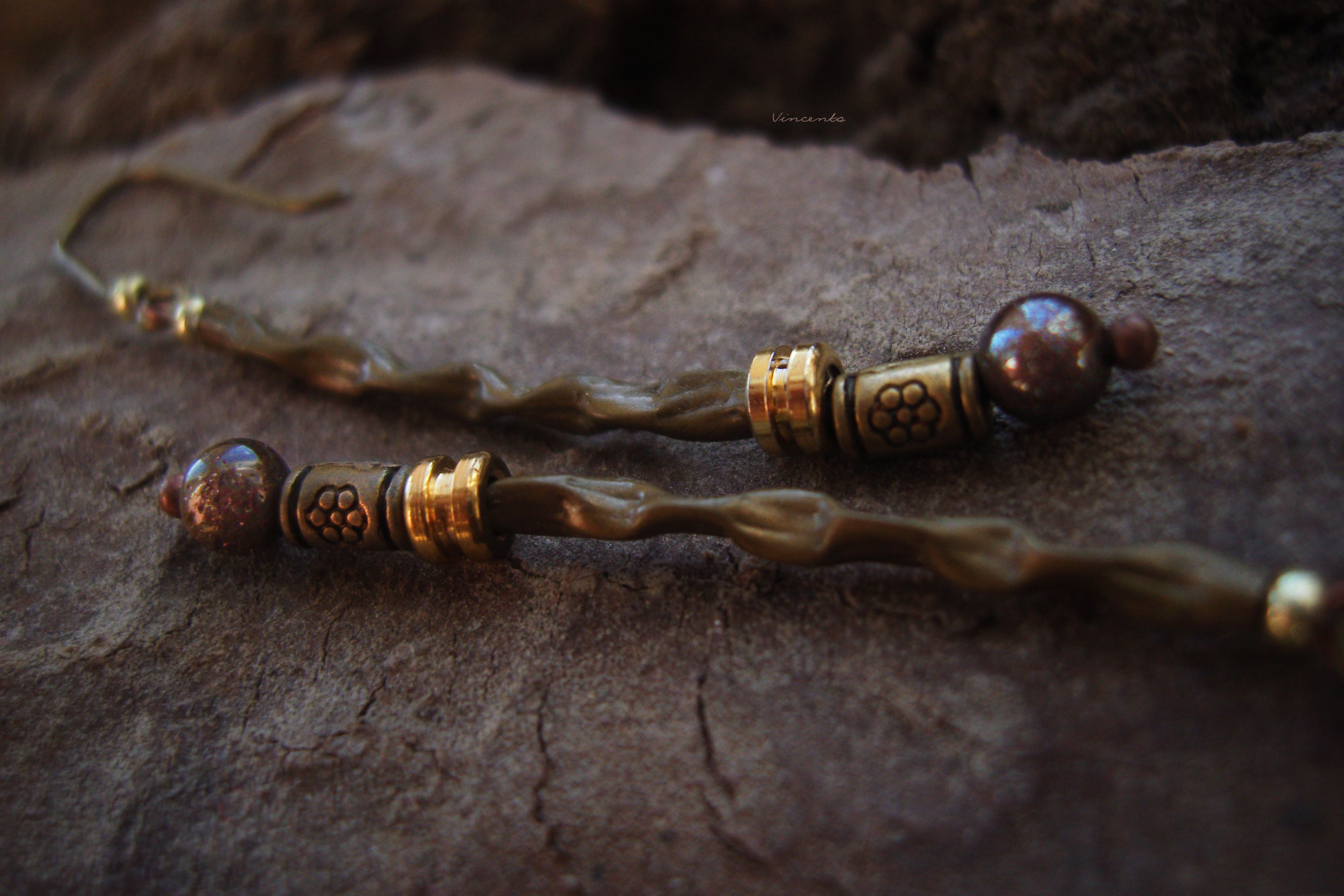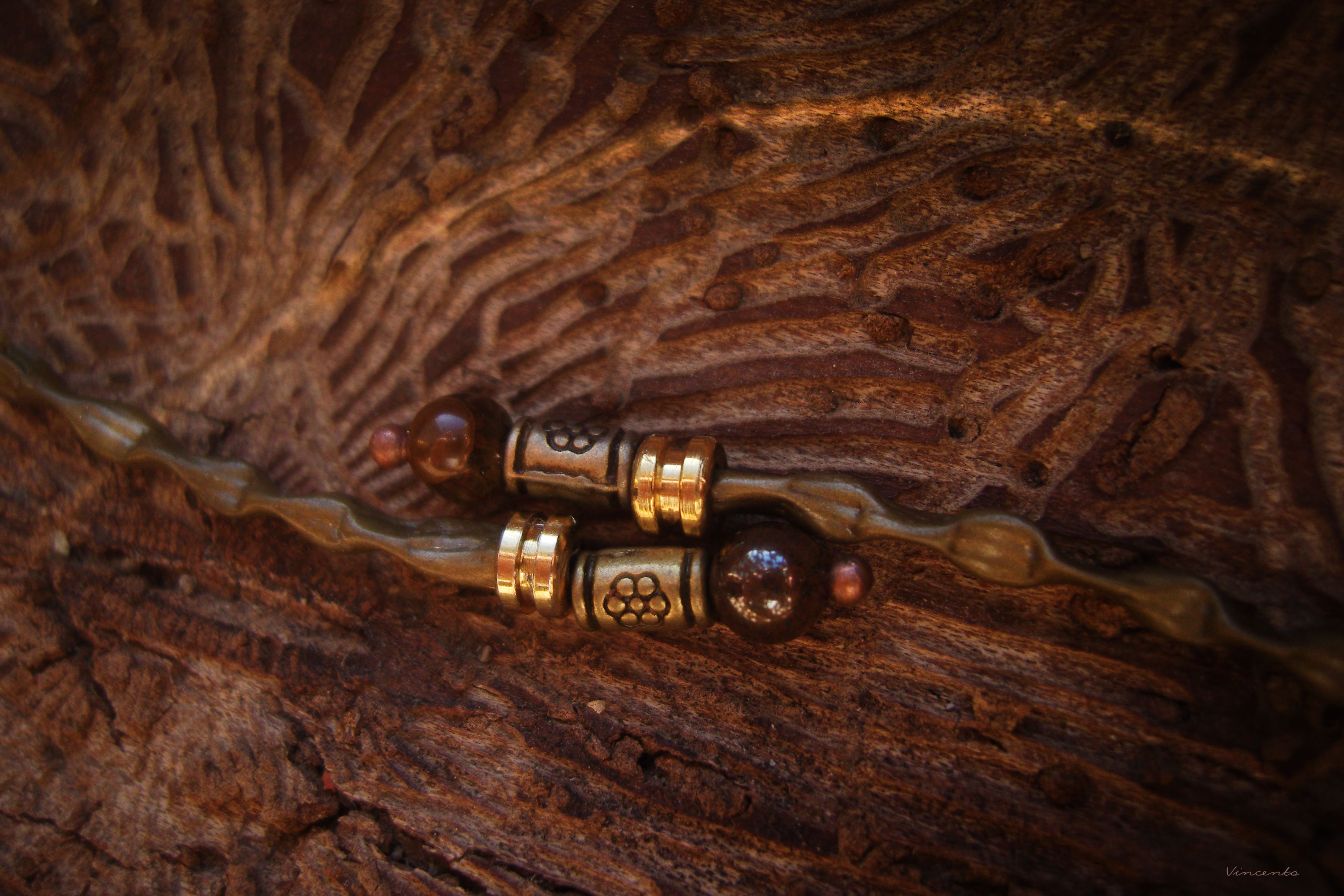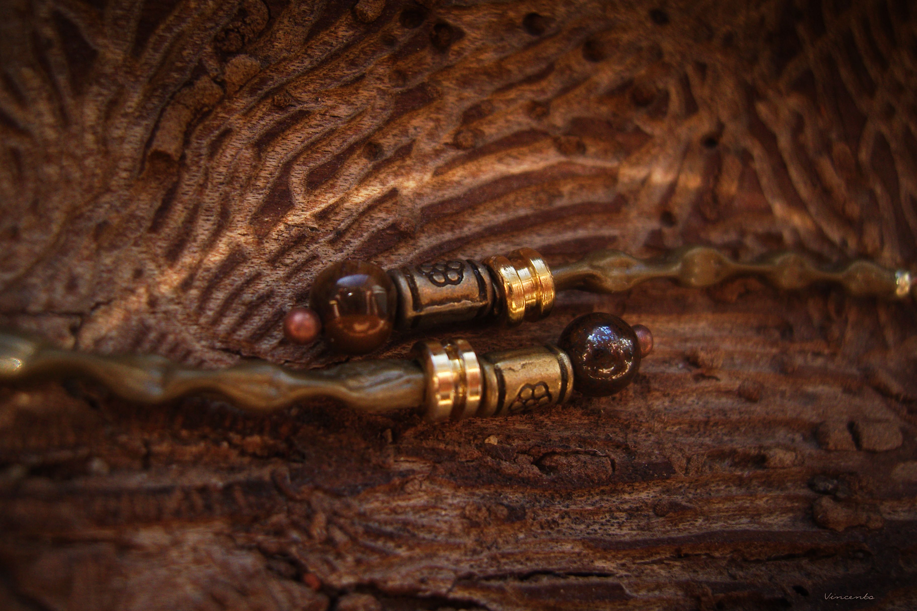 - Материалы: металлическая фурнитура, бронзовые бусины, тигровый глаз (натуральный камень), чешский бисер, элементы гитарной струны.