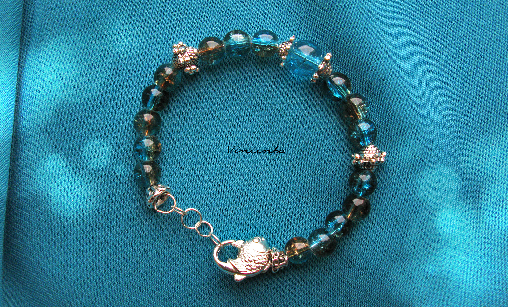 - Яркий летний браслет в морском стиле с бусинами "кракле" цвета морской волны с коричнево-золотистым отливом и оригинальным замочком в виде рыбки навеет воспоминания о солёном морском воздухе и прохладных лазурных волнах, в какой бы точке мира вы ни находились!