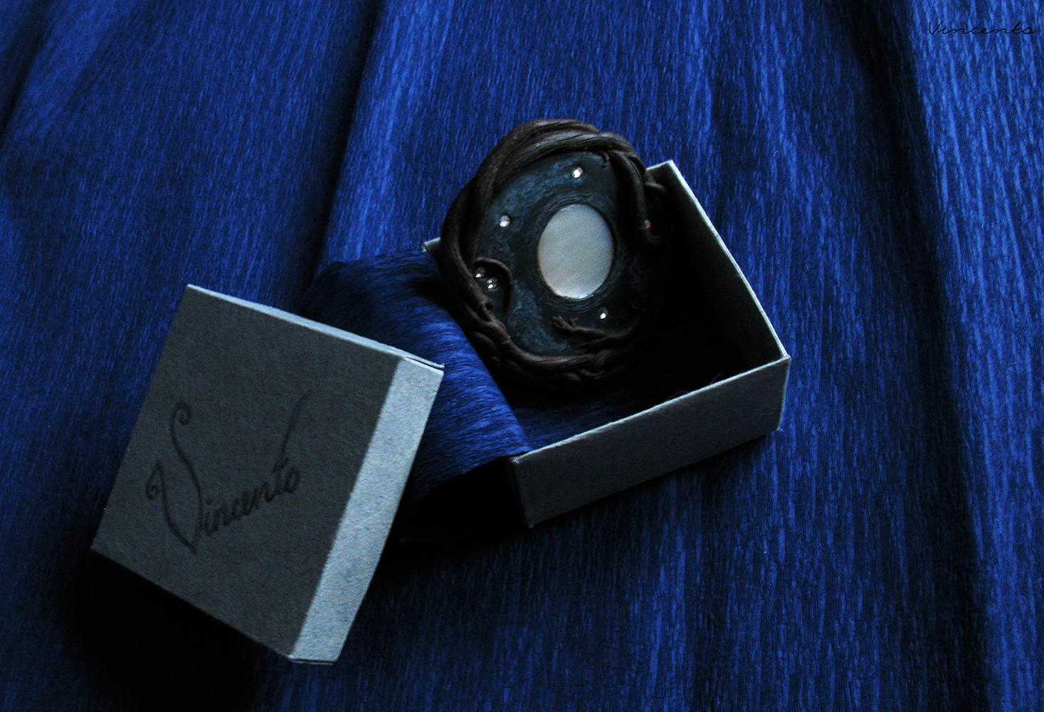 - Винтажный перламутр также играет на свету, словно настоящая маленькая луна (обратите внимание: на поверхности перламутра есть небольшие щербинки, что объясняется его винтажным прошлым), а лаковое покрытие не только добавляет глубину свечению, но и защищает украшение от повреждений.