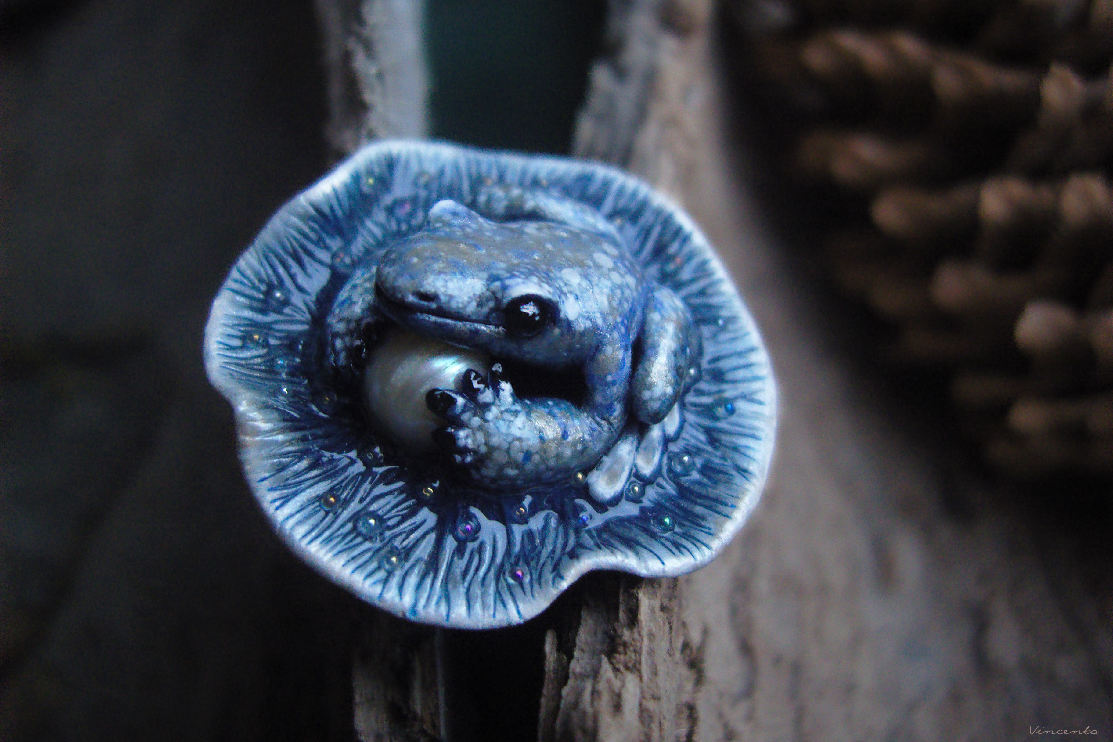 Брошь с лягушкой и речной жемчужиной "Звёздочки Жемчужницы"