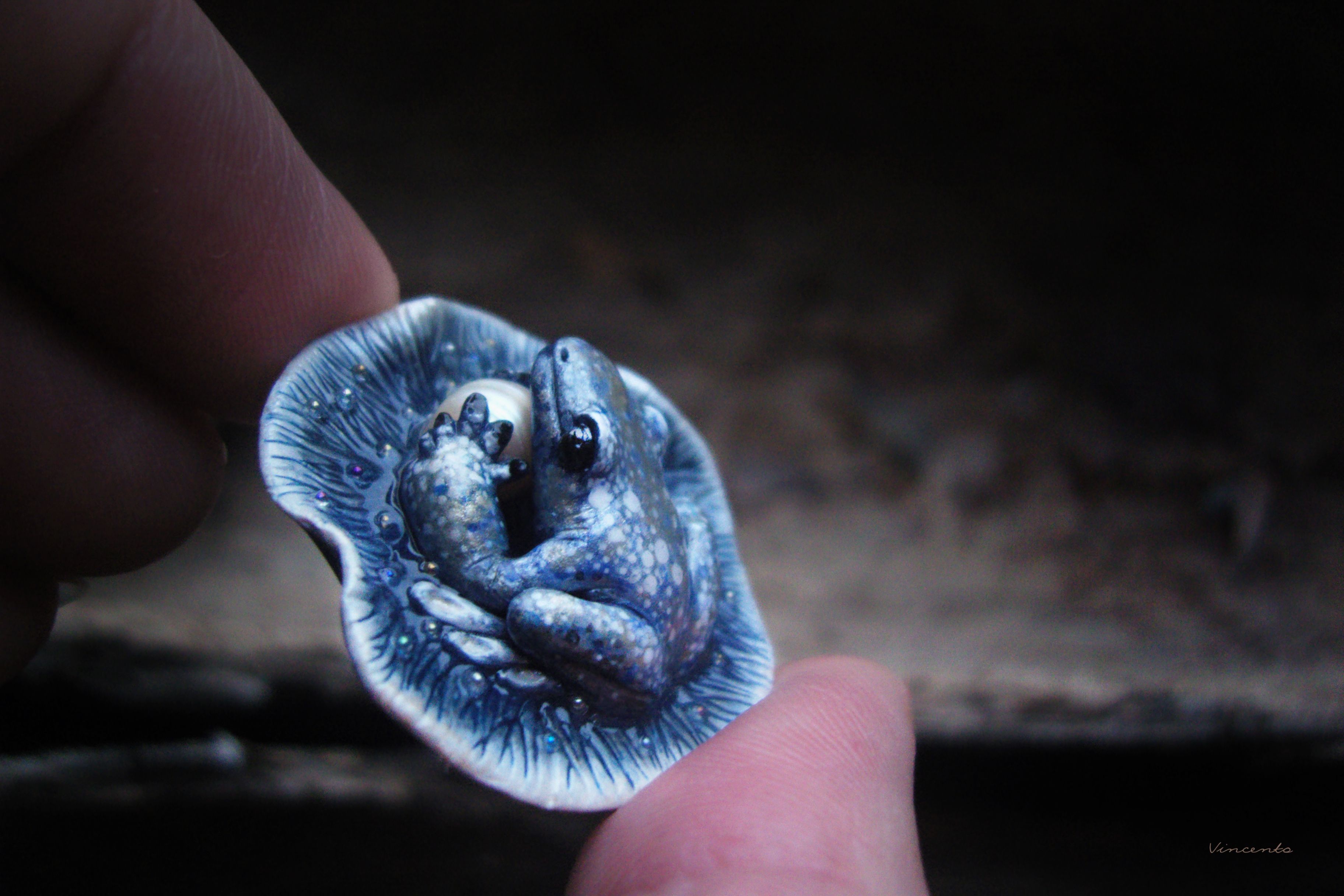 - Миниатюрное украшение в виде зачарованной космической лягушки с барочной речной жемчужиной светло-кремового оттенка.