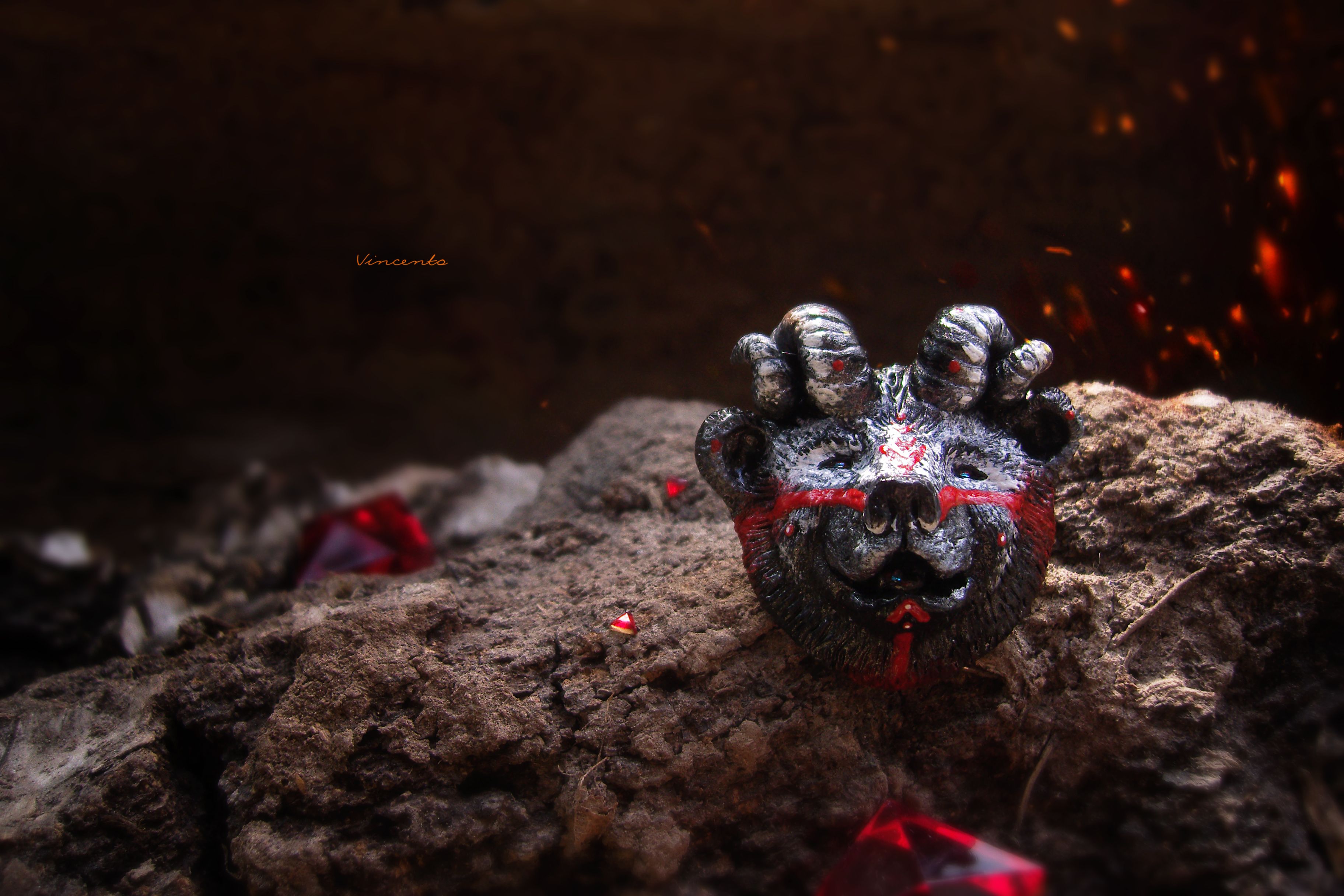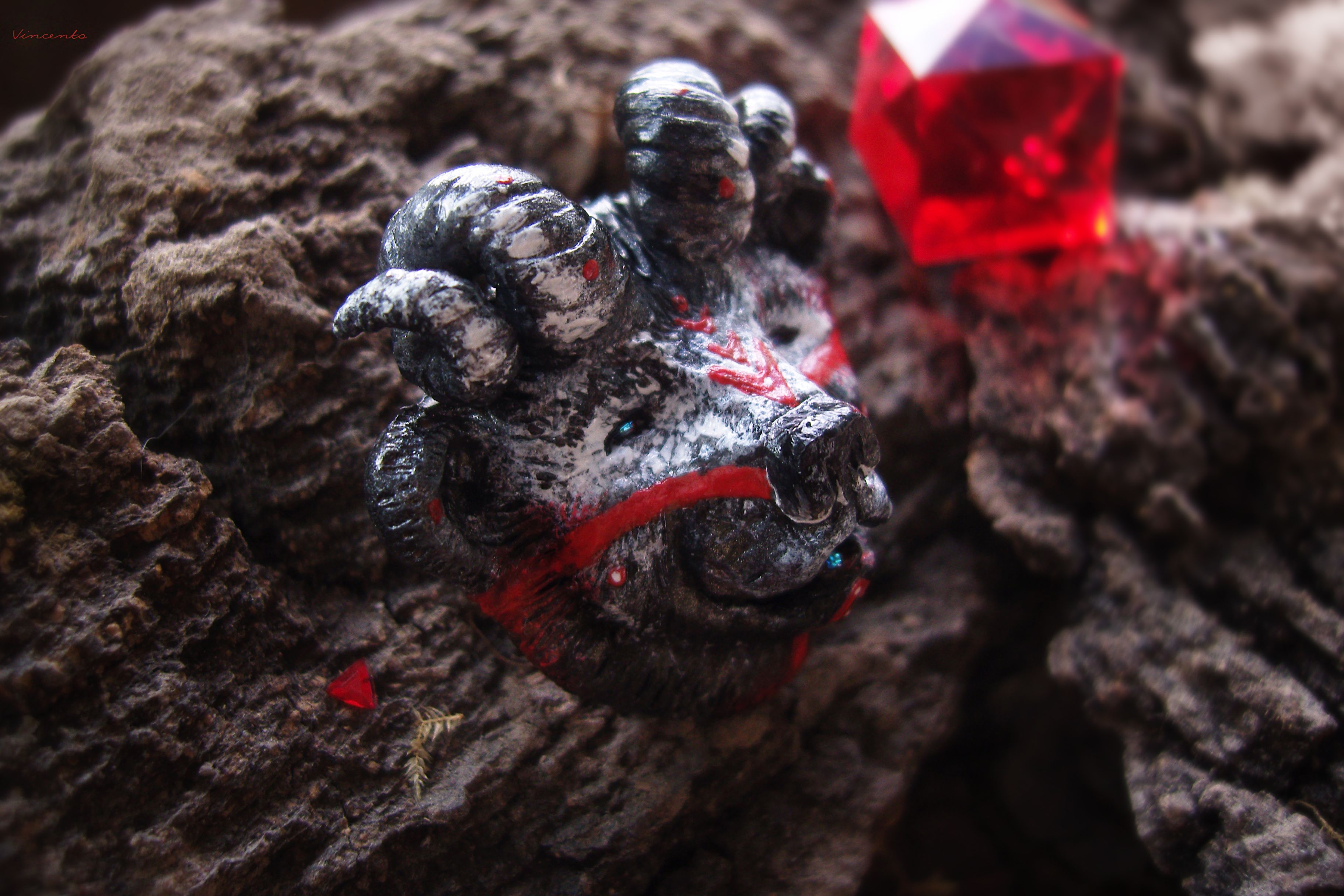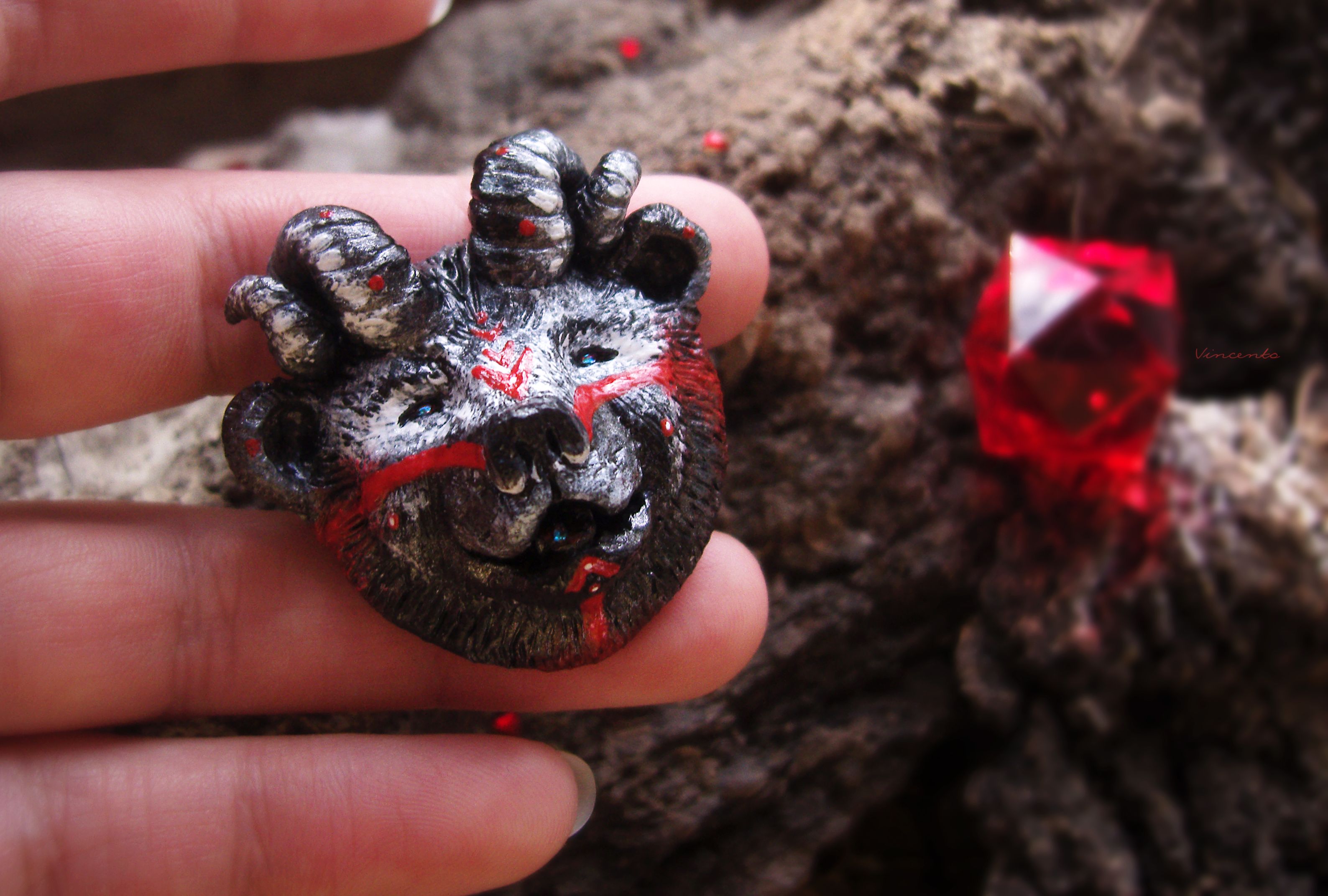 - Эта редкая брошь полностью повторяет образ мистического существа из рода пустынных шаманов, огненного духа, напоминающего медведя с массивными, закрученными спиралями, наподобие бараньих, рогами.