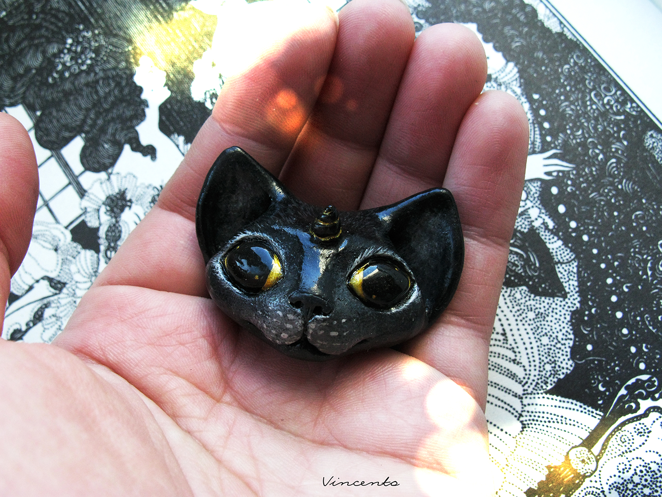 Брошь в стиле фэнтези - "Кошка-единорожка"