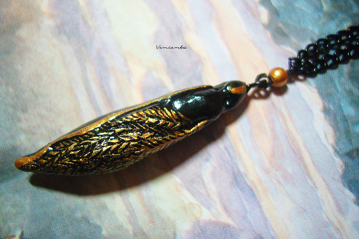 "Царица Ночи" - необычный кулон-капля в чёрно-золотой цветовой гамме