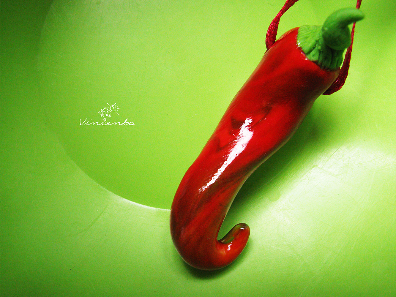 - Кулон ручной работы из полимерной глины в виде пикантного перца с цветными разводами (цвета на выбор заказчика).