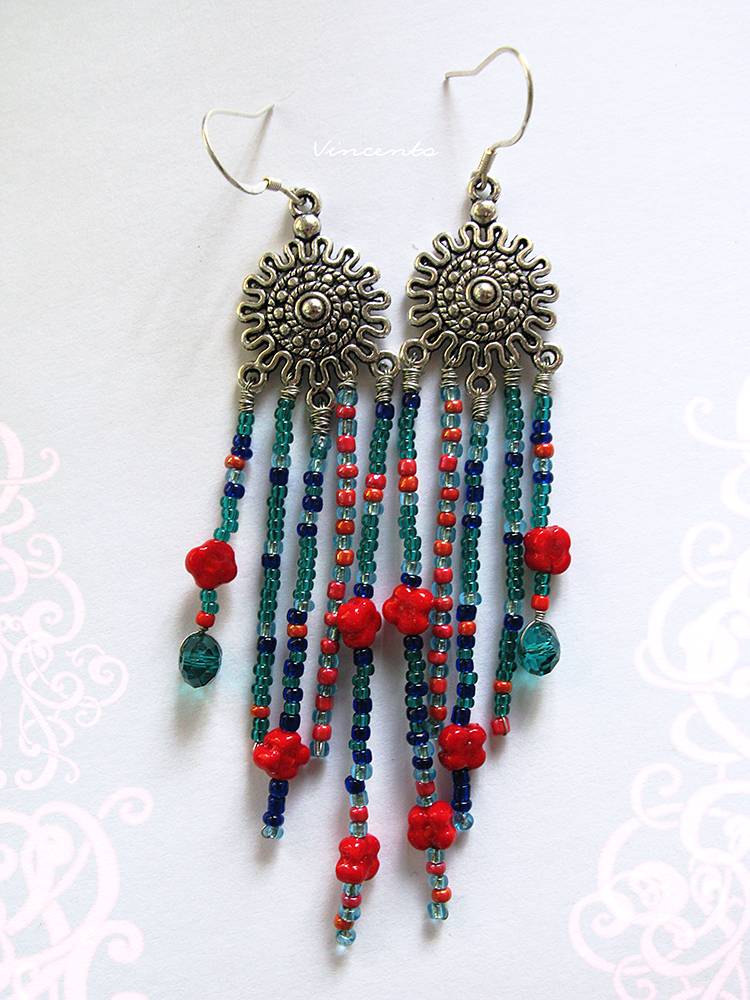 - Цыганские серьги "Ветер перемен" - необычное украшение с авторскими бусинами-цветами ручной работы и чешским бисером.
