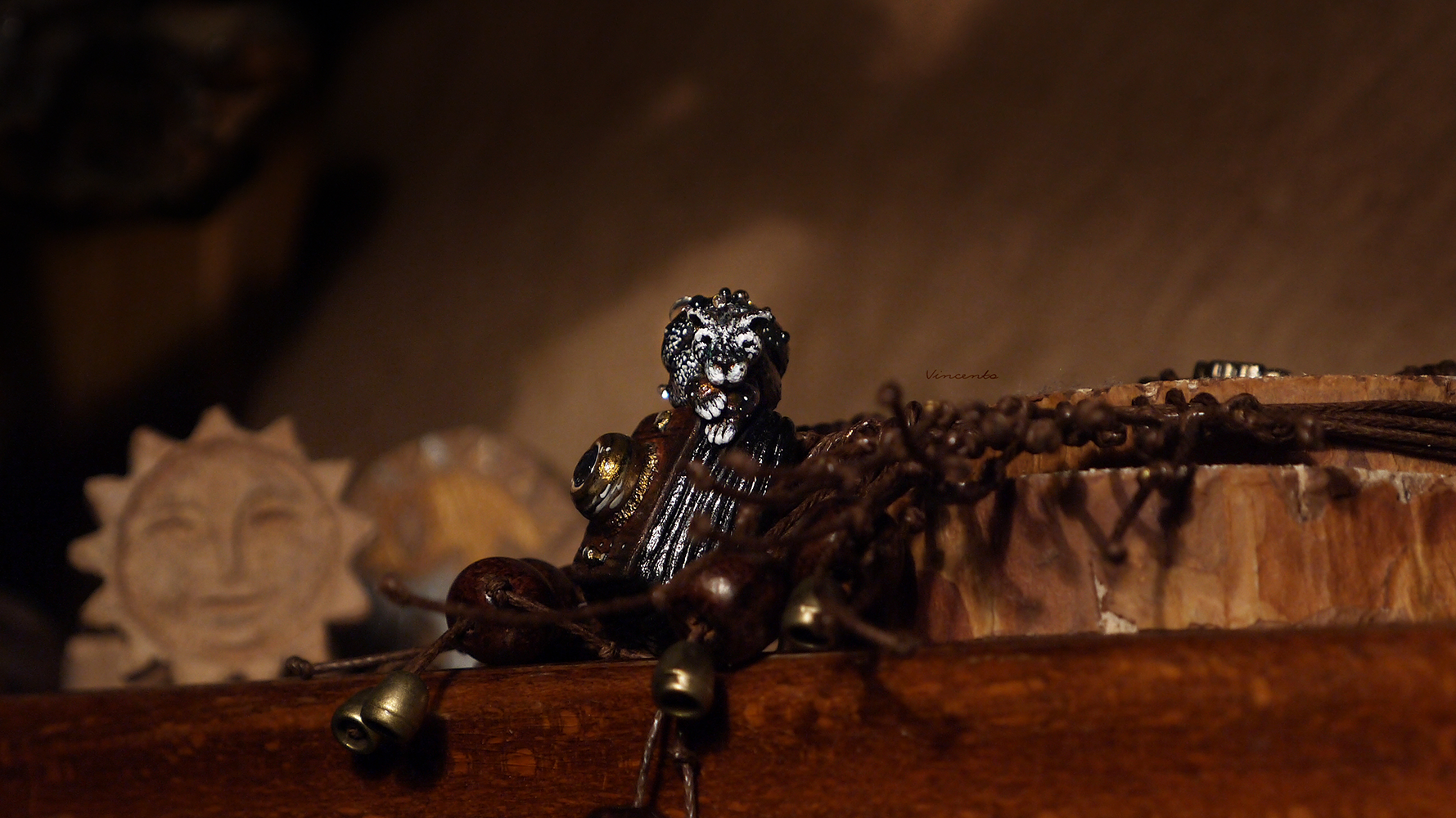 - А деревянные, немного грубые бусины подчёркивают изящество нашего диковинного зверька и микро-камеры.