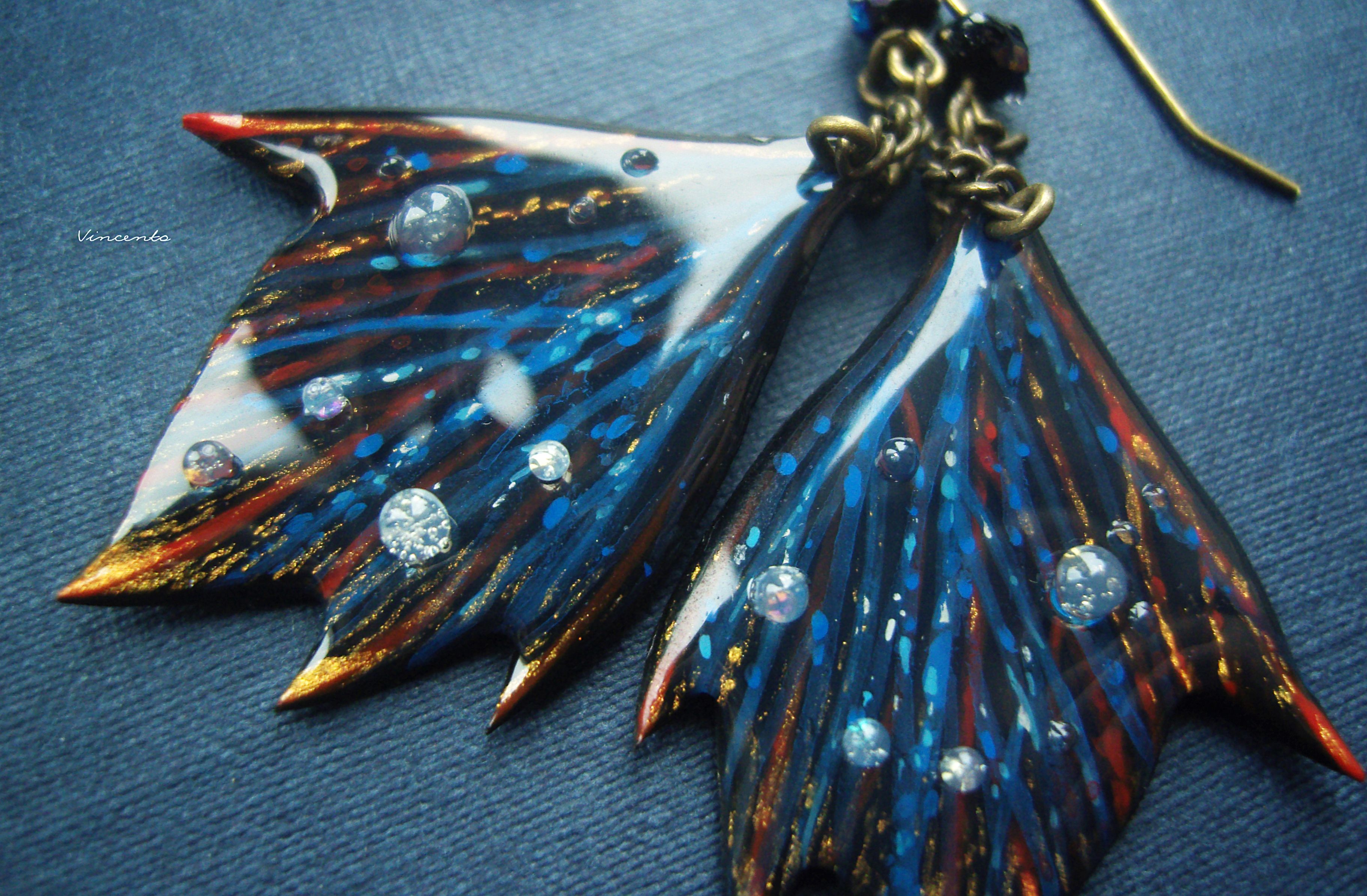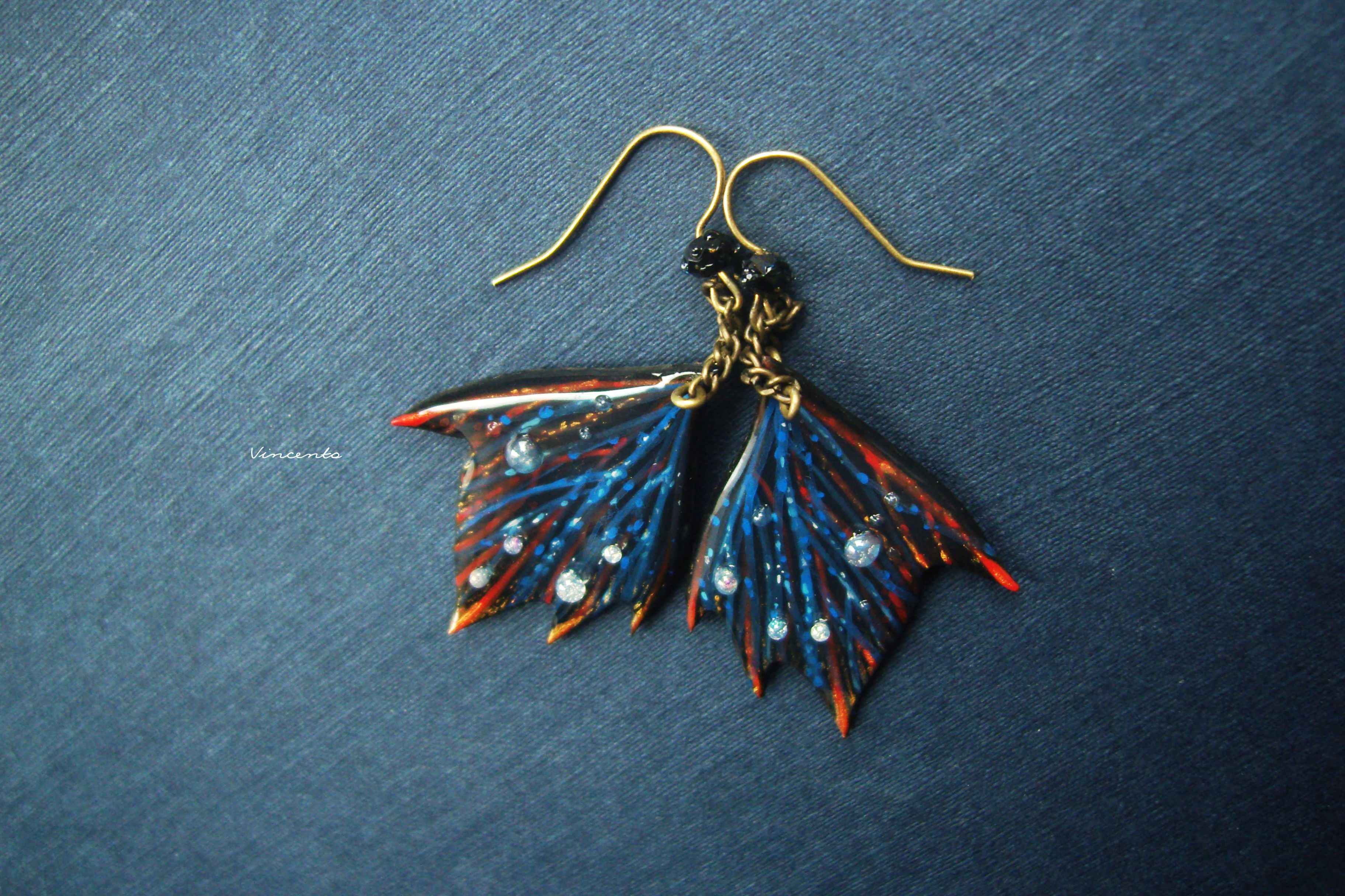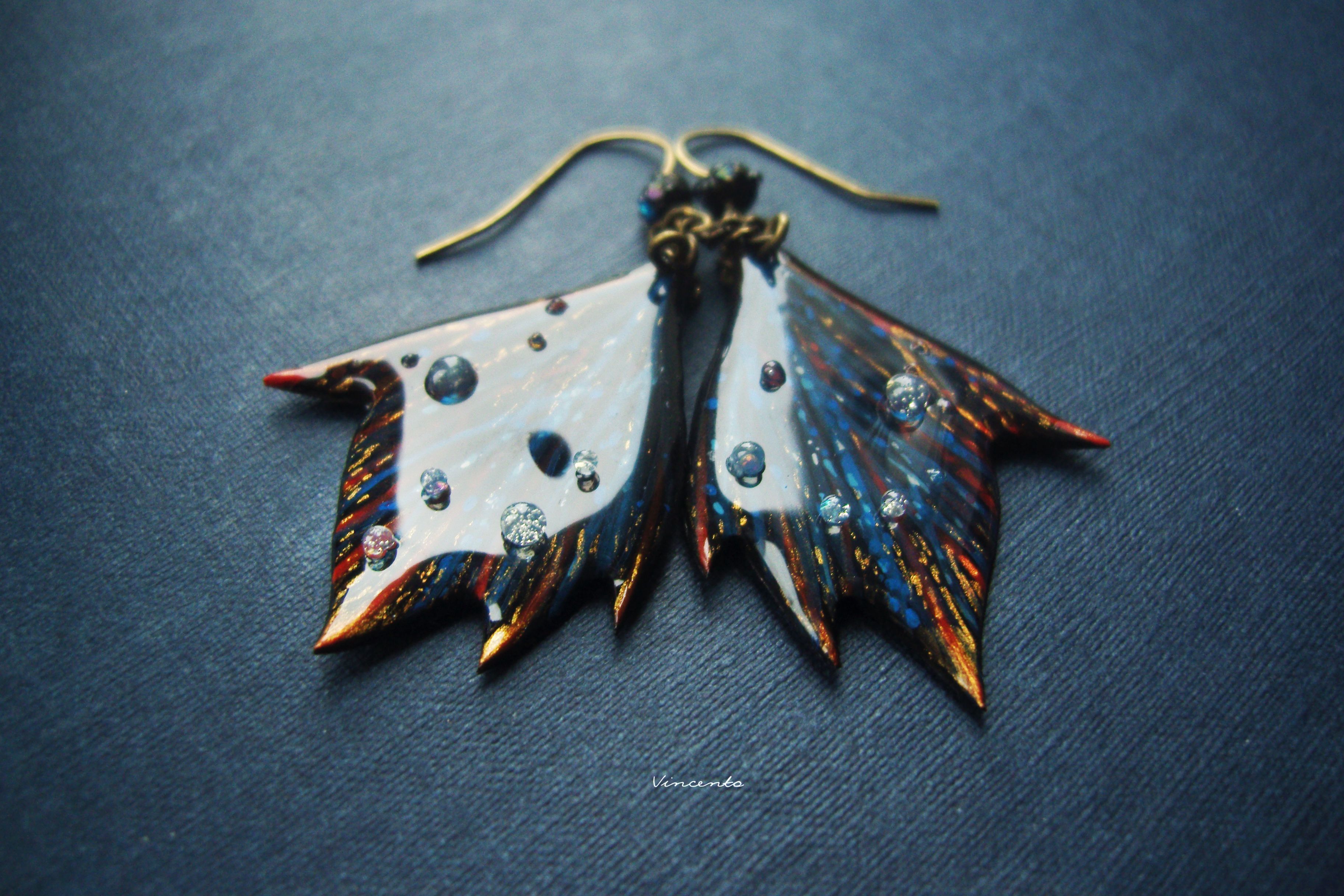 - Необычные серьги в стиле фэнтези, повторяющие образ волшебной огненно-водной бабочки Первоэлемента.