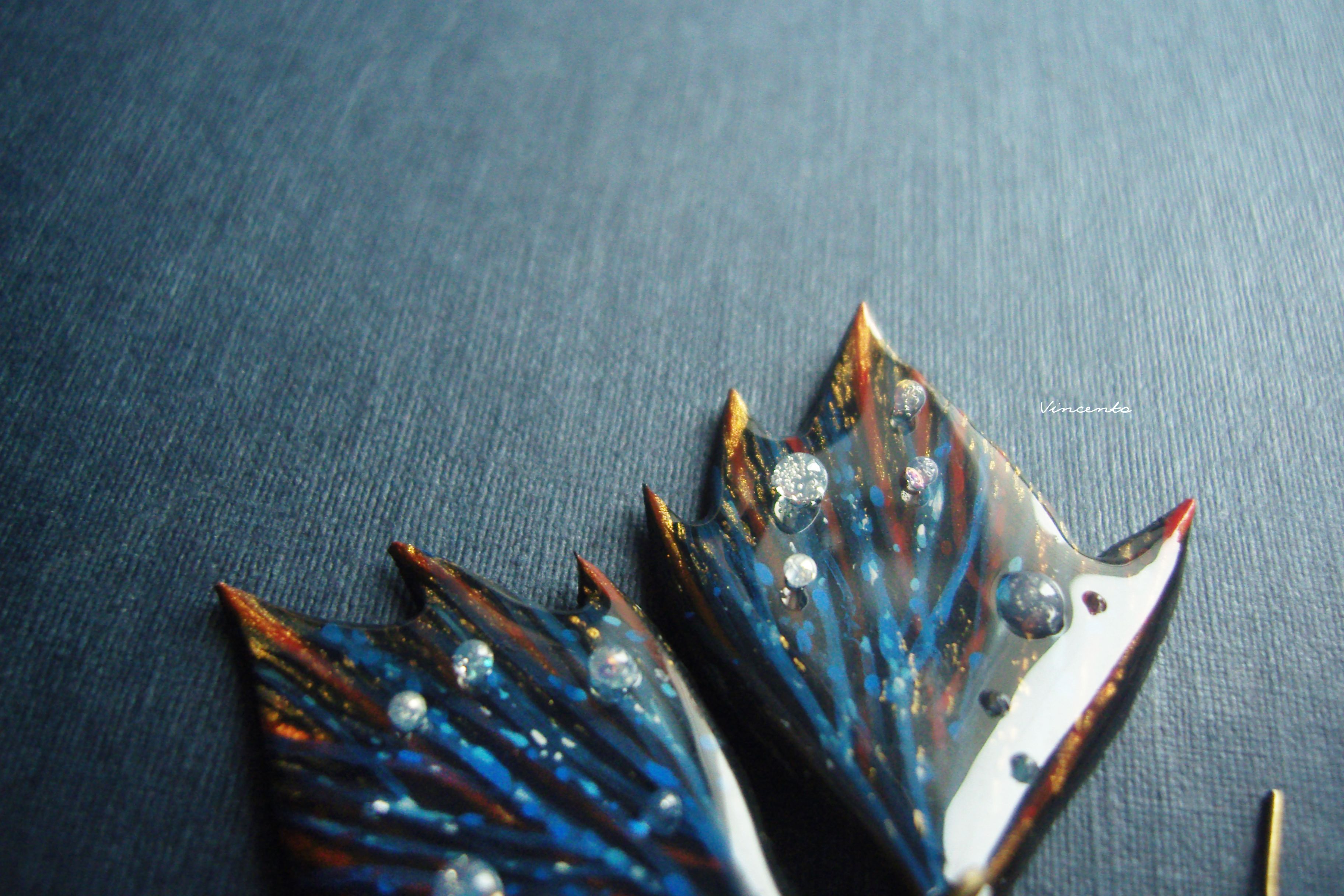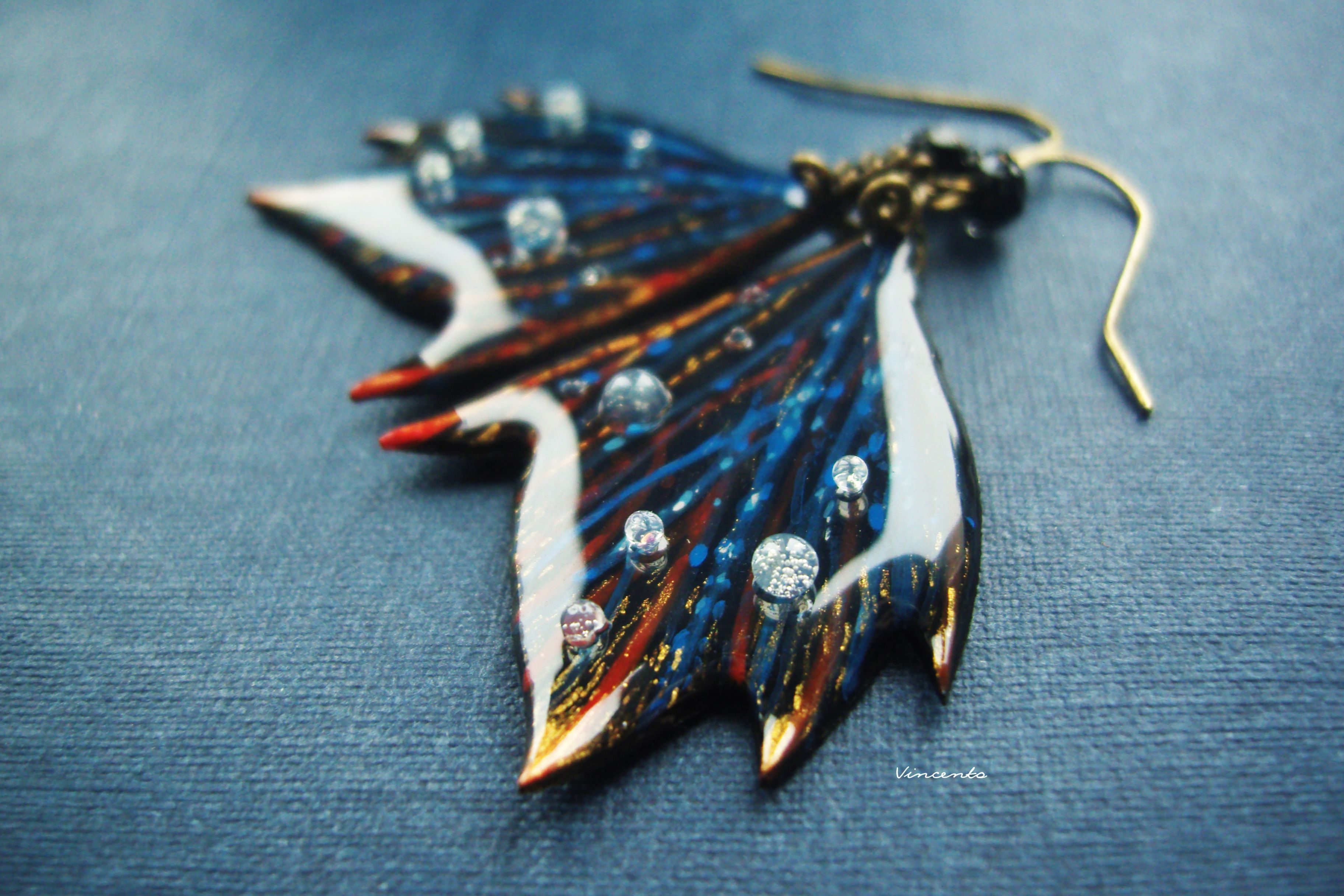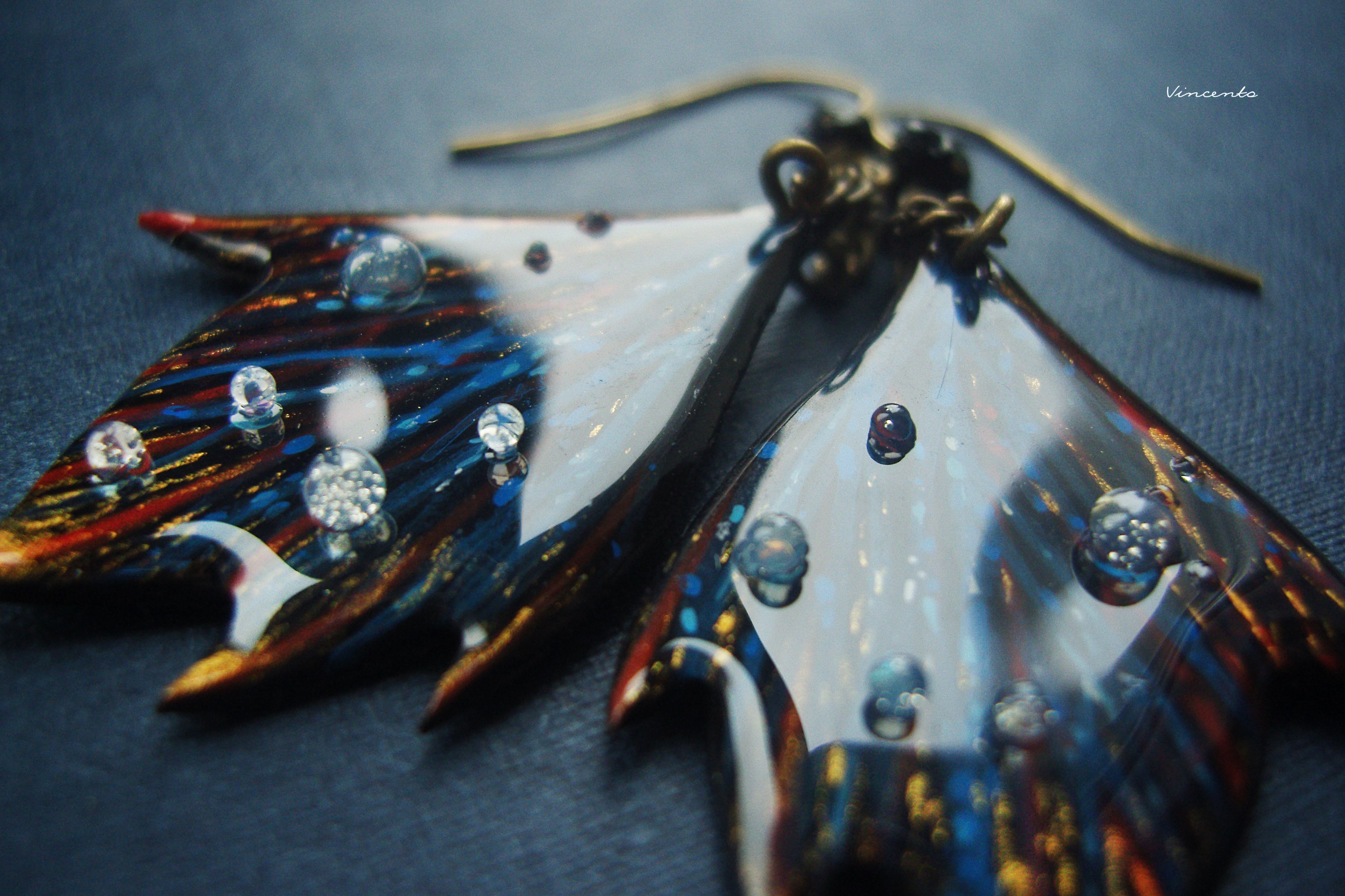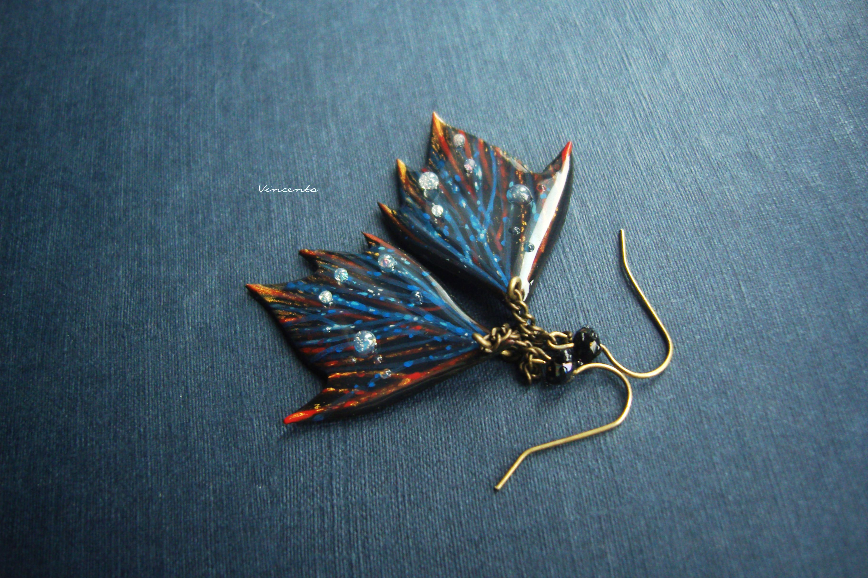 - Необычные серьги в стиле фэнтези, повторяющие образ волшебной огненно-водной бабочки Первоэлемента.
