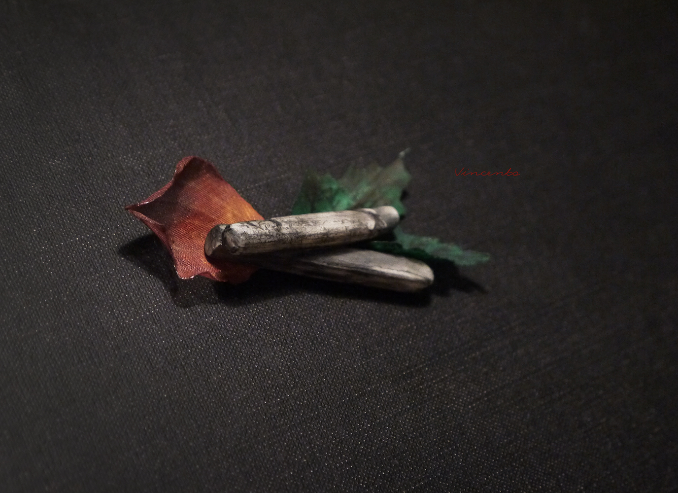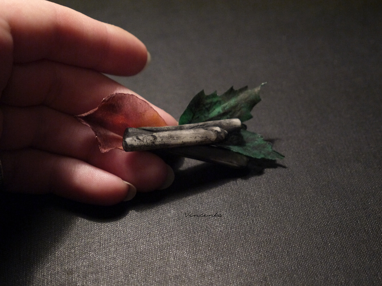 - Брошь выполнена полностью вручную из холодного фарфора и крашеного шёлка.