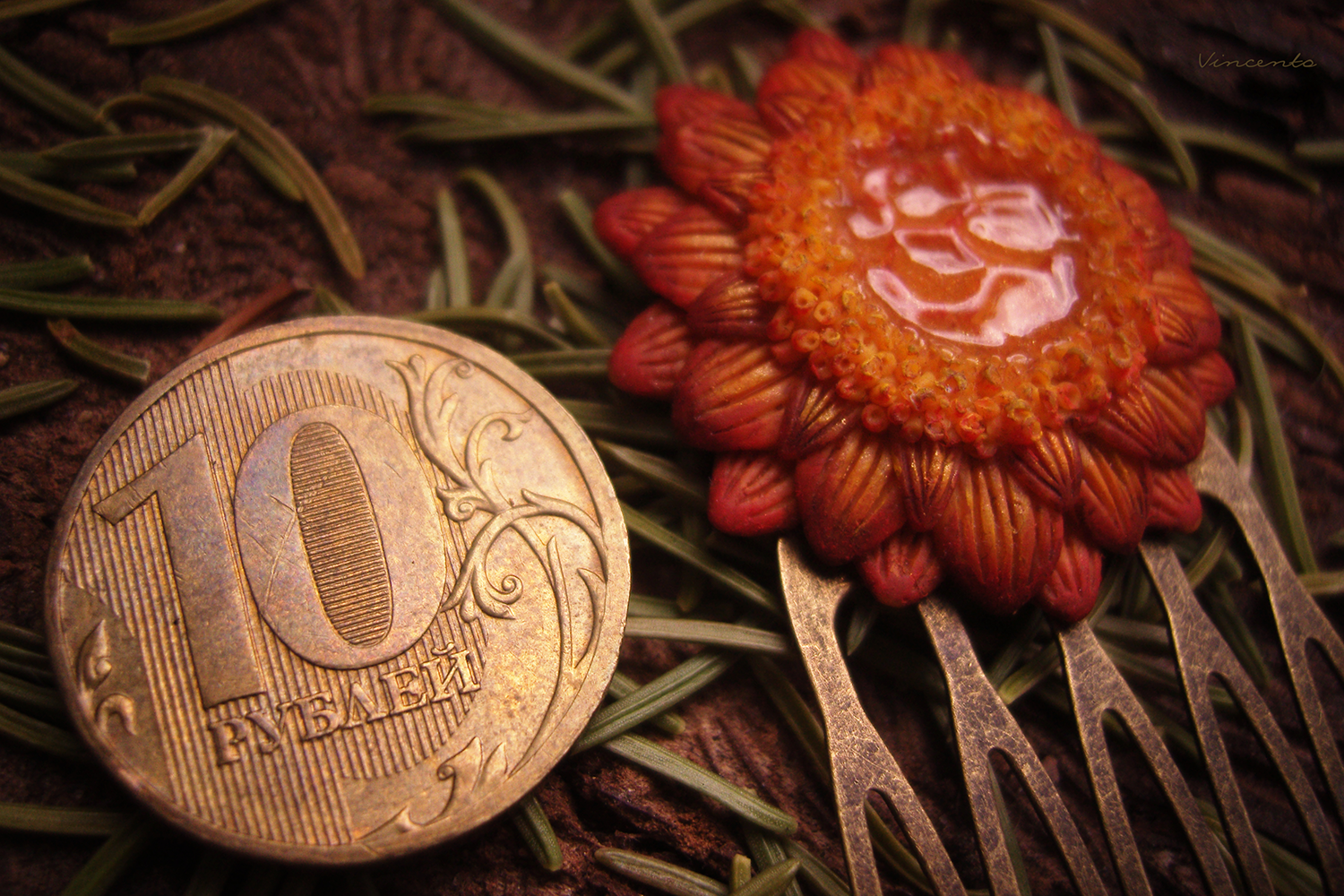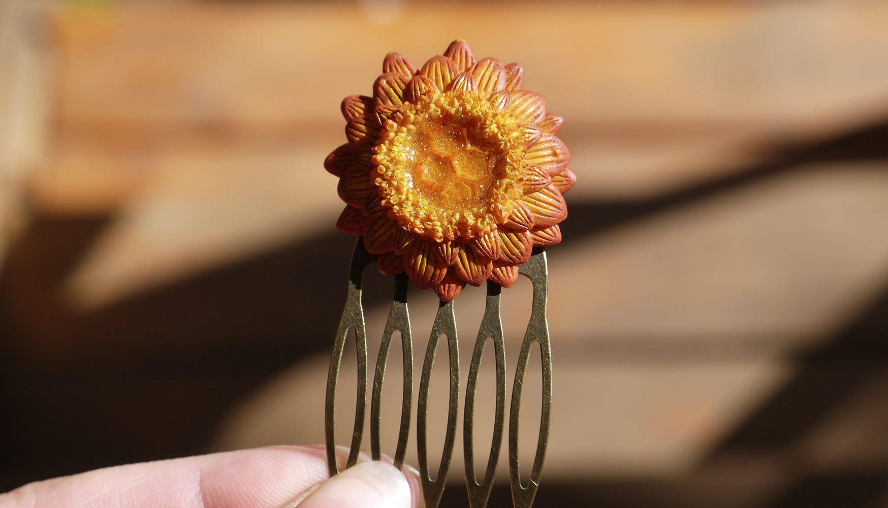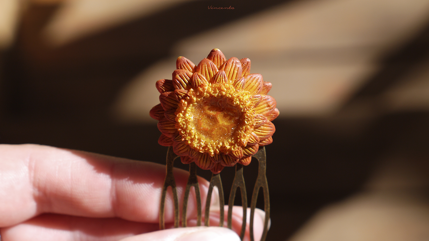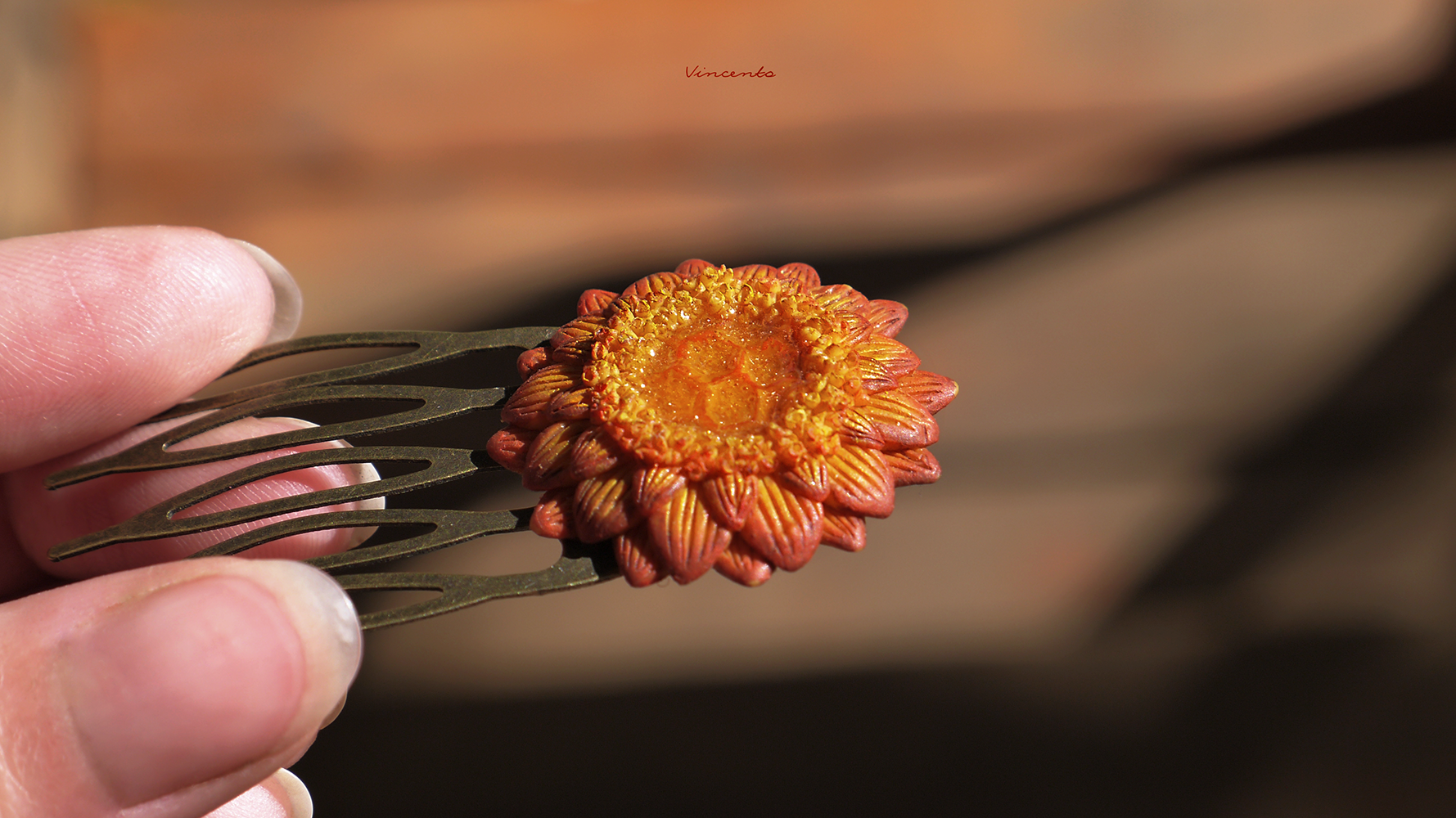 - Яркий миниатюрный гребень для волос - оранжевый цветок для настоящей медовой феи!