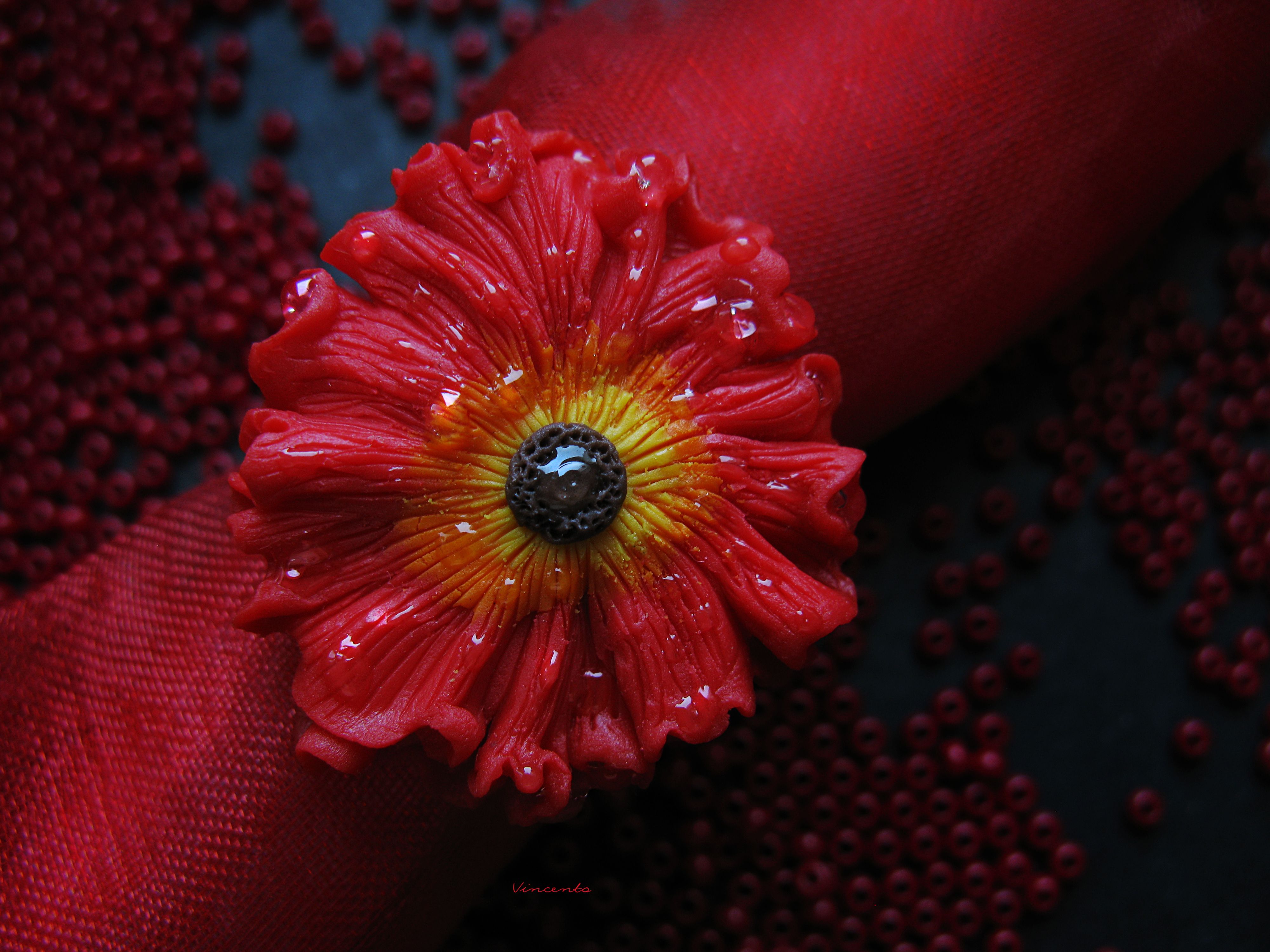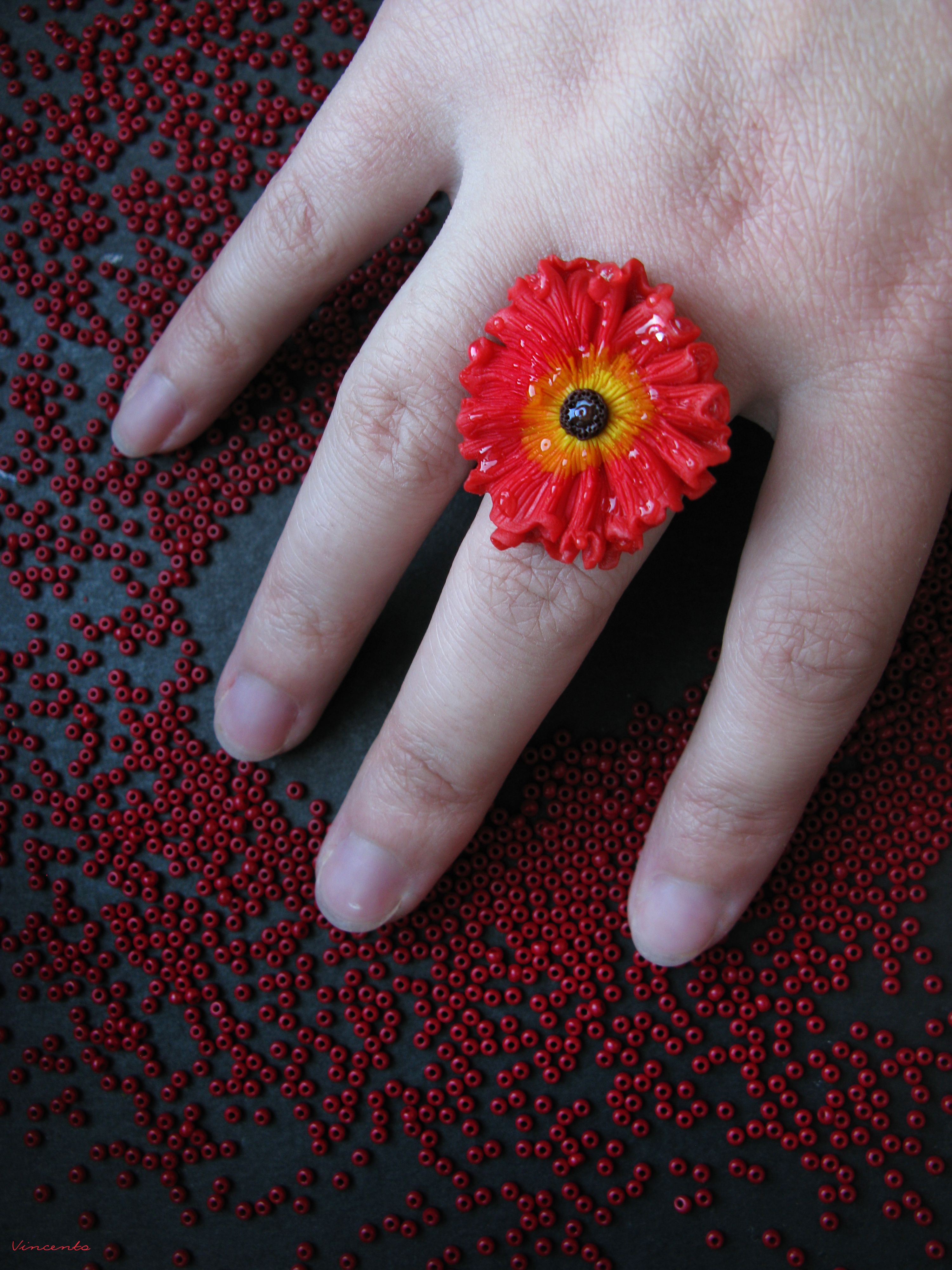 - Авторское кольцо в виде яркого цветка волшебного мака. А на его лепестках застыли кристально-прозрачные капли утренней росы...