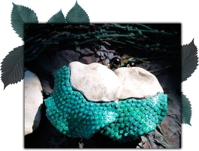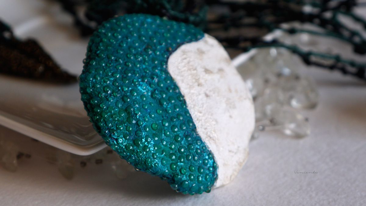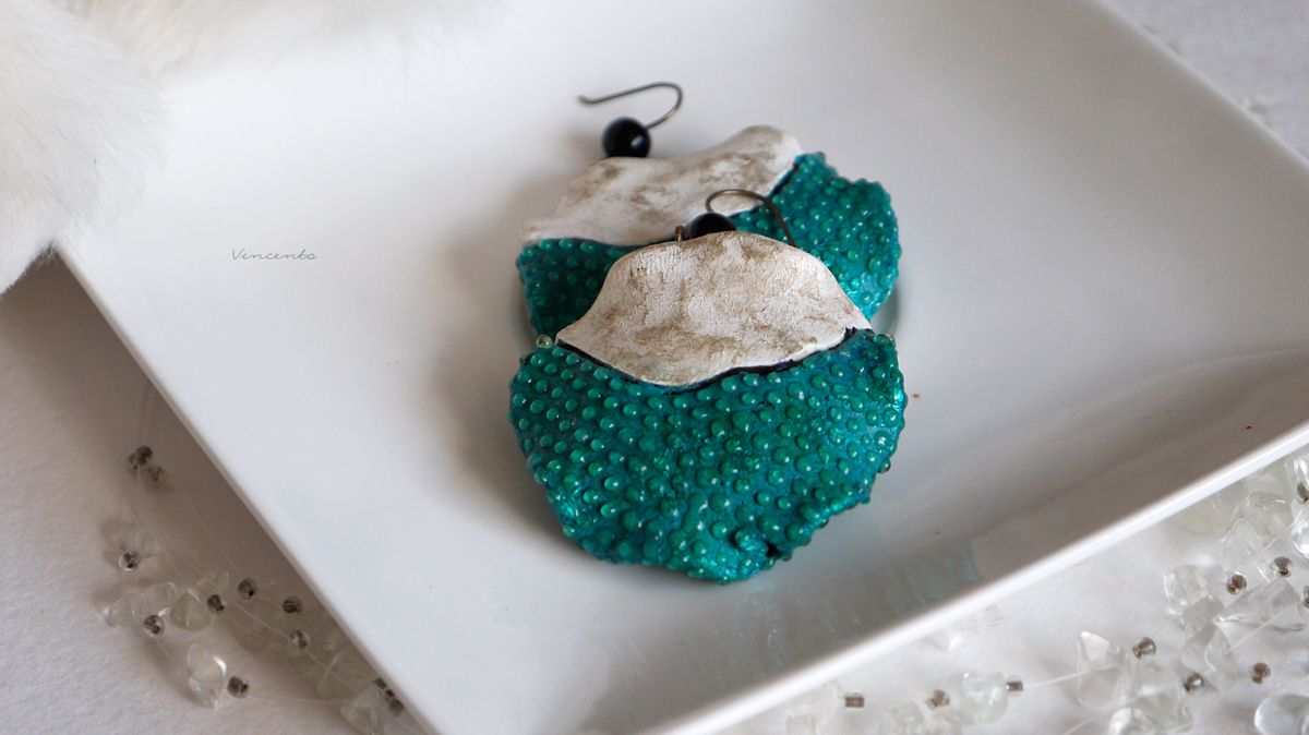- Мистический комплект необычных украшений из колье и серёжек в изумрудно-белой цветовой гамме.