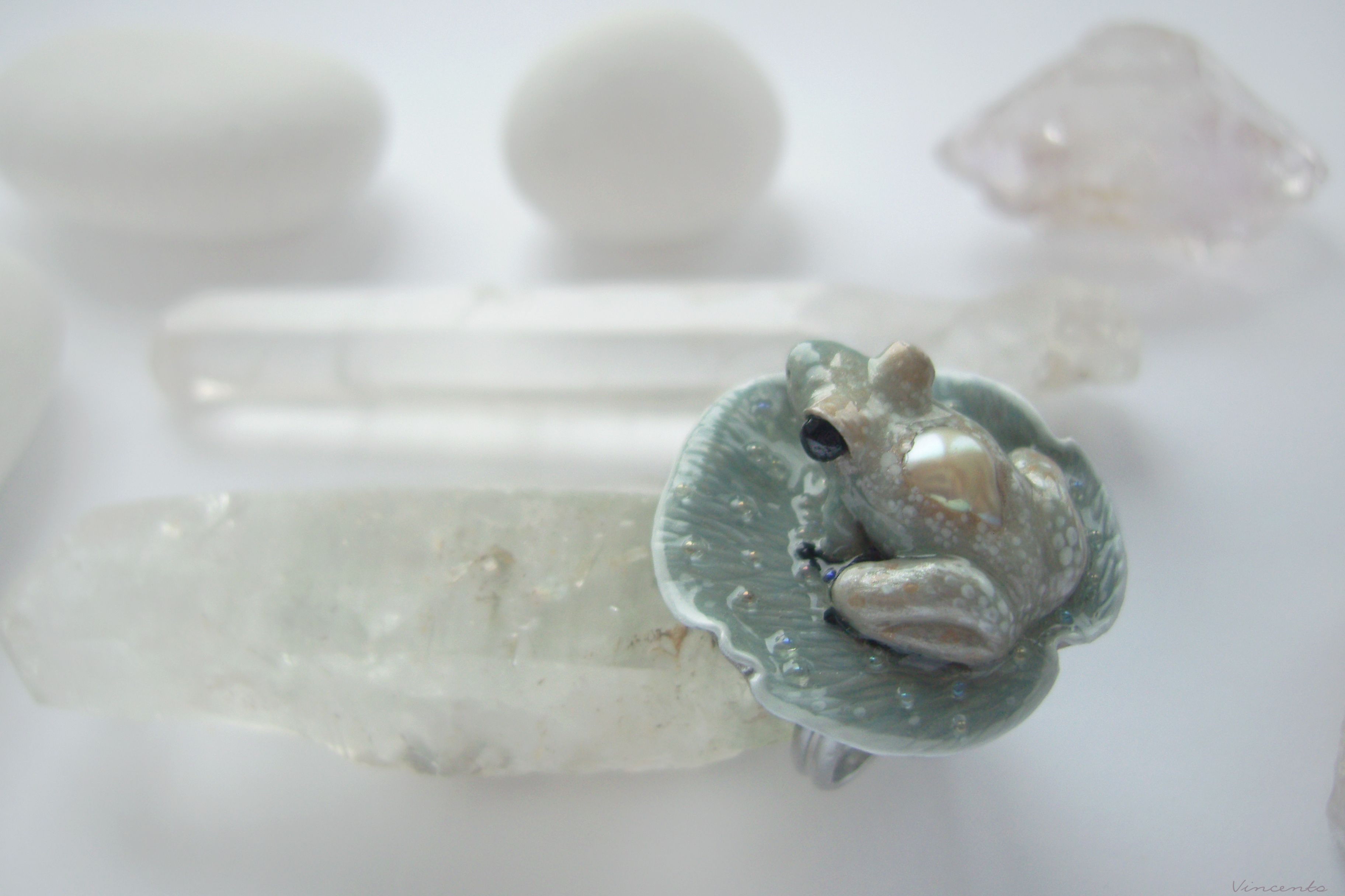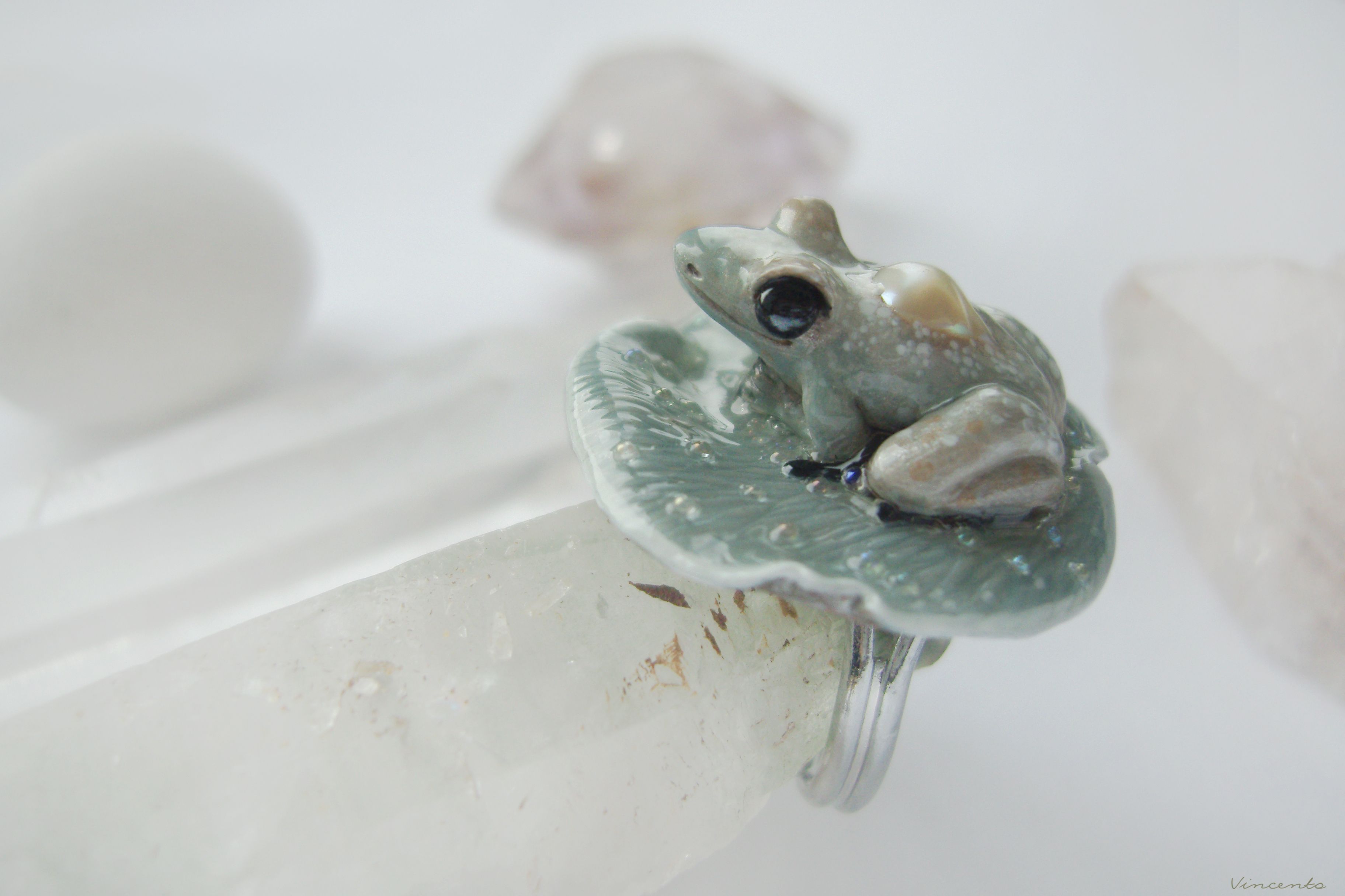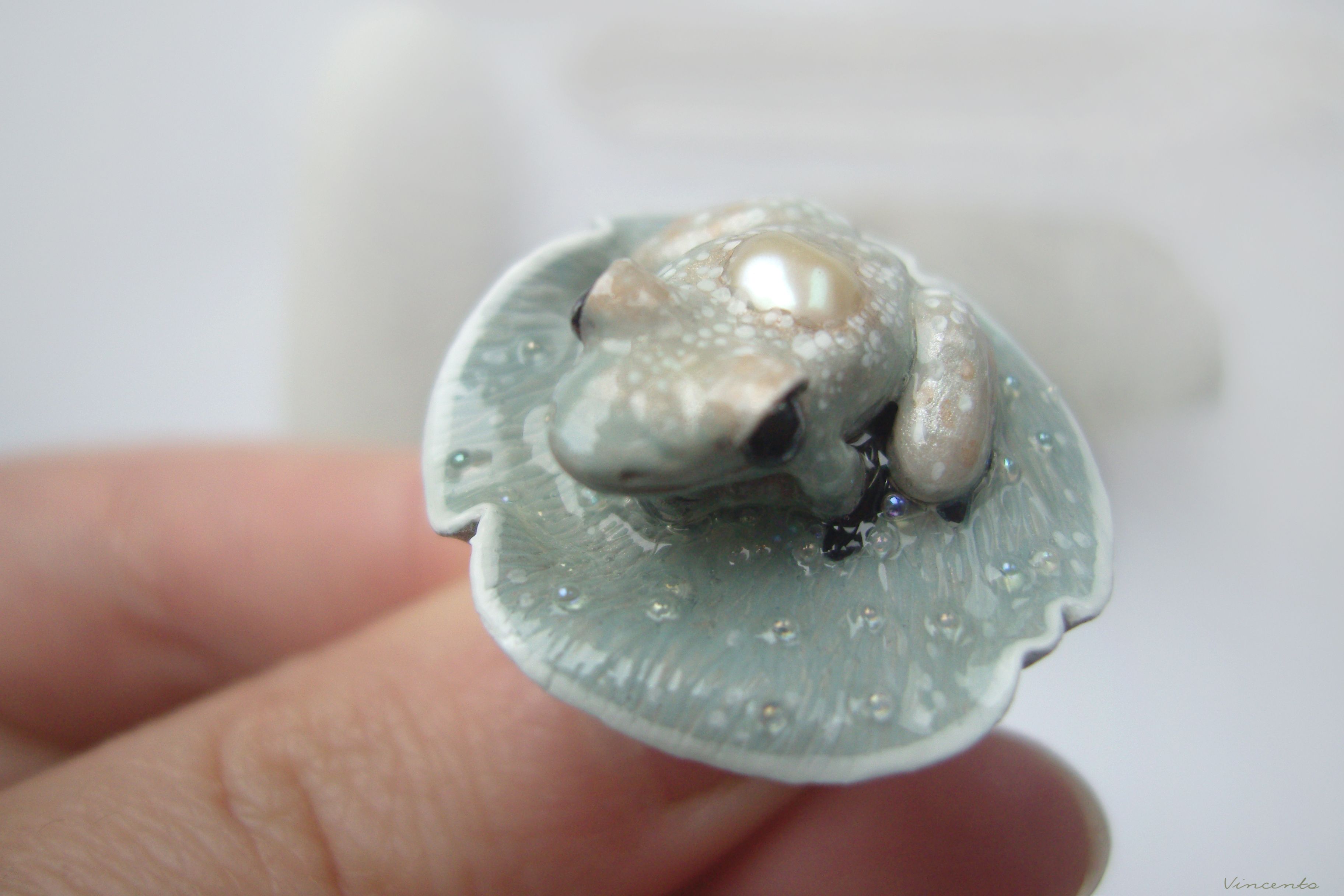 - Невероятно нежное и утончённое арт-нуво колечко в виде зачарованной принцессы-лягушки на листе волшебной кувшинки из затаившегося в туманной пелене сада.