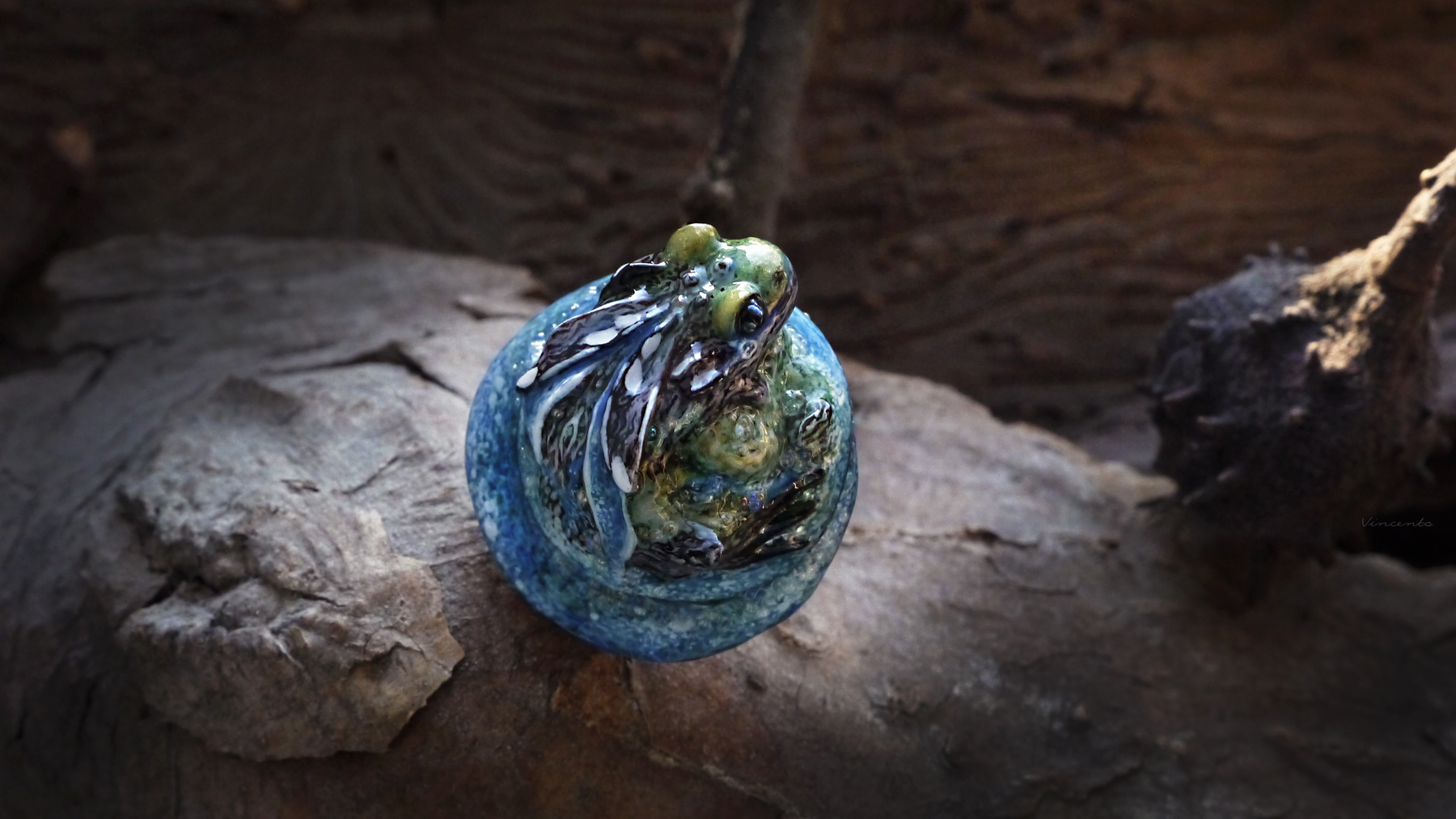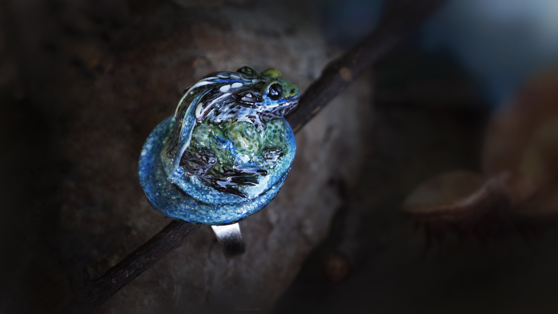 - Крупное кольцо со скульптурной миниатюрой из полимерной глины, изображающее древнего духа земли, пробуждающегося от векового сна: его крылья - полноводные реки – наполняют водой океаны, в его лапках горы и поля, в его силах вдохнуть жизнь в целый мир...