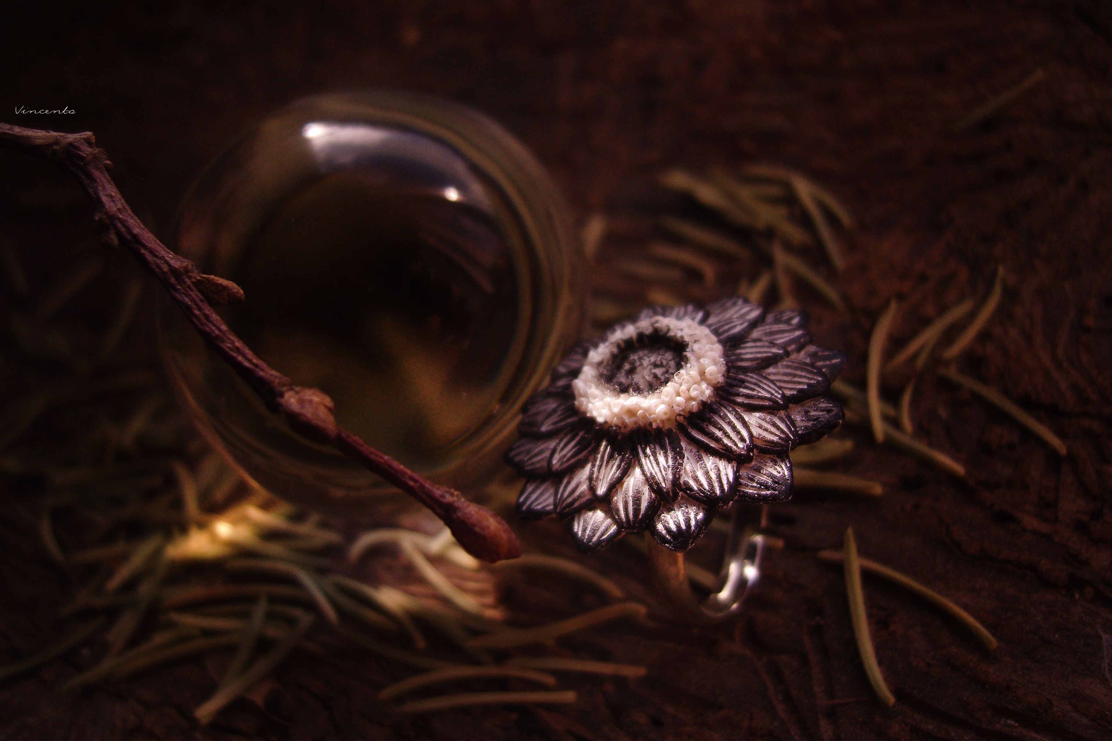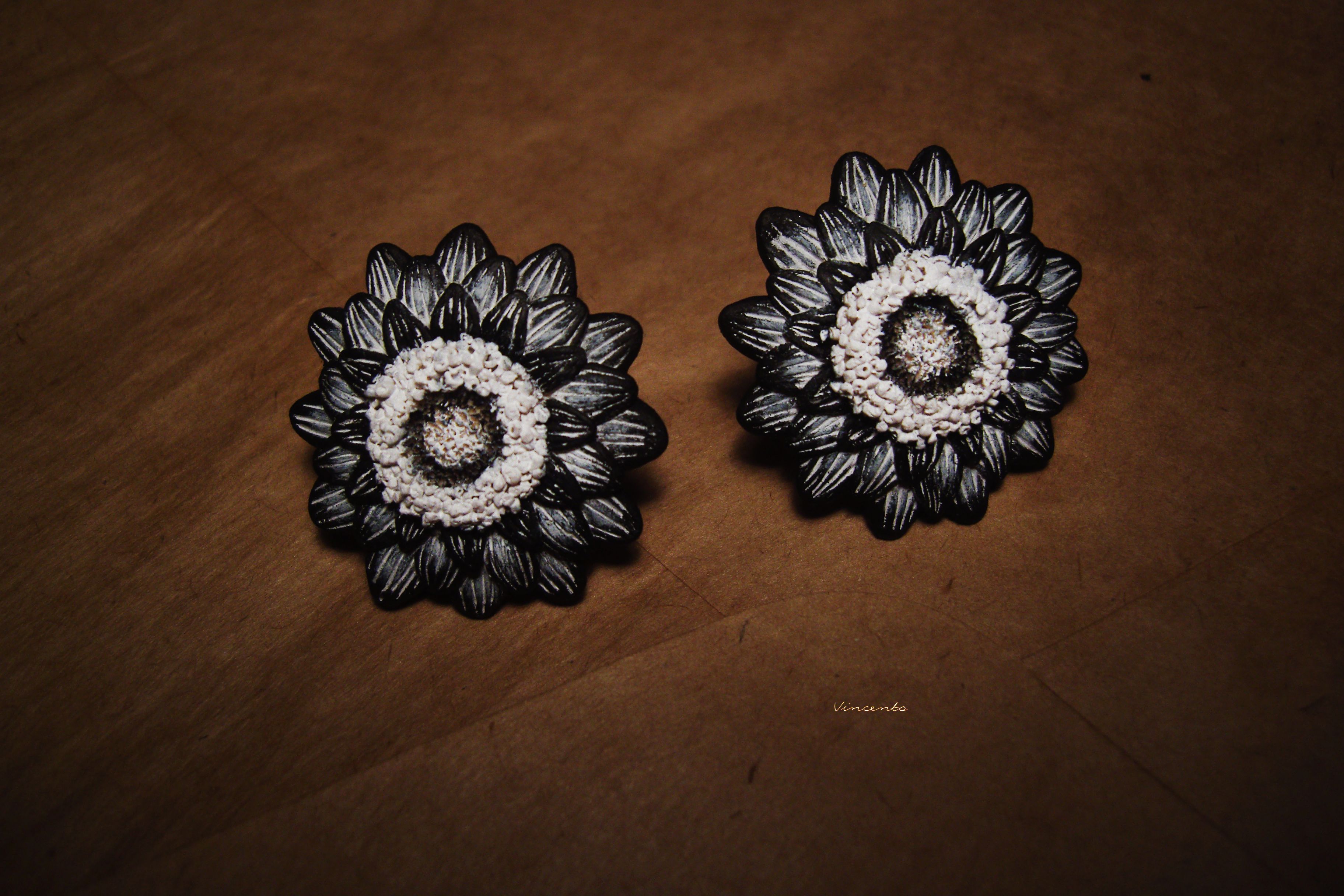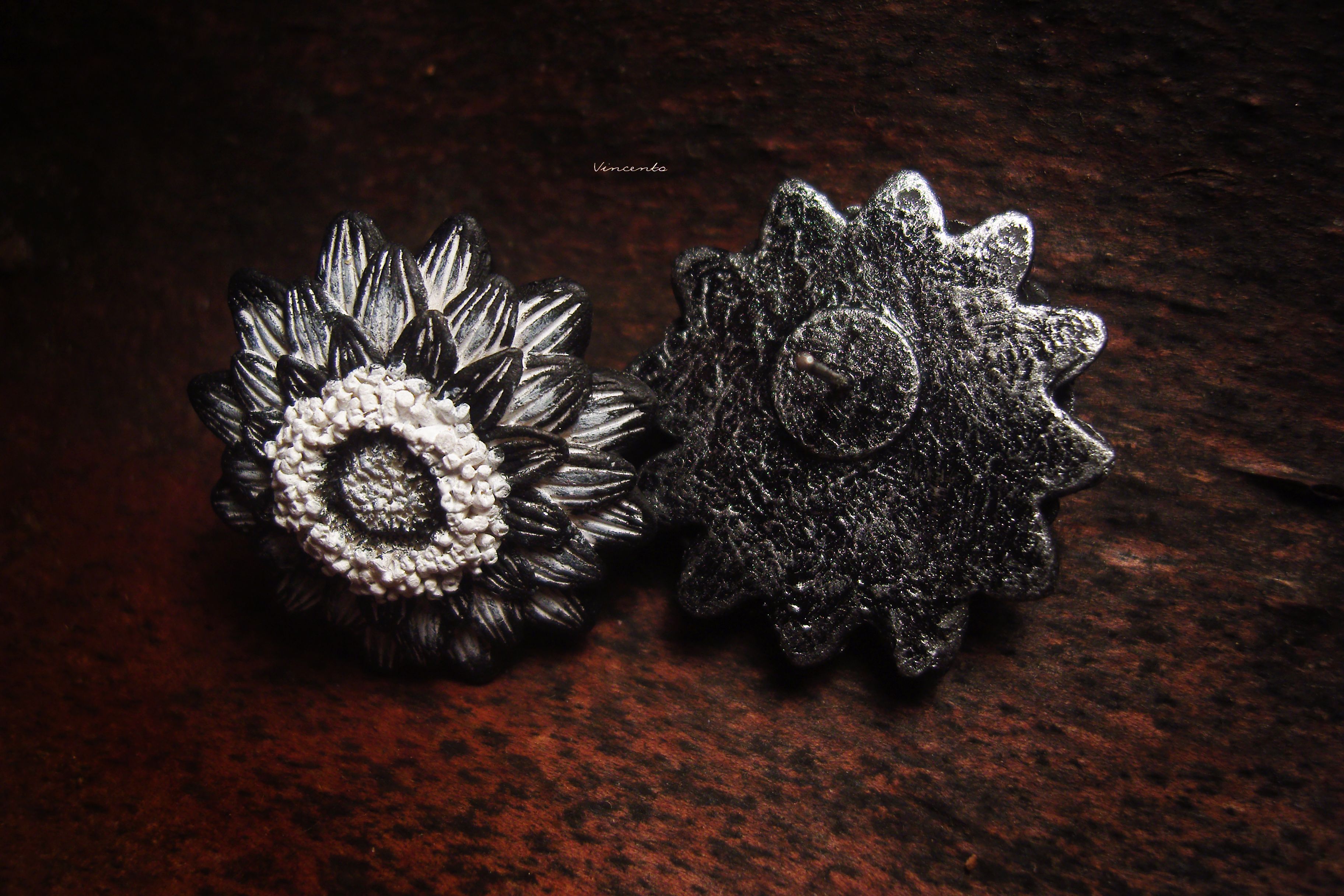 - Элегантный комплект украшений из колечка и серёжек в виде чёрно-белых фэнтезийных цветов ручной работы (каждый лепесток выполнен полностью вручную без использования каких-либо штампов).