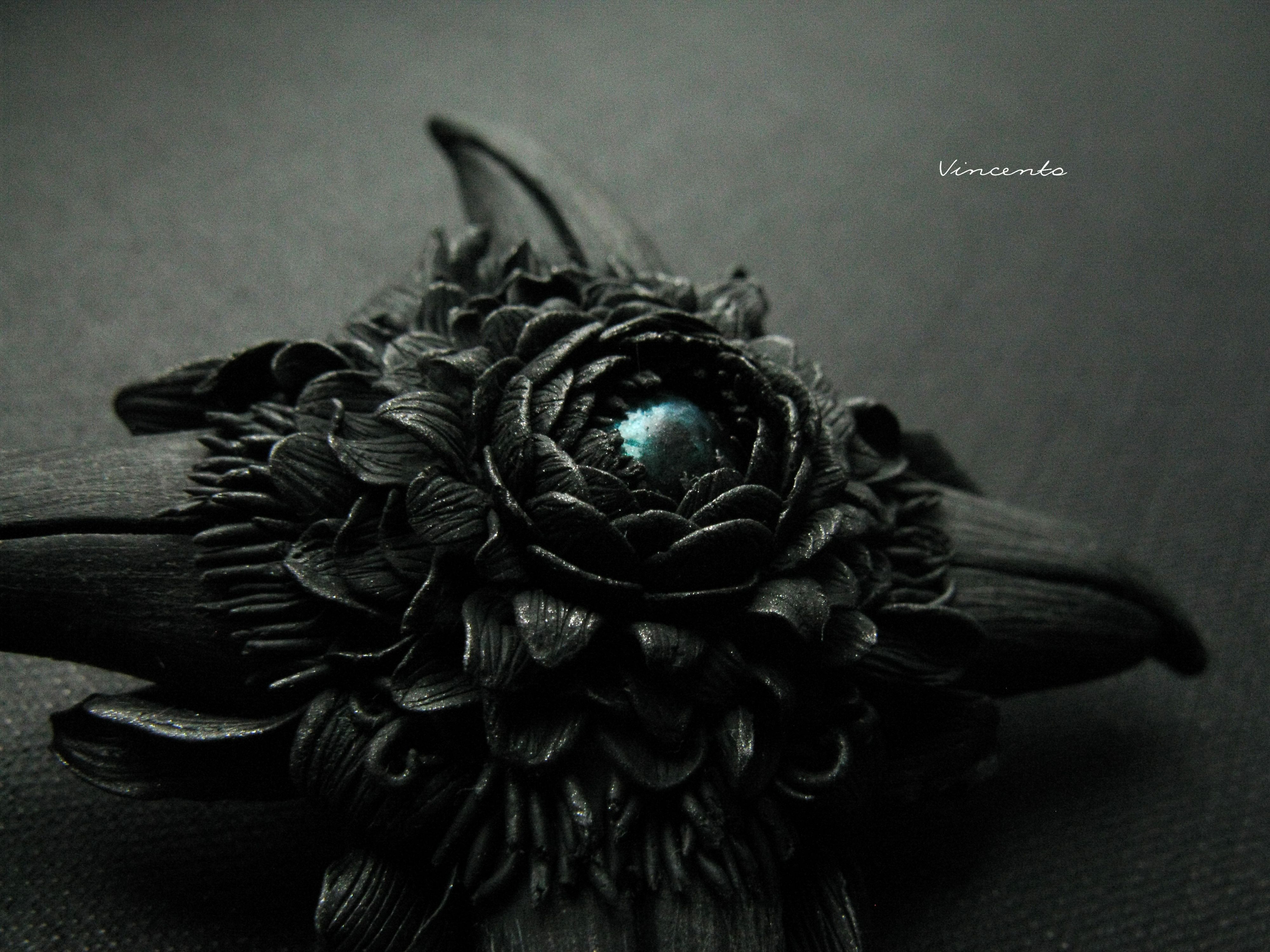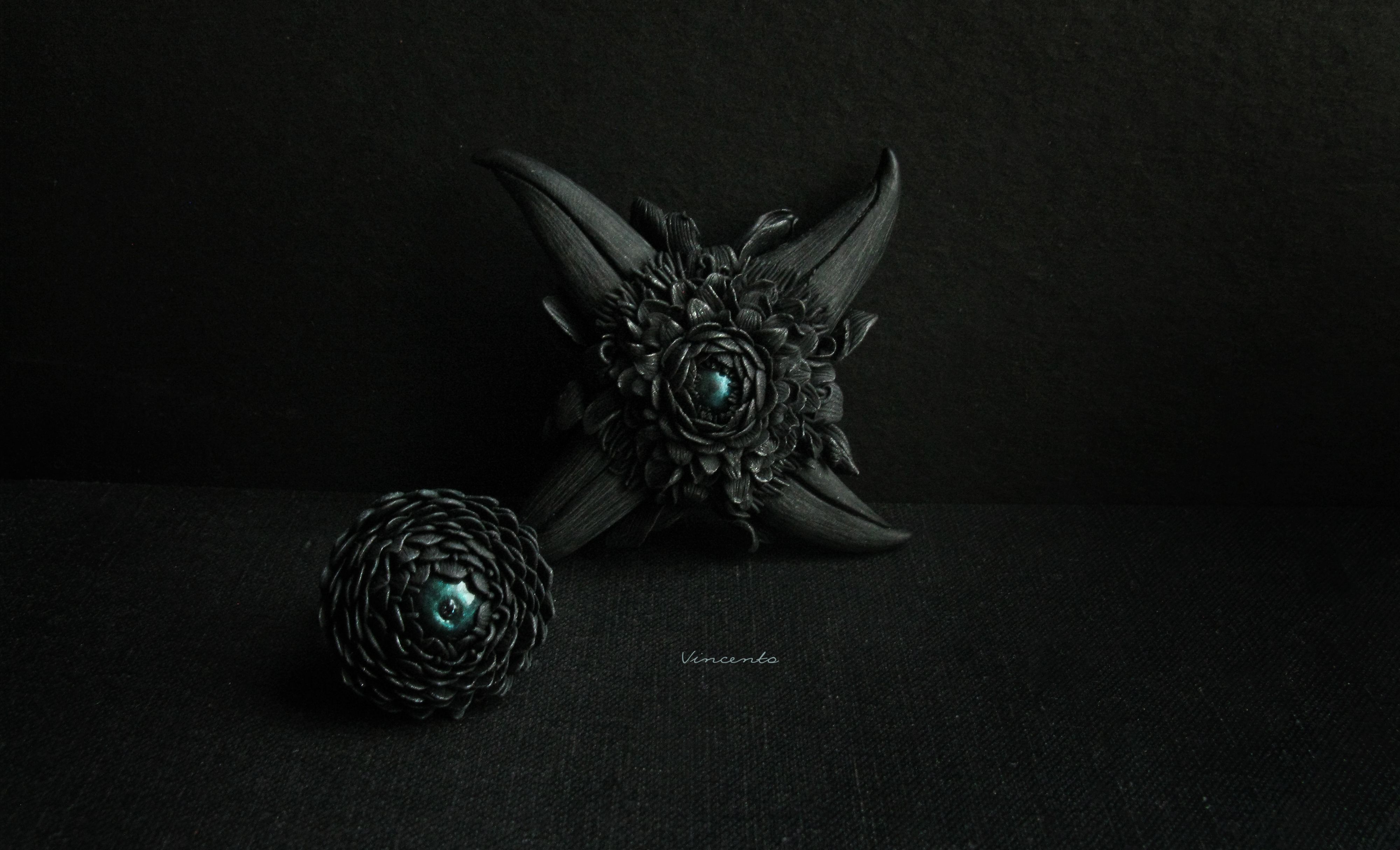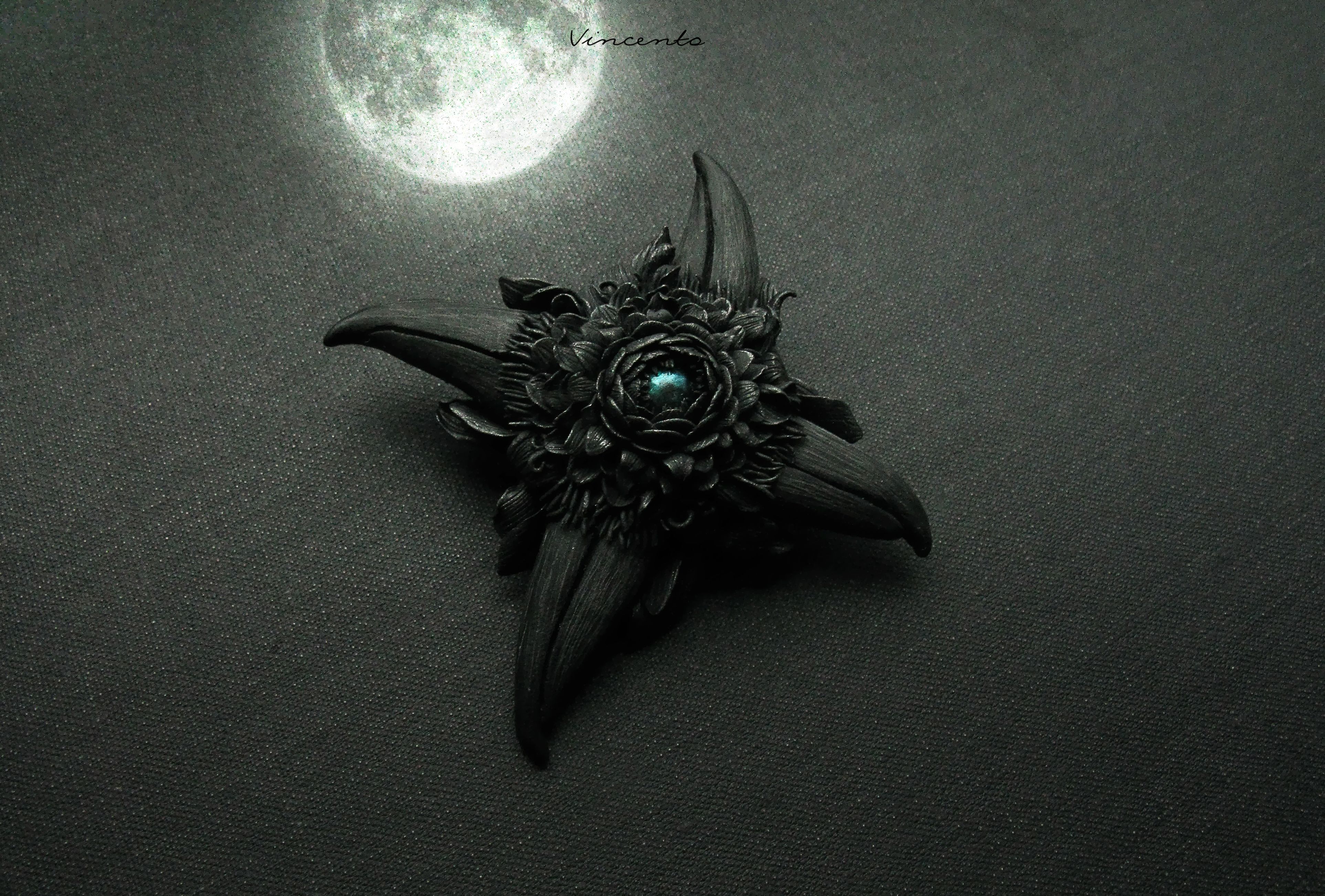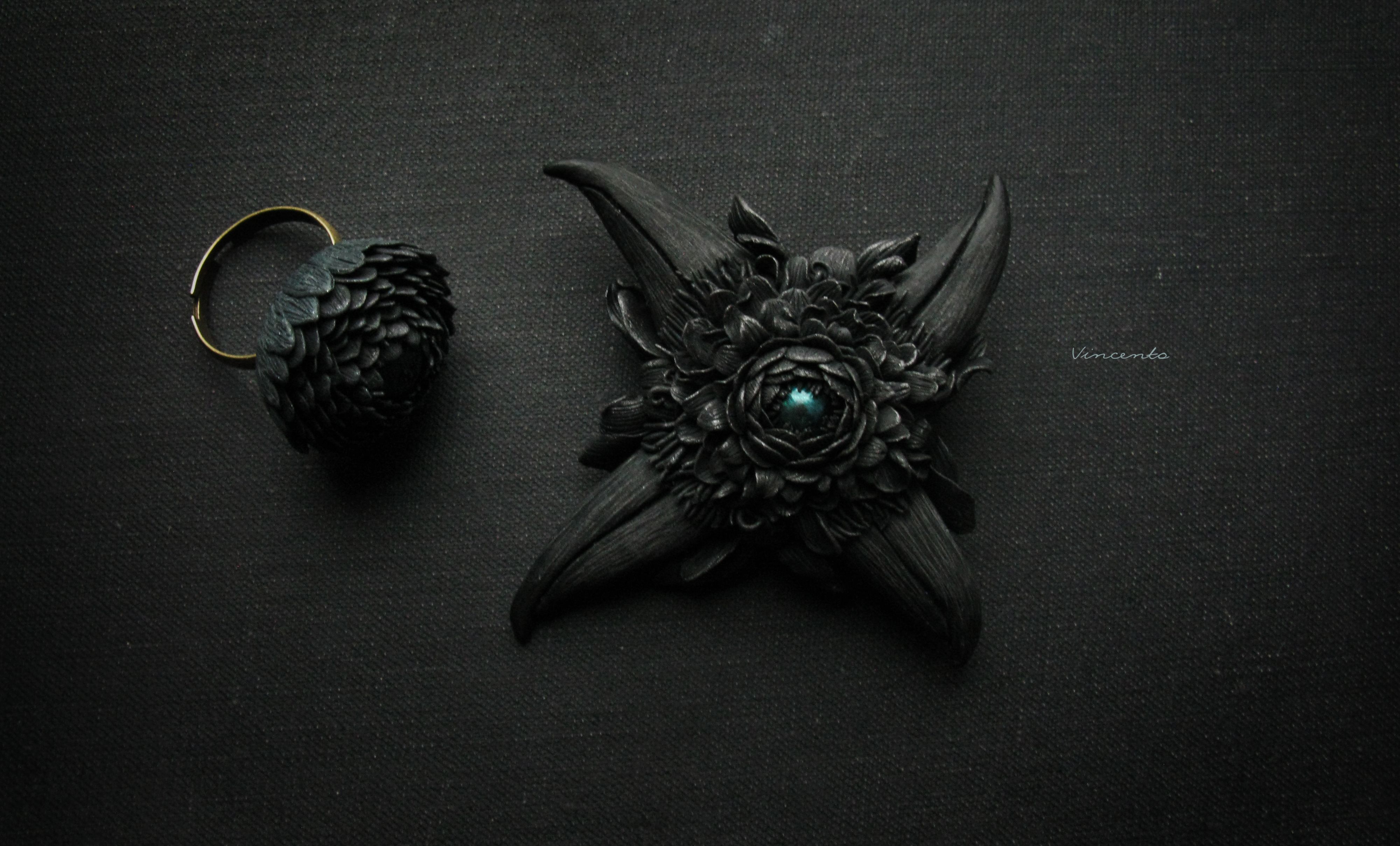 "Цветок Ворона". Комплект украшений (кольцо и брошь) в готическом стиле из коллекции "Рейвенсвуд"