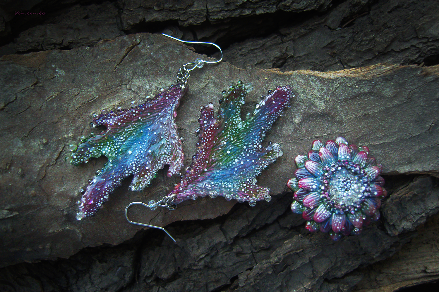 - Материалы: термоглина, пигменты, акриловые краски, лаки, стекловидная масса, микробисер, металлическая фурнитура.