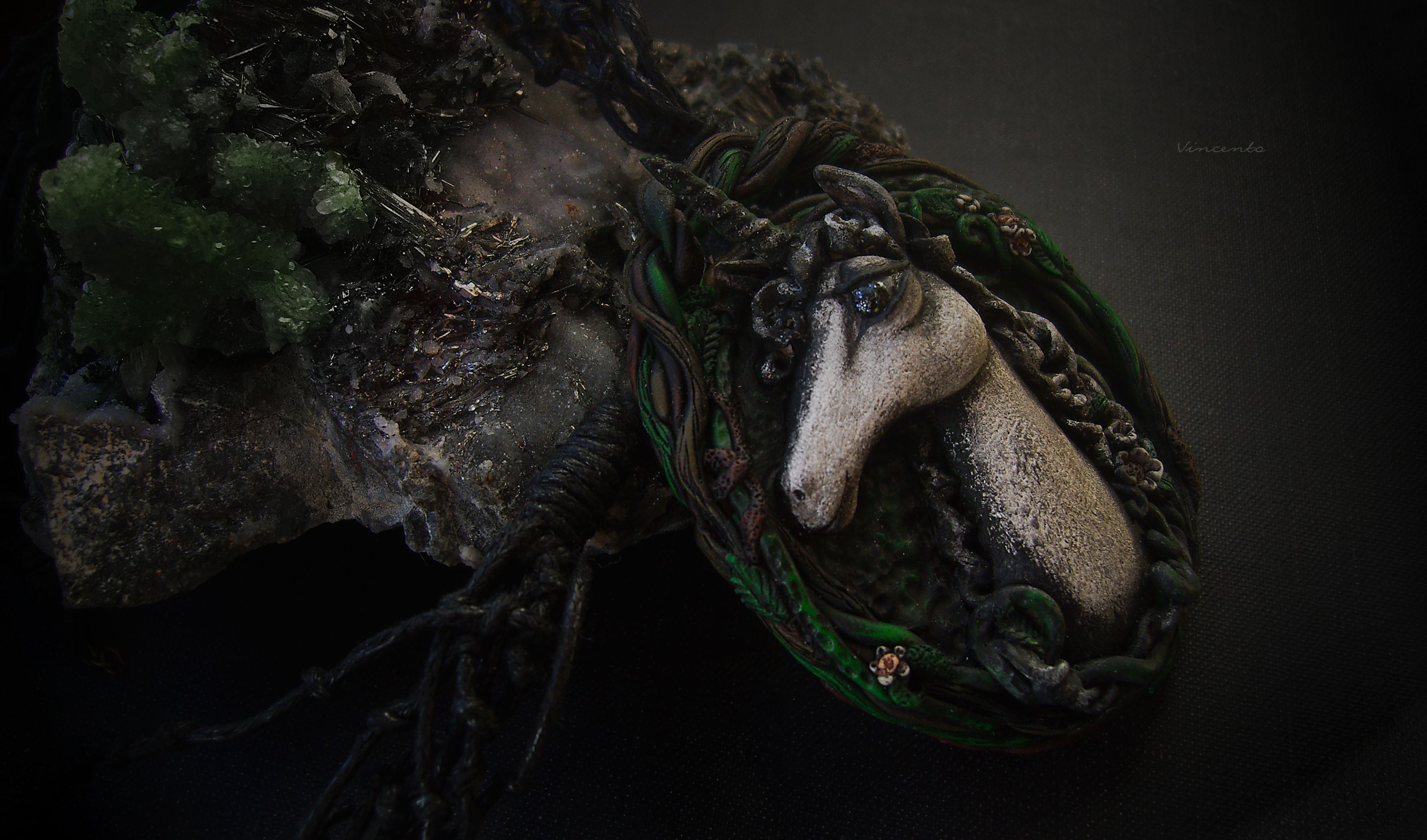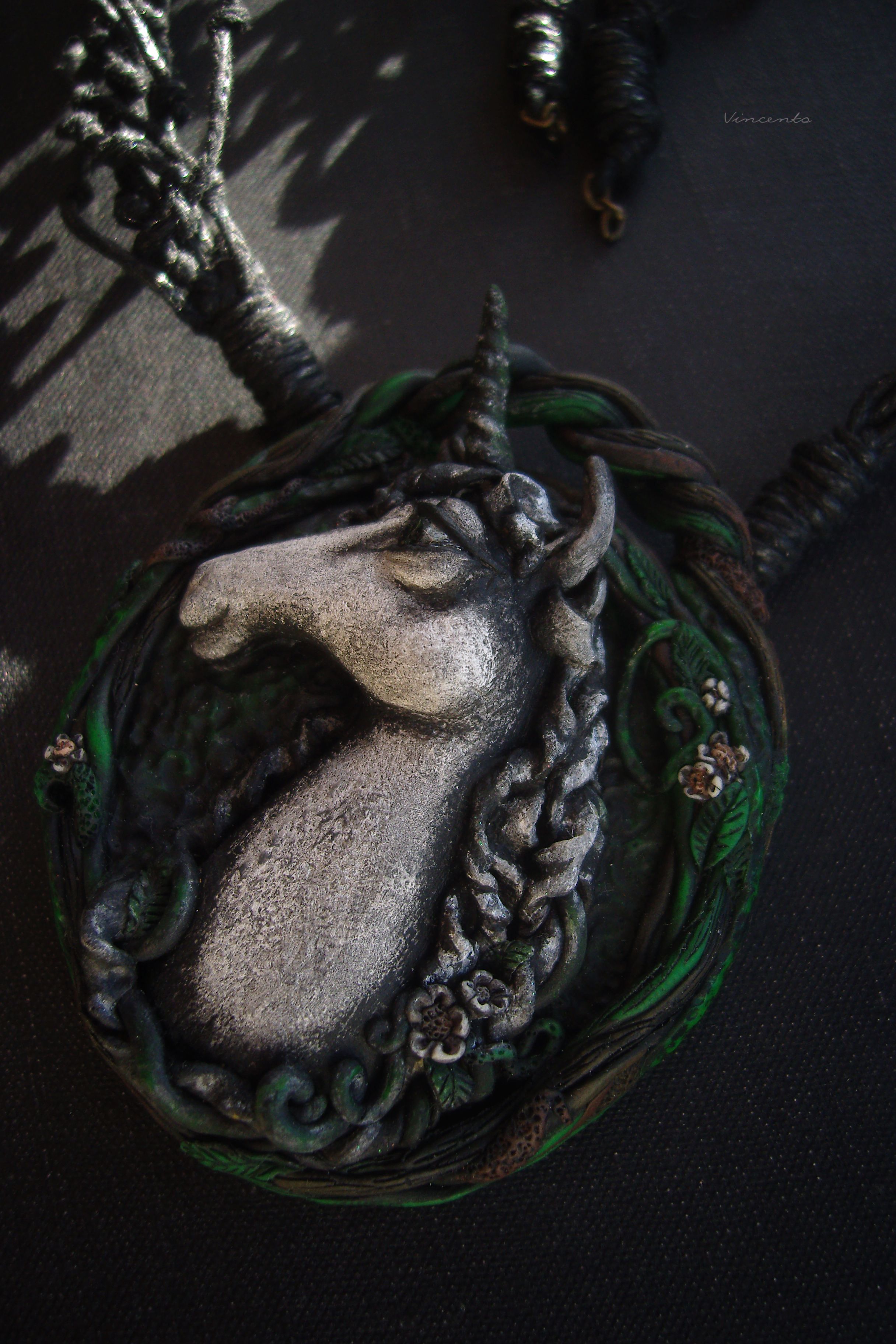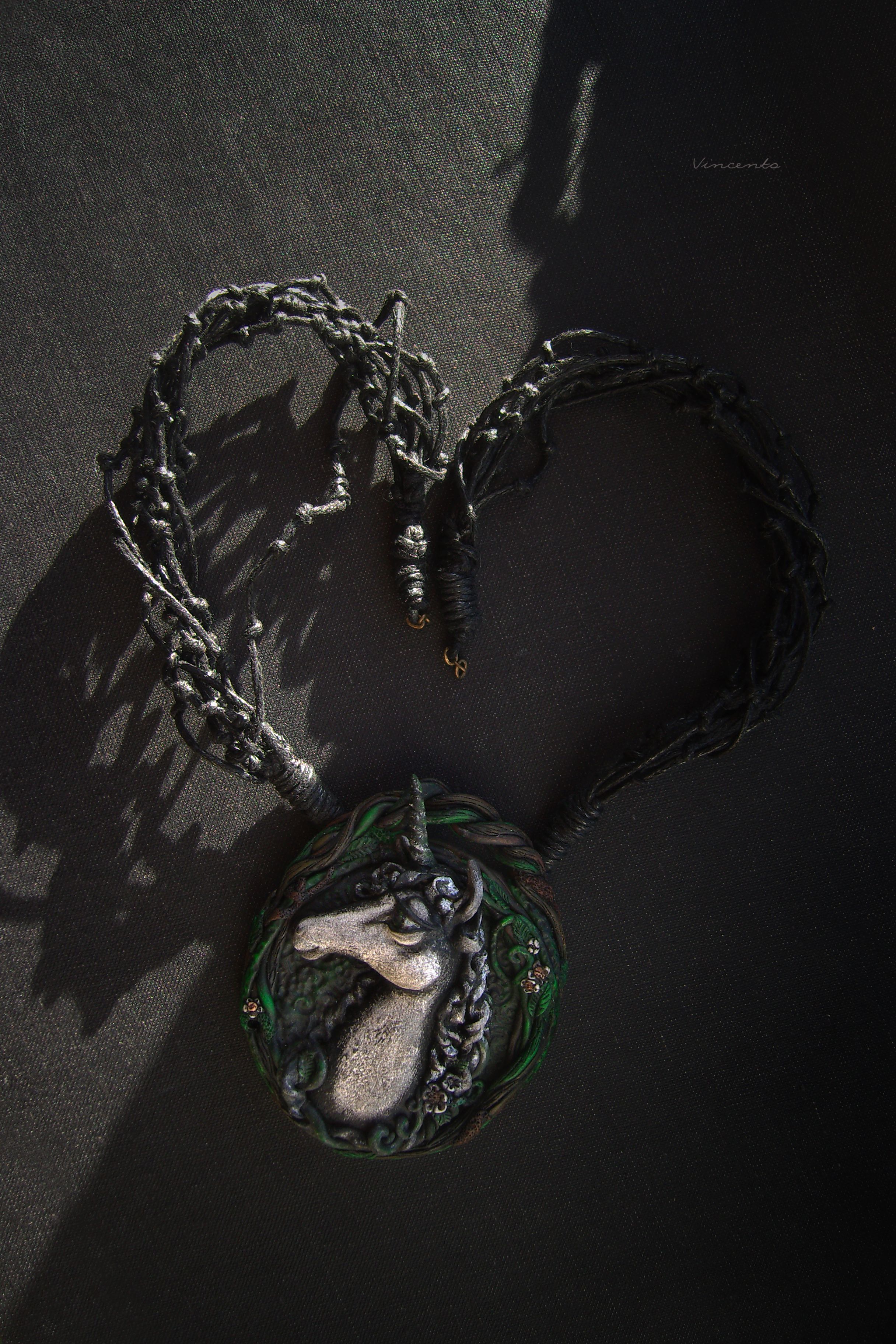 - Эффектное колье под шейку в стиле готического фэнтези с крупной подвеской в виде единорога - волшебного создания из Сумеречного леса.