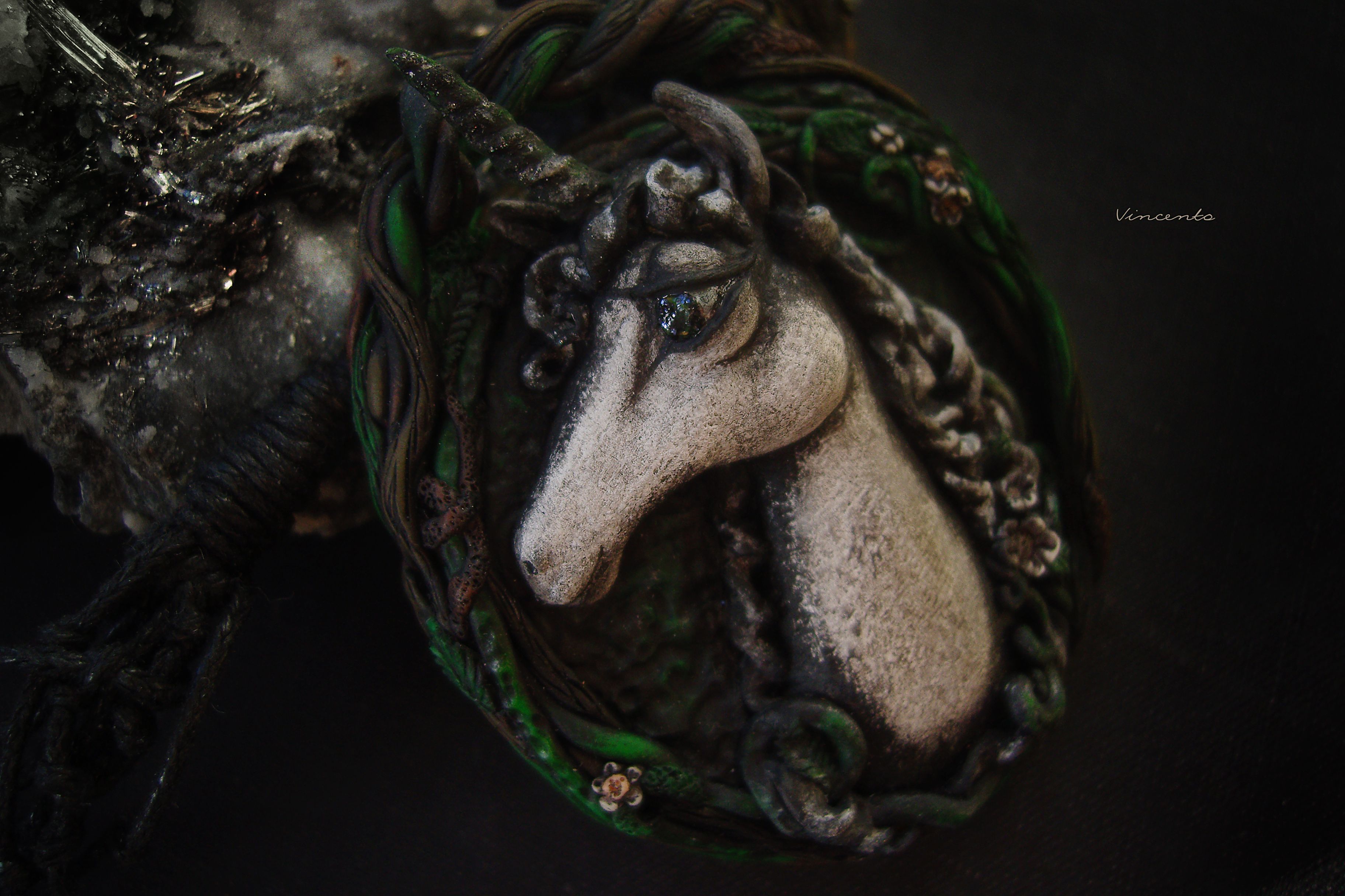 - В основе идеи украшения - старинные гравюры и иллюстрации к сказаниям минувших лет. Наш единорог будто высечен из камня, шершавого, поблёкшего от ветров и времени... Он хранит в себе тайны древних легенд, он помнит рассвет и закат эры волшебства...