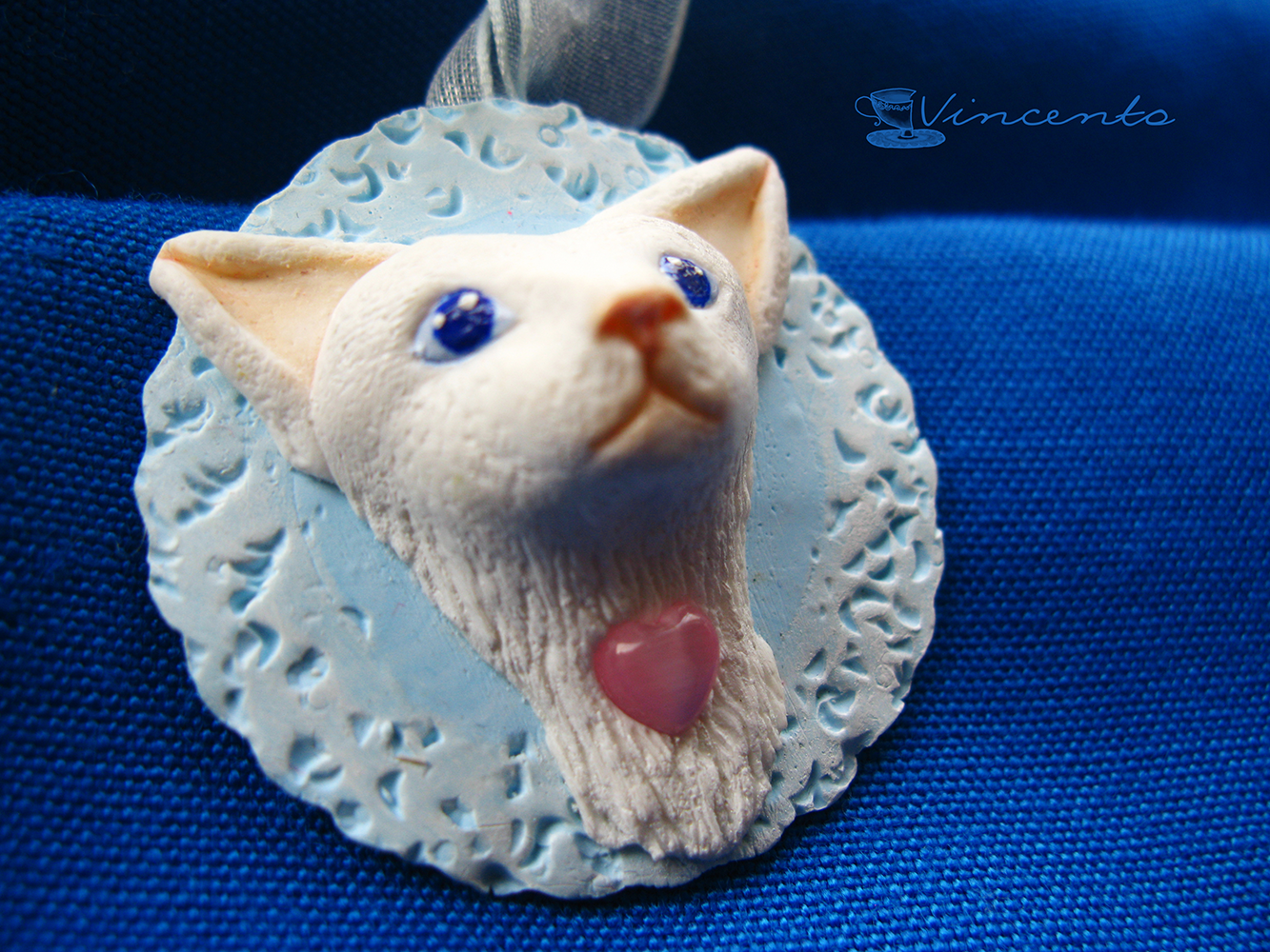 Кошечка Шебби. Авторская подвеска в стиле шебби-шик из полимерной глины
