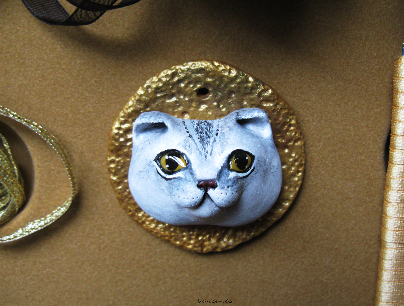 - Необычная подвеска в виде симпатичного вислоухого котика британца. Была изготовлена на заказ по фотографии.