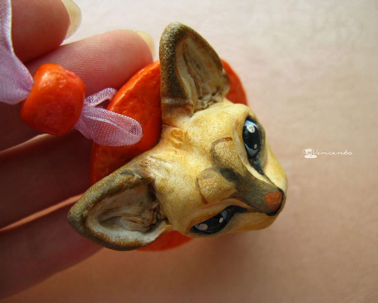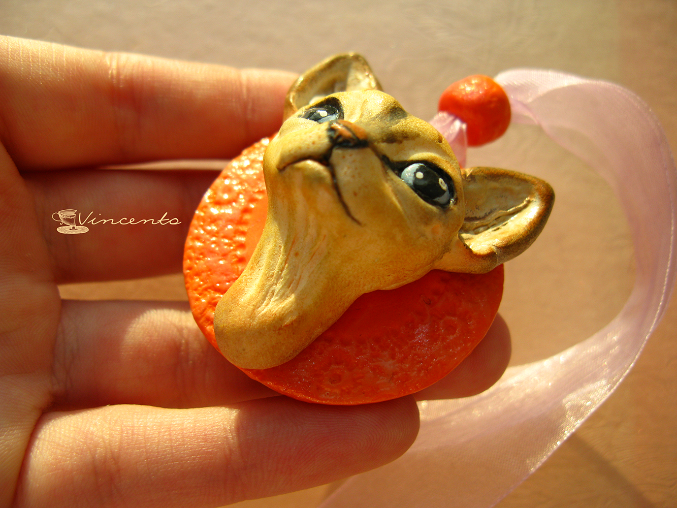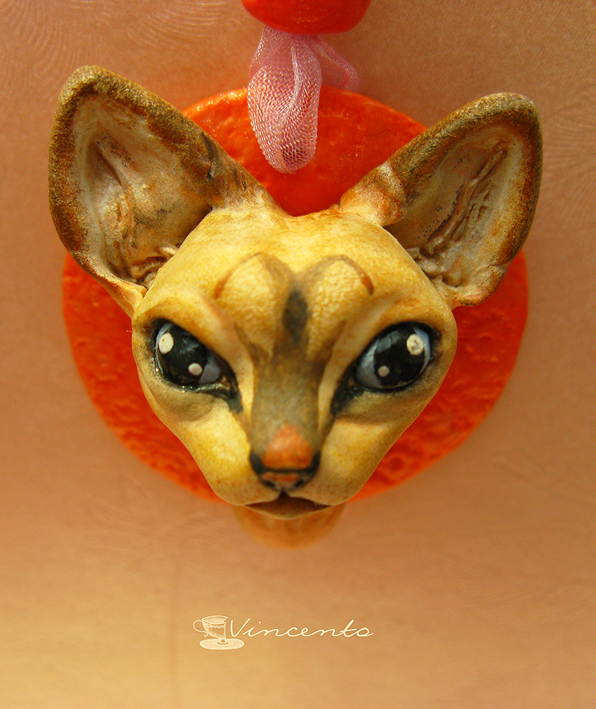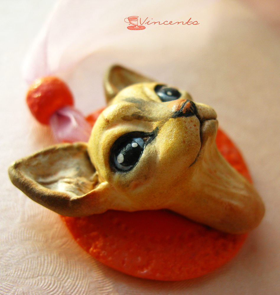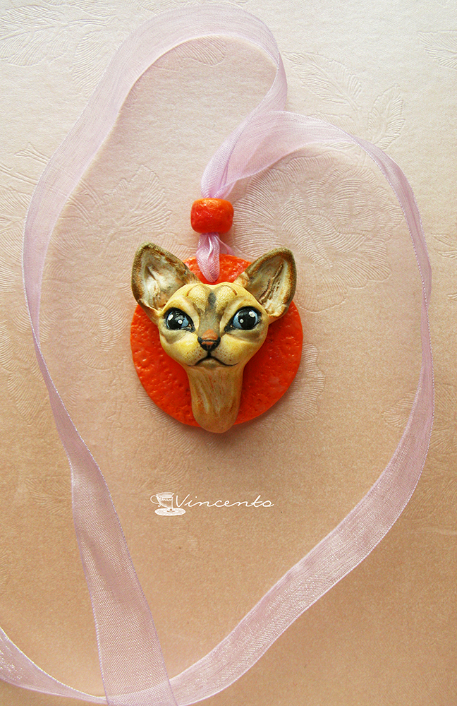 Котёнок Ахтай. Авторская подвеска-кошка (кулон с котёнком) из полимерной глины