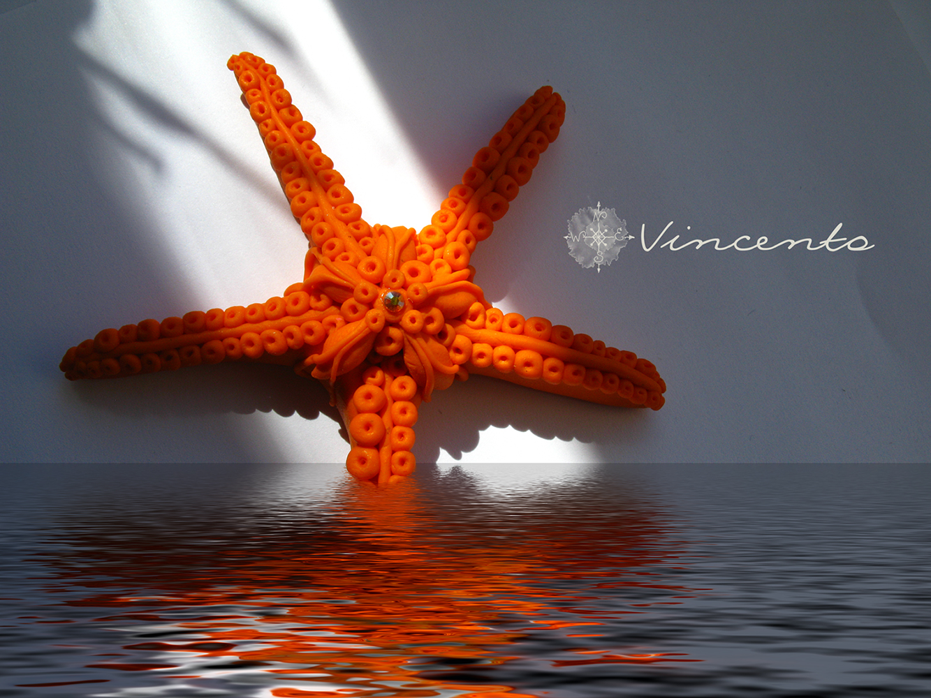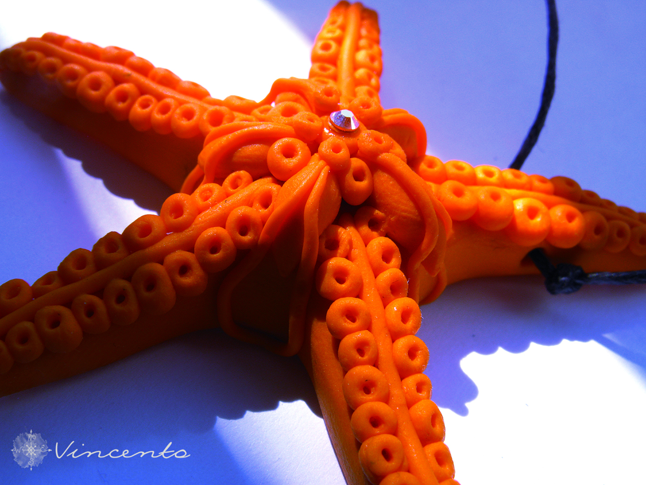 - Кулон "Asteroidea" не что иное, как фэнтезийная оранжевая морская звезда с пятью тонкими лучами, украшенными фактурными "пупырышками".