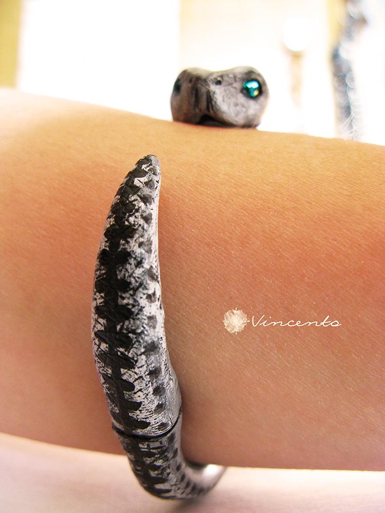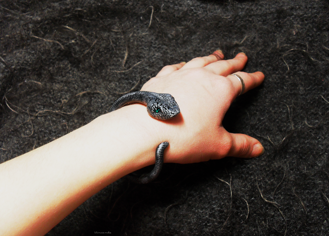 - Изготовление на заказ. Обязательно указывайте обхват запястья, степень детализации (реалистичность змейки, проработка мелких деталей мордочки, чешуи), желаемый узор на чешуе, цвет, материалы для глаз (стразы Сваровски, натуральные камни, стеклянные бусины, либо мы можем отрисовать глаза, напоминающие настоящие).