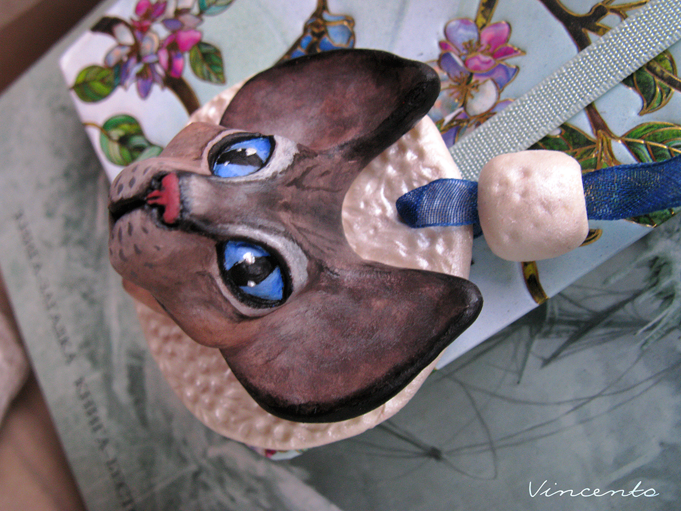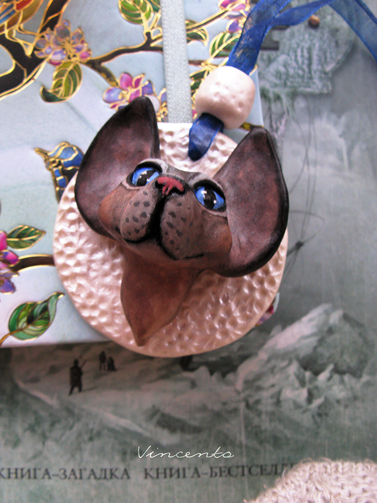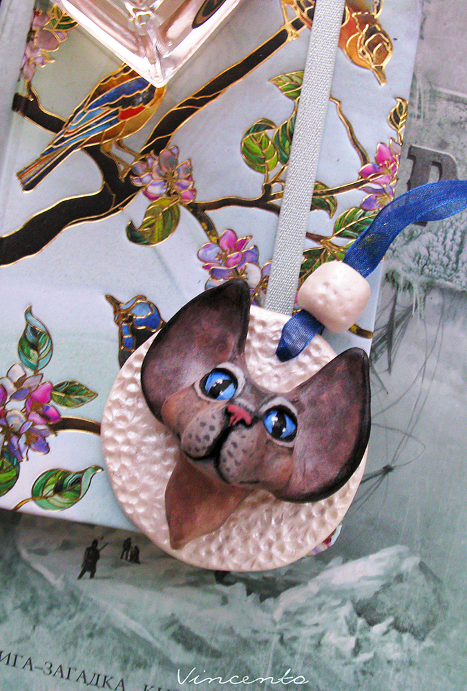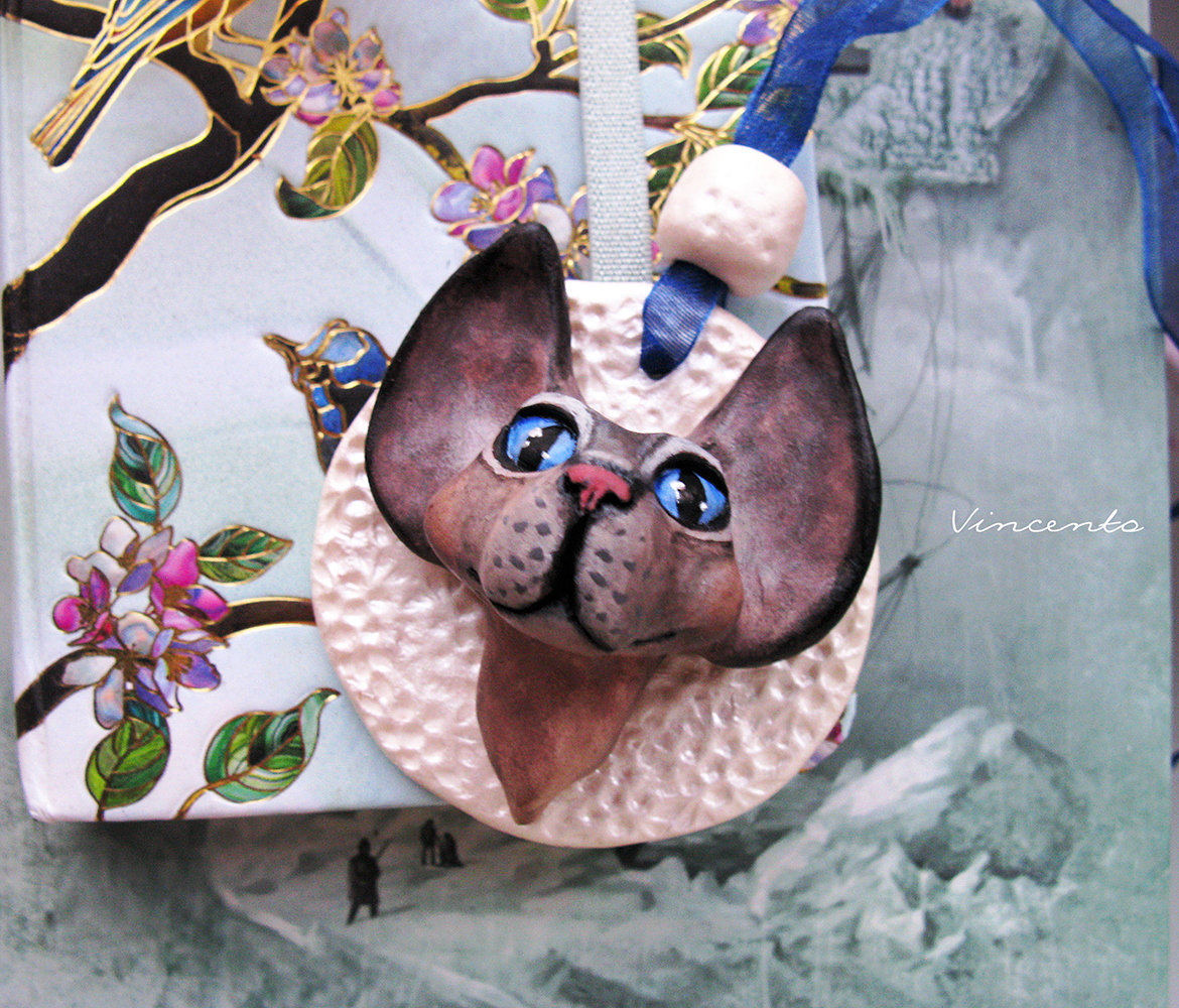 - Кулон "Куплю кошечку!" выполнен из лёгкой полимерной глины без использования каких-либо шаблонов или штампов. Единственный экземпляр. Ручная роспись акриловыми красками (финишное покрытие тонким слоем защитного матового лака). Кулон подвешивается на ленту из органзы или атласа (по желанию заказчика). Диаметр кулона - около 5 см.