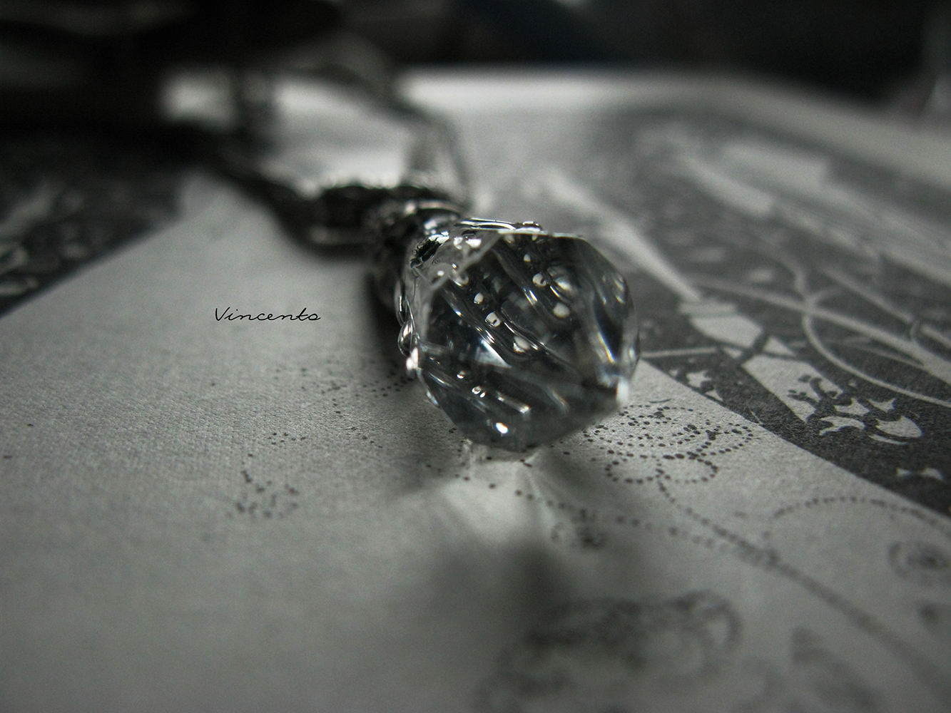 - Изящный кулон с прозрачным кристаллом, напоминающим кусочек льда, тающий на солнце... Такой эффект получается благодаря фактурной поверхности кристалла.