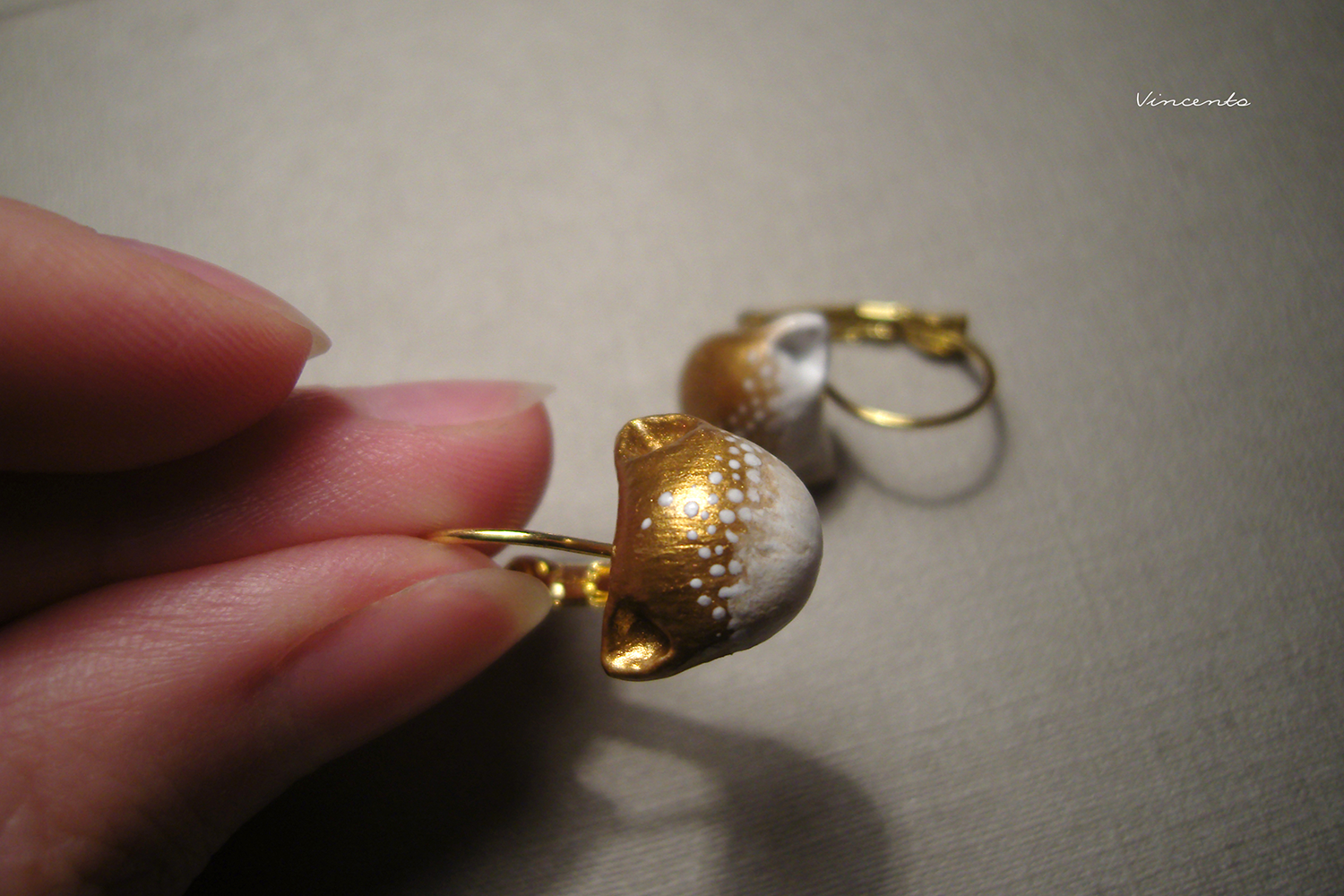 Миниатюрные серьги "Золотые Котики" с авторской росписью
