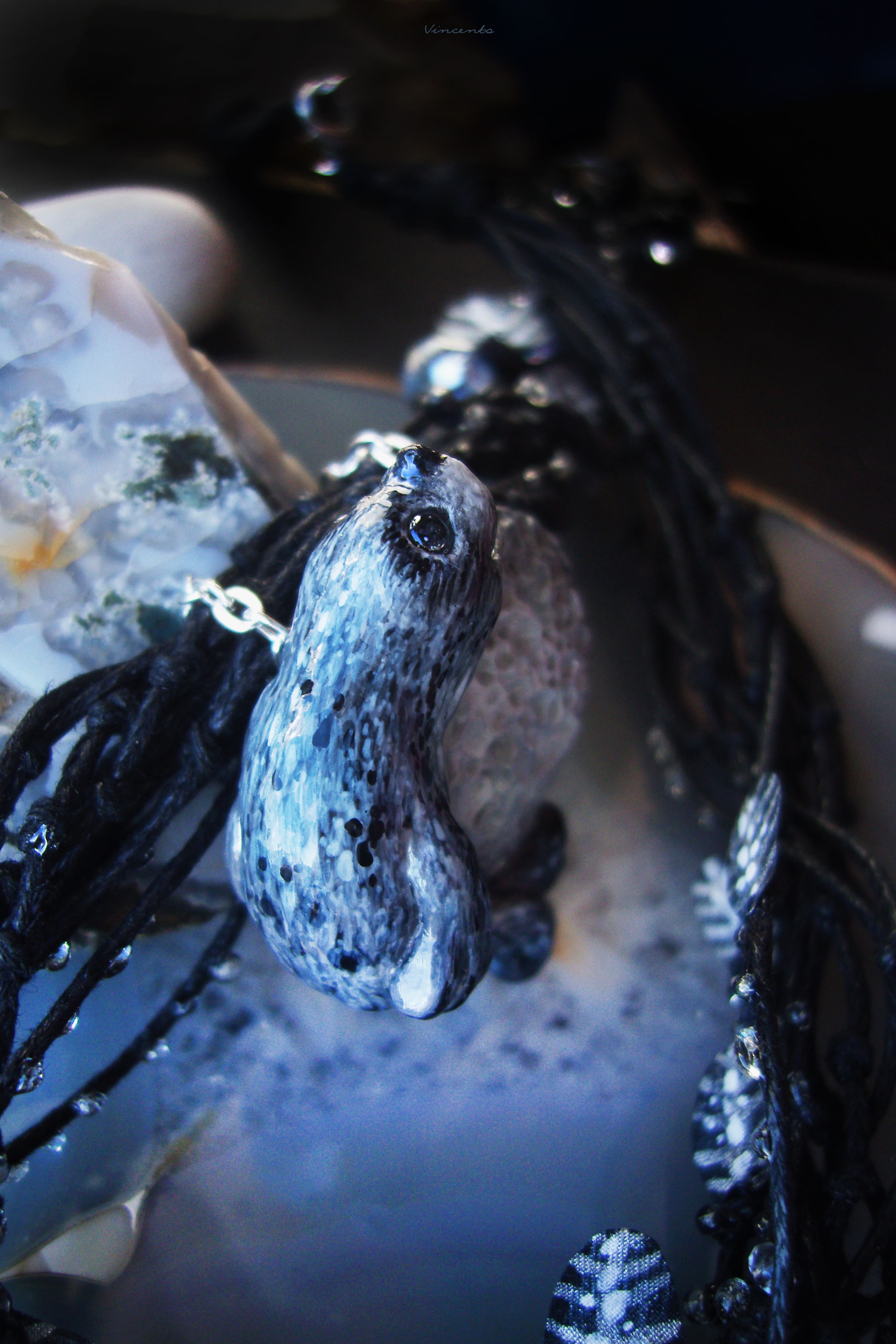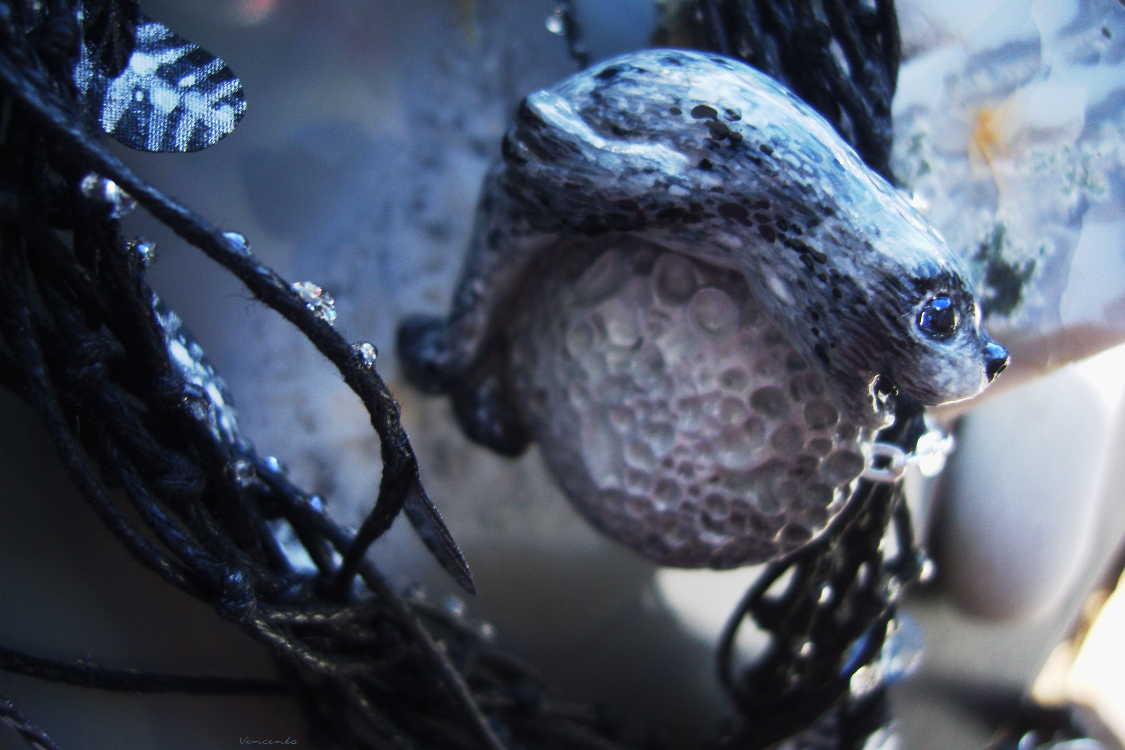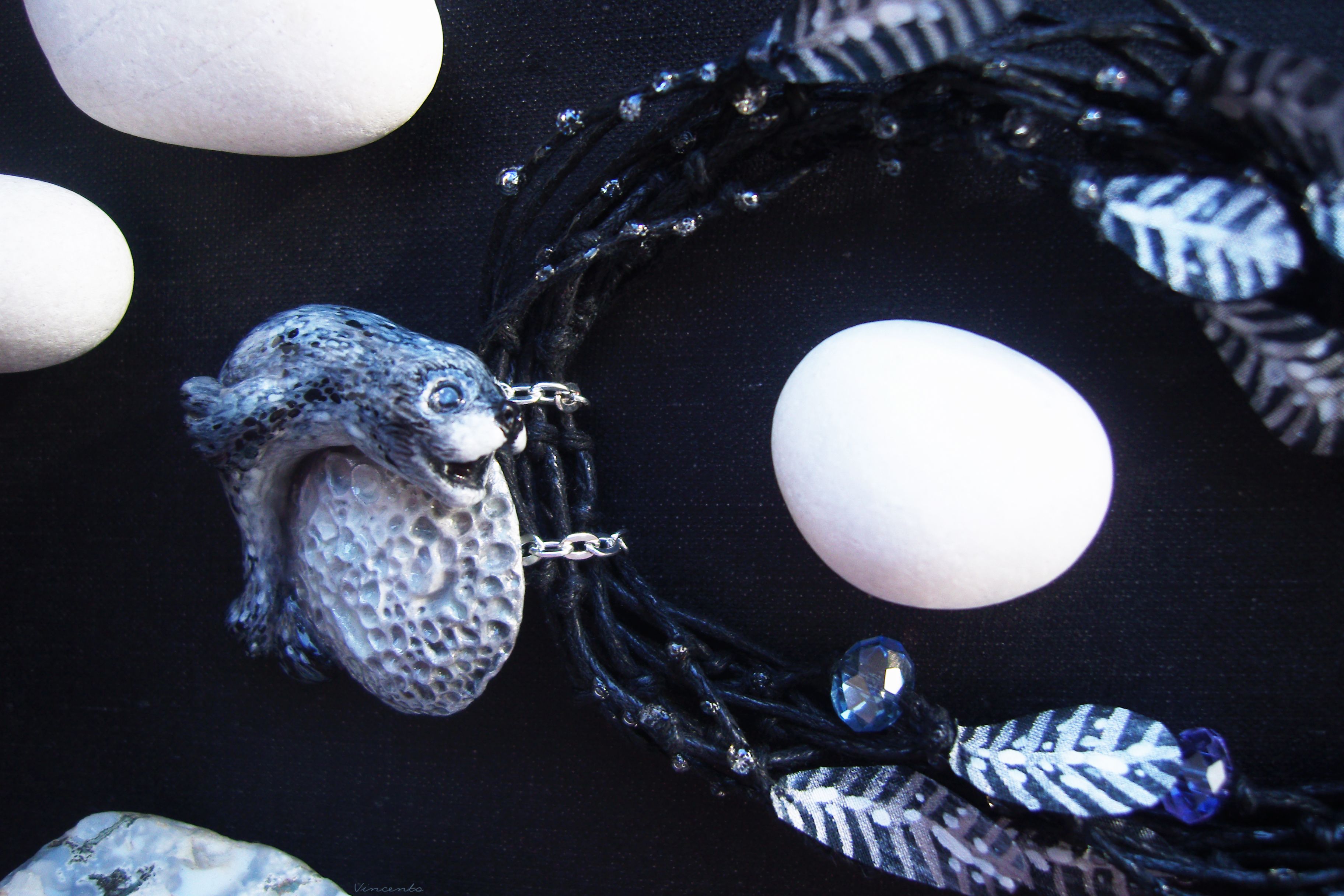 - Волшебное украшение с диском луны, тюленем, шёлковыми лепестками, чешским хрусталём и сверкающими капельками холодного океана.