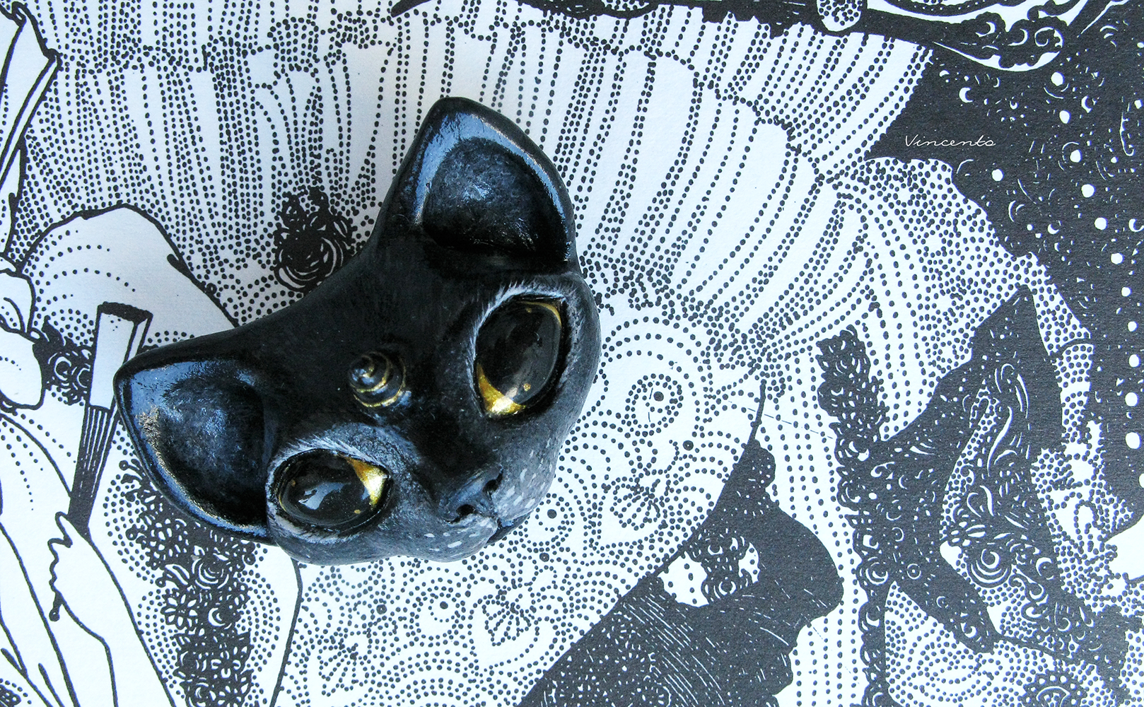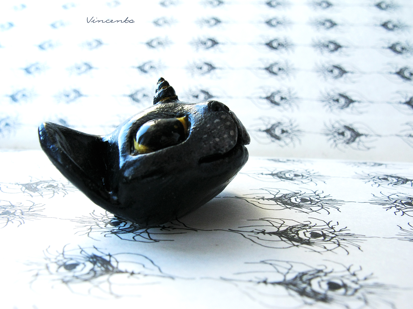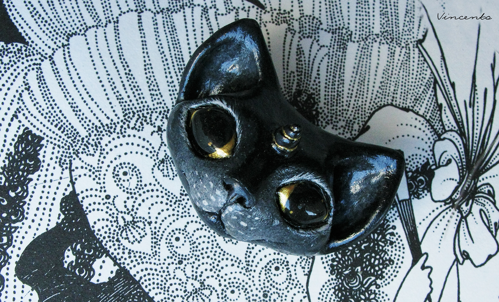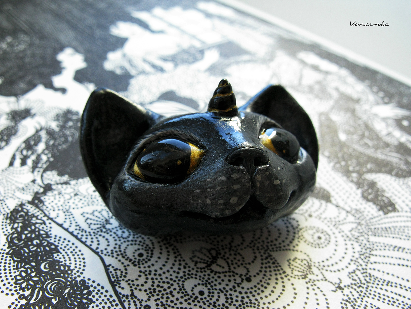 Кошка-Единорожка. Необычная брошь в виде чёрной кошки из полимерной глины