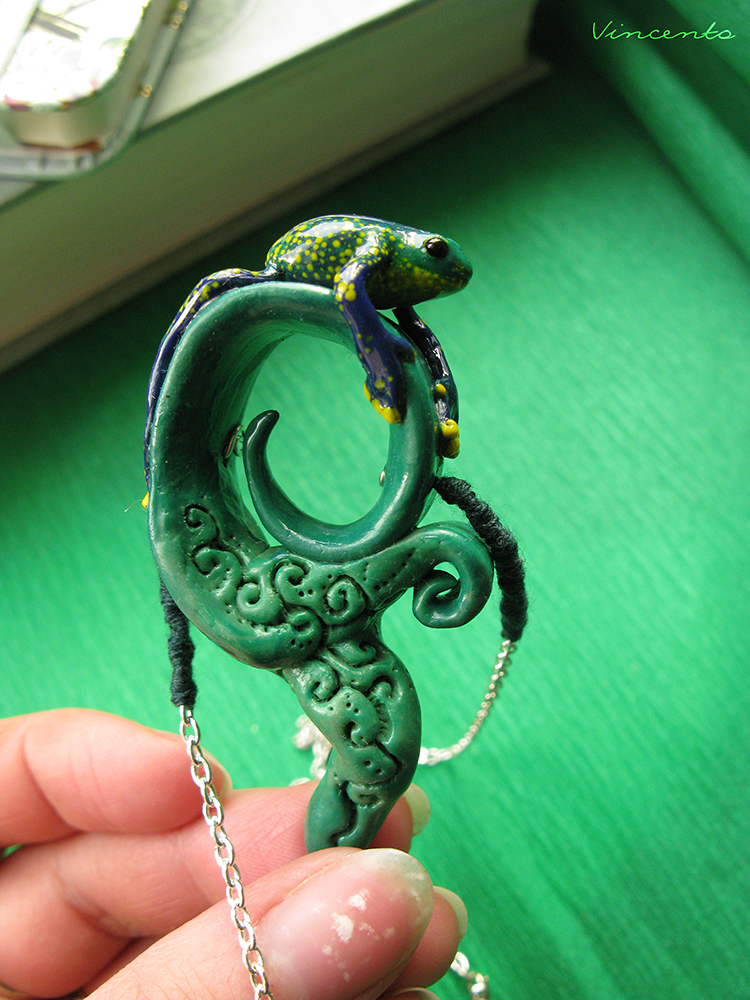 - Подвеска изображает лесной артефакт - посох-травинку - на котором устроилась маленькая экзотическая лягушечка...