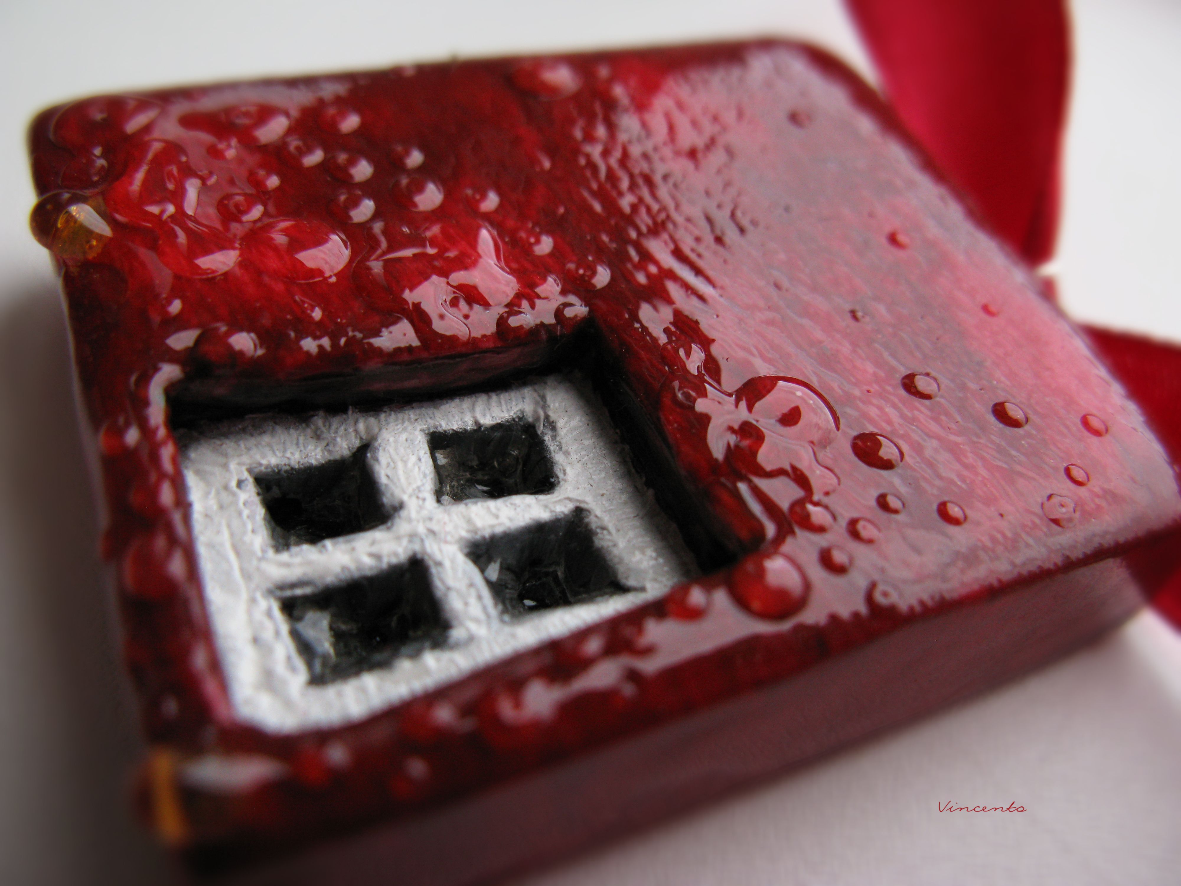 - Яркий, бордовый оттенок стены очень эффектно контрастирует с белыми ставнями маленького окна. А фактурная поверхность и нарочито небрежные формы призваны отразить атмосферу старинного городка, пронизанного древниги историями и поверьями...