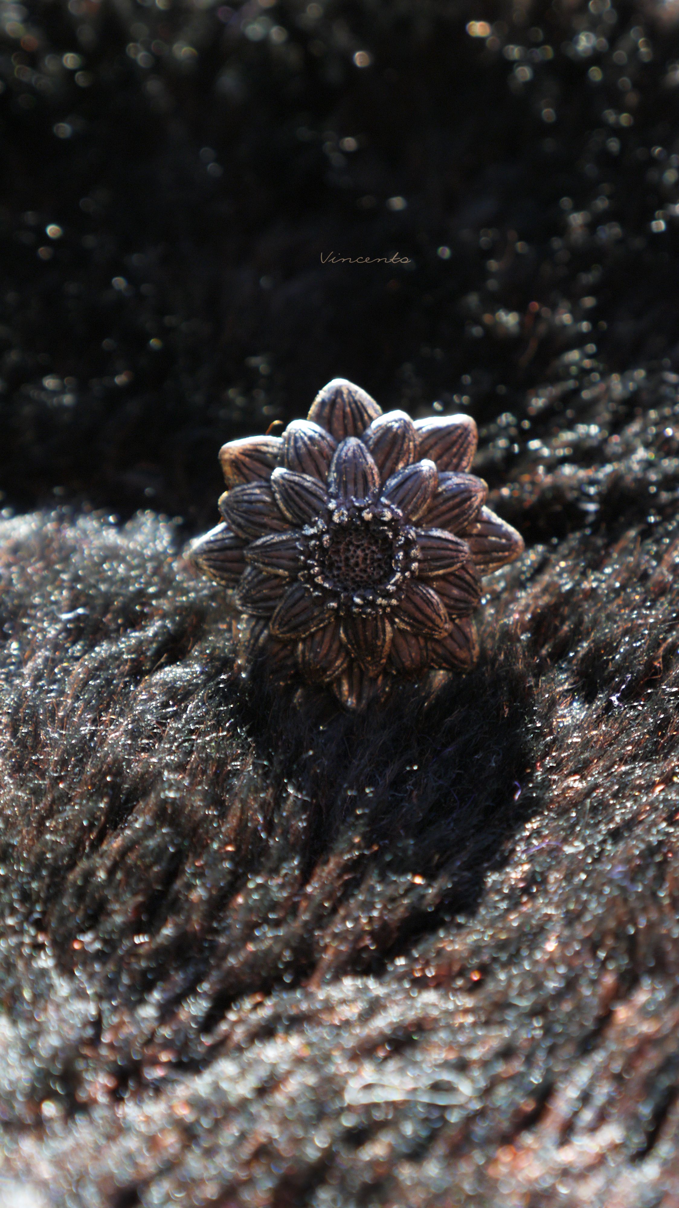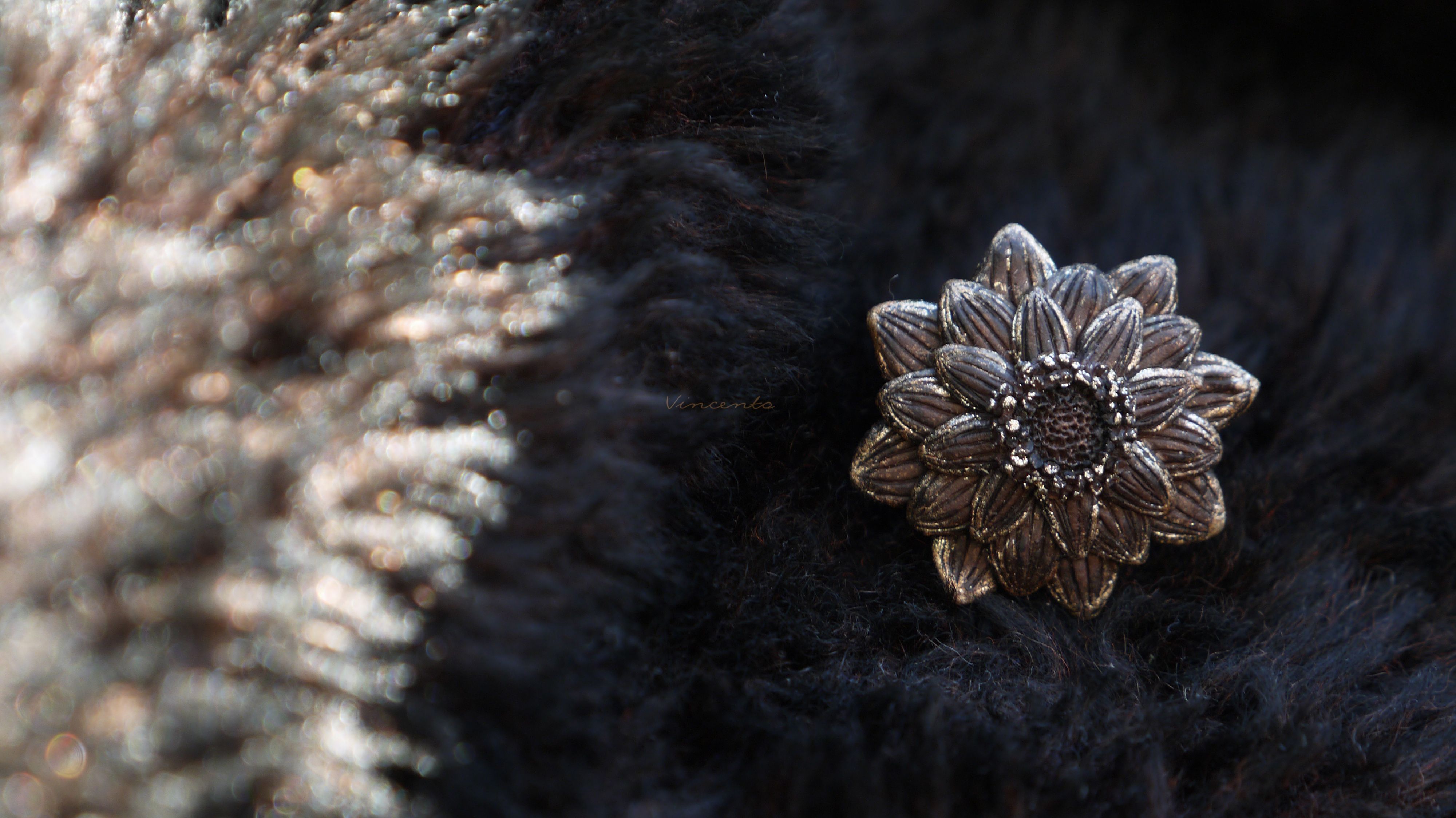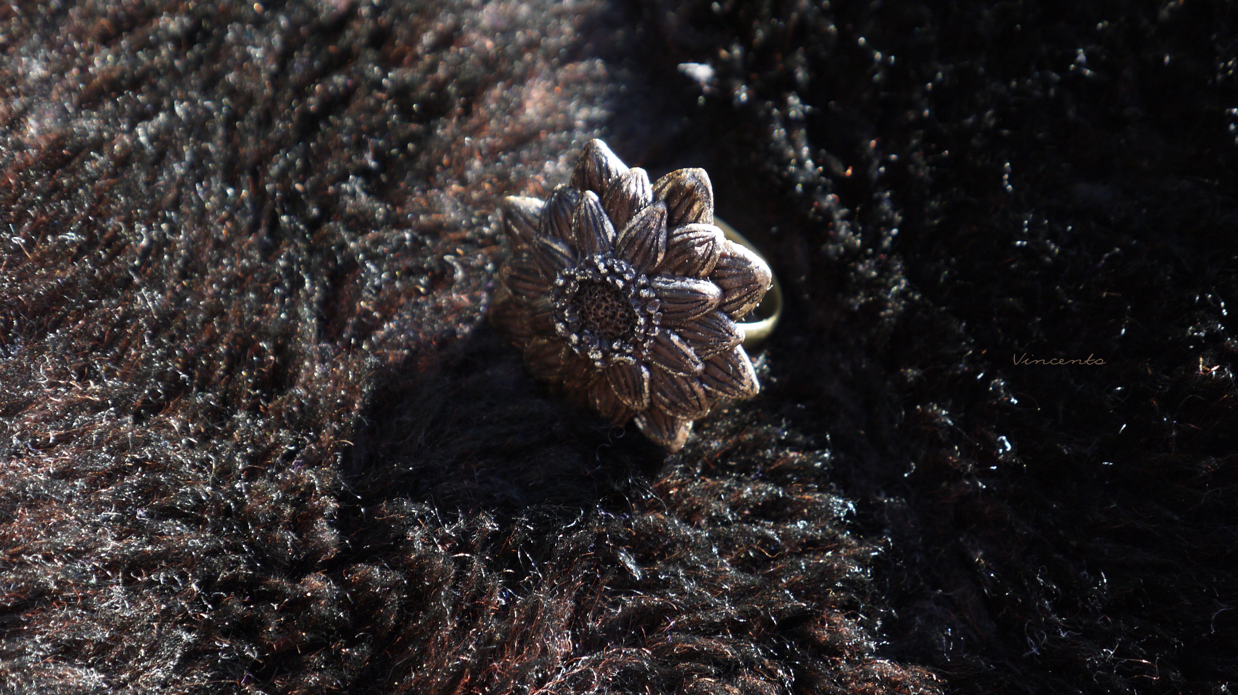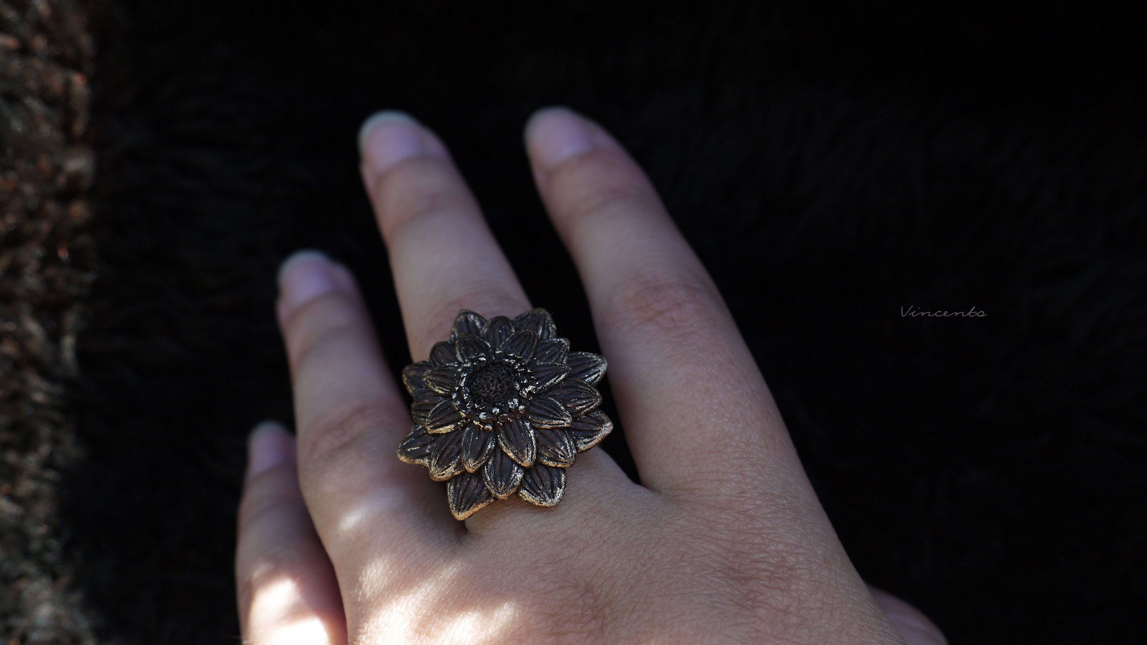 - Романтичное и очень элегантное колечко в виде мерцающего цветка кофейного цвета.