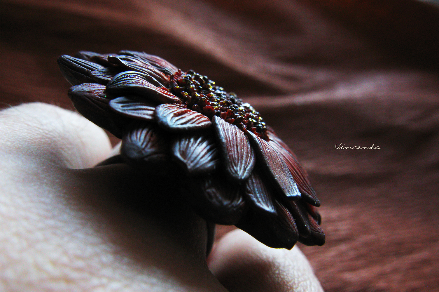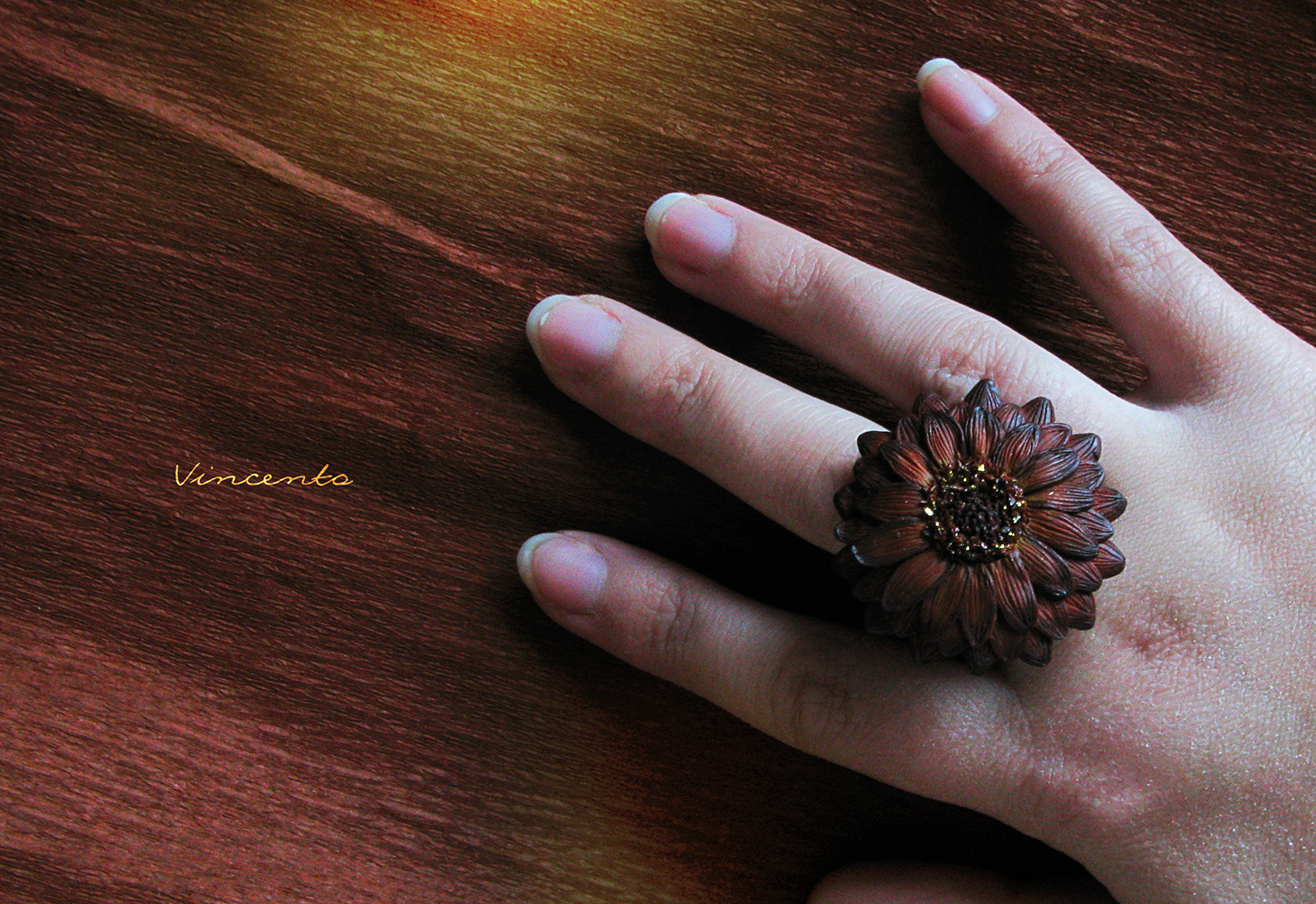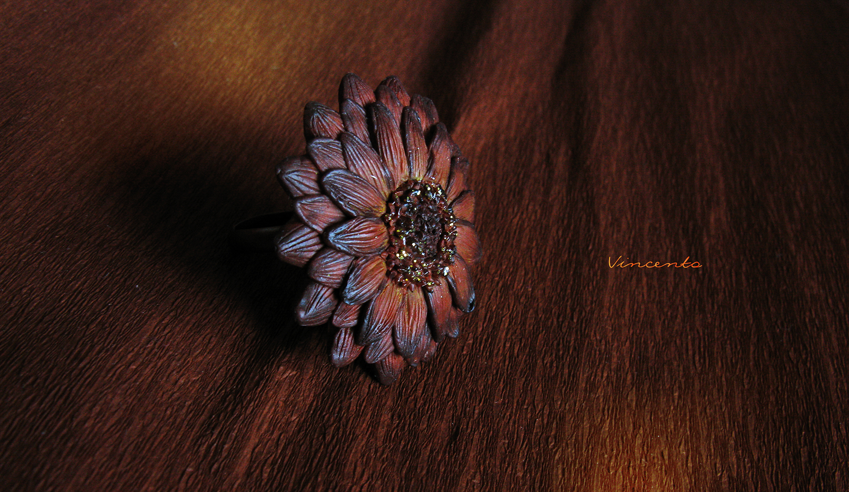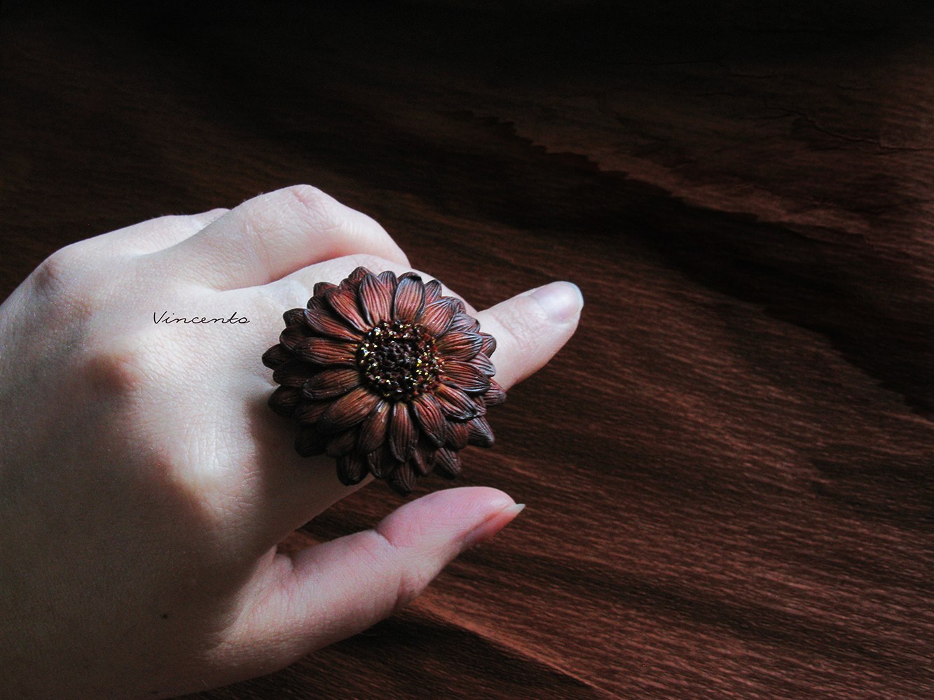 Необычное кольцо "Медная Календула" из полимерной глины. Серия колец-цветов из коллекции волшебных украшений Винсенто