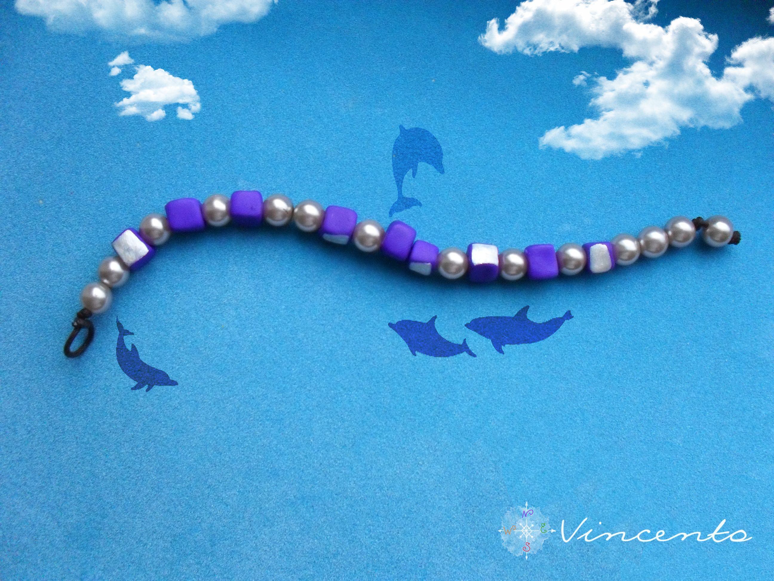 - Яркий, очень необычный браслет ручной работы в авангардном стиле, собранный из авторских фиолетово-перламутровых бусин и гладких жемчужин.