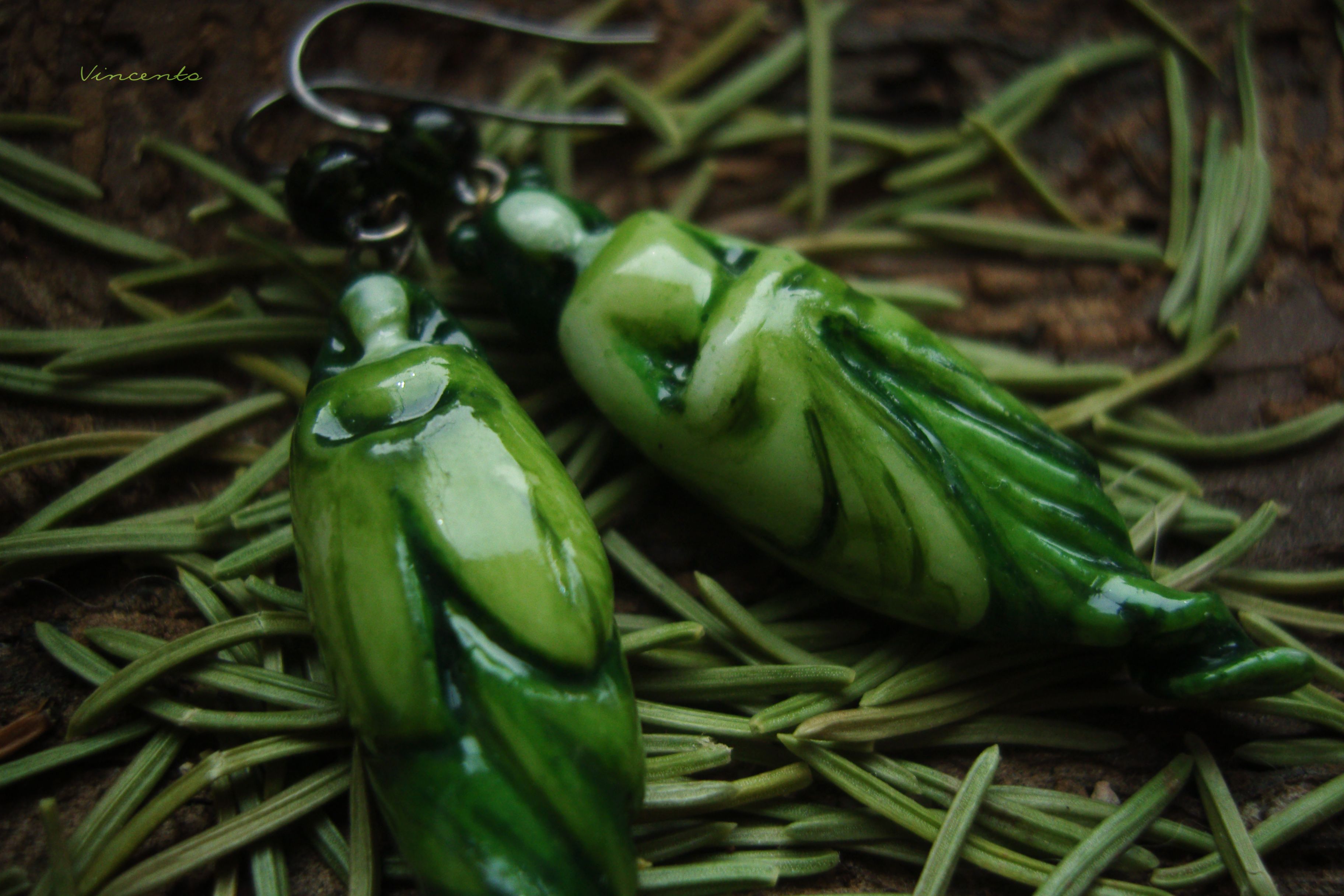 - Завершают образ красивые тёмно-зелёные прозрачные бусины чешского стекла.