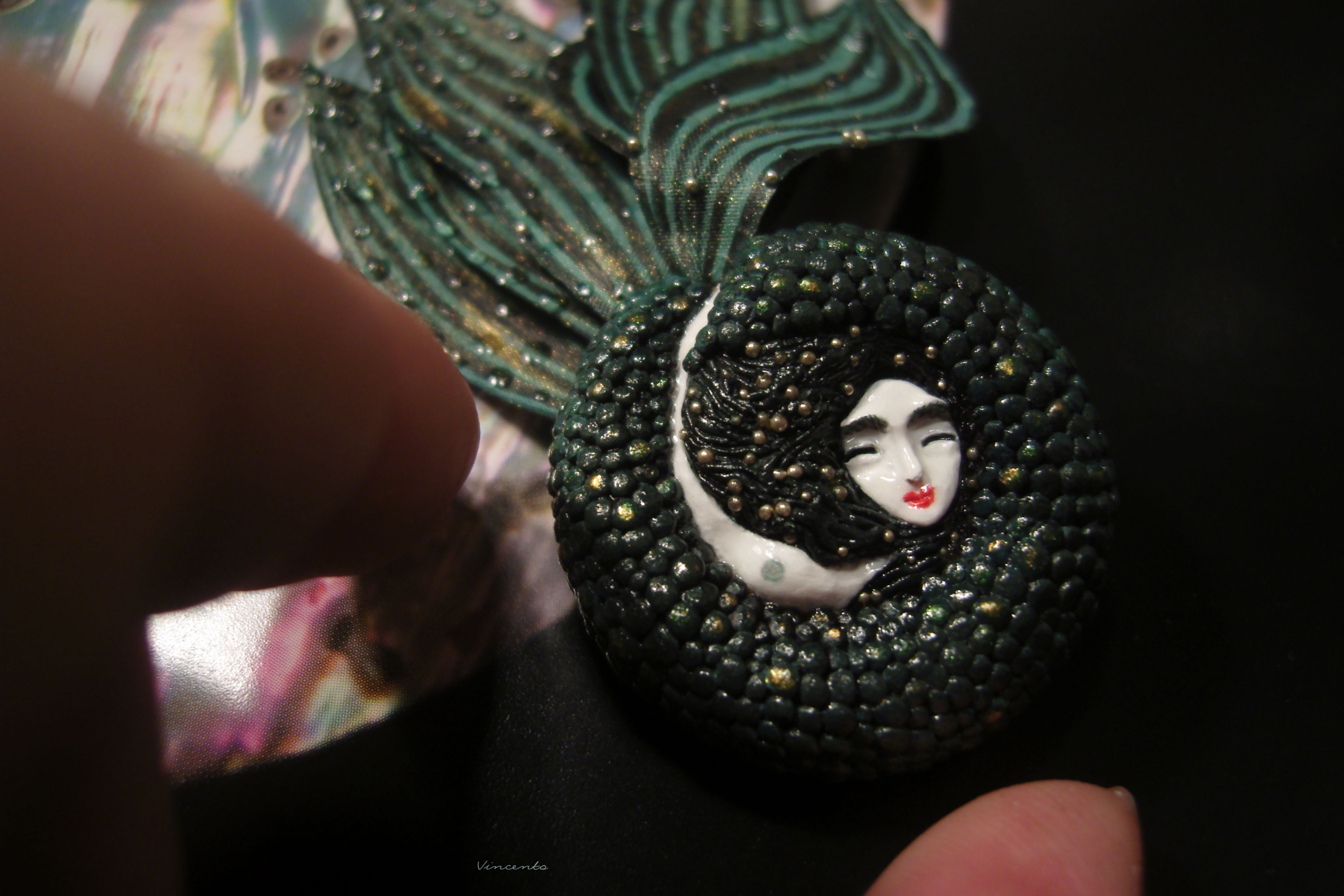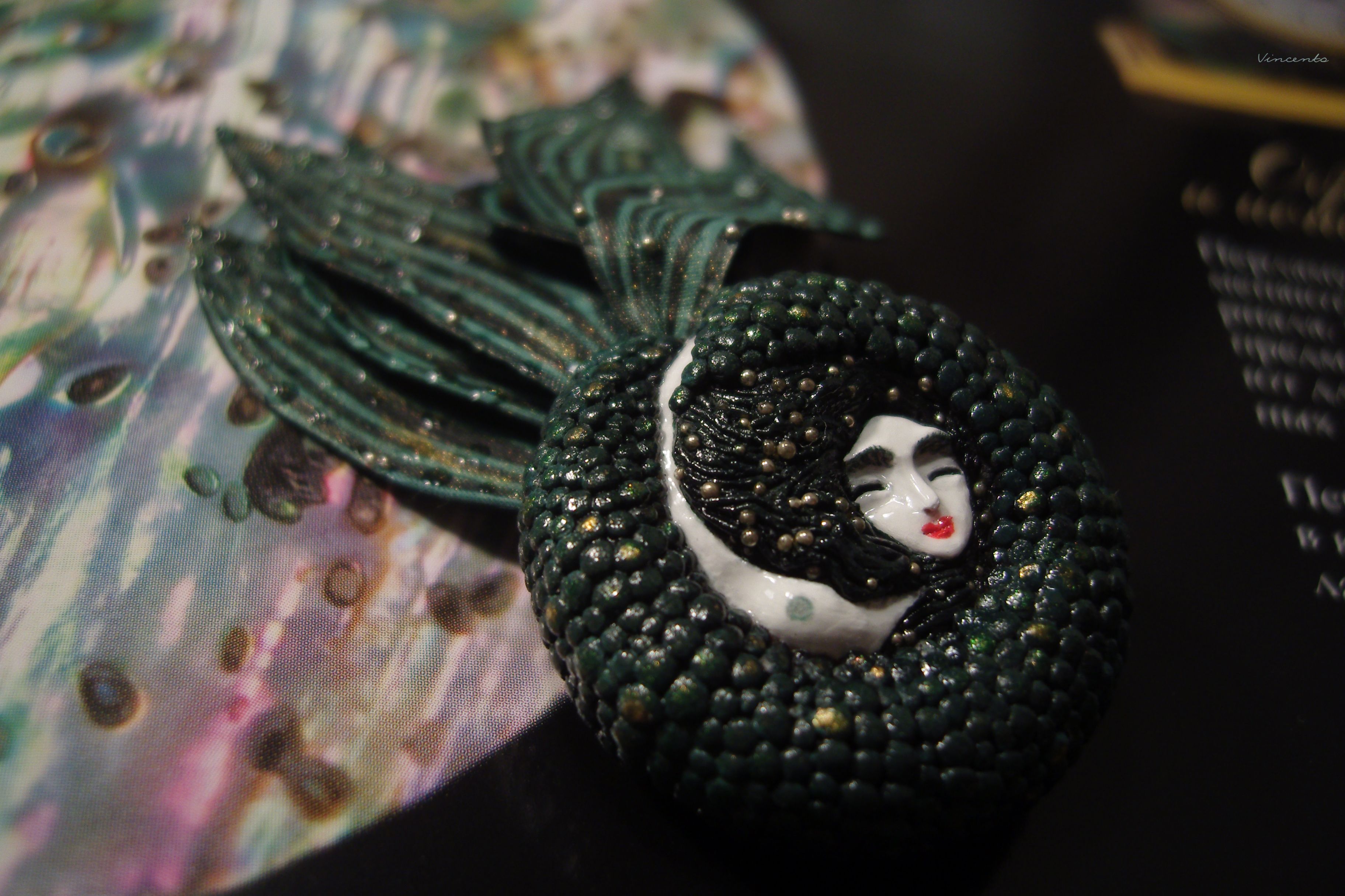 - Изящный комплект украшений из броши и серёжек в виде миниатюрной русалочки с шёлковыми плавниками.