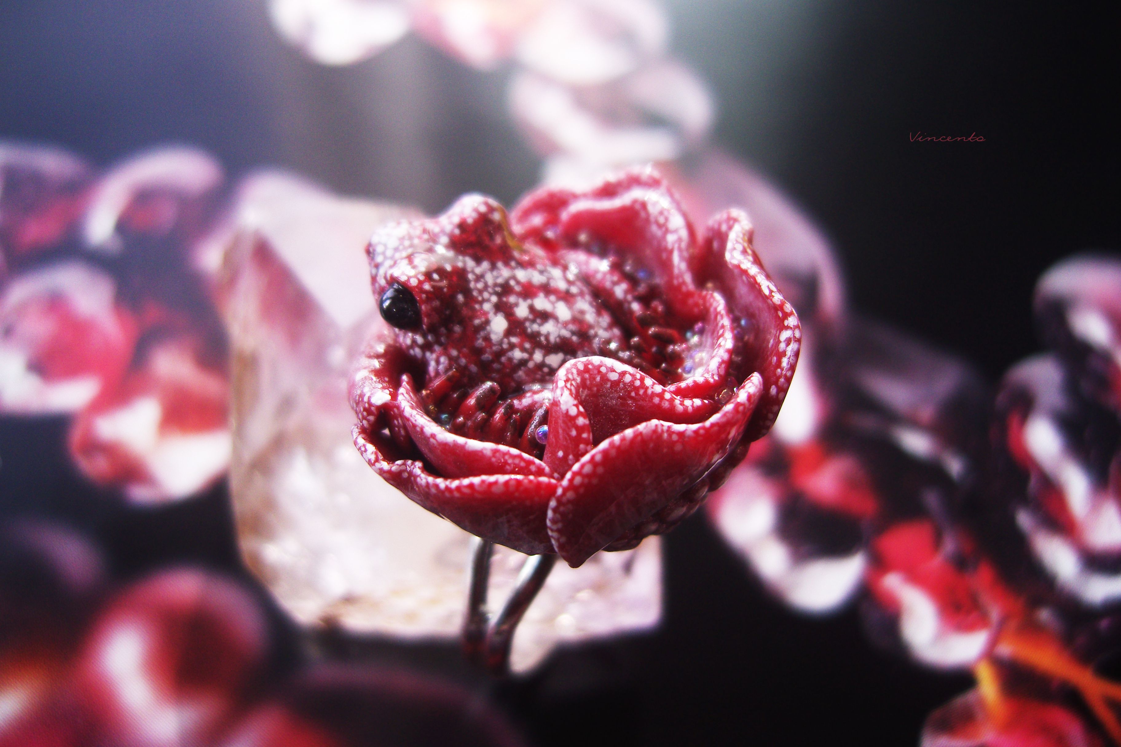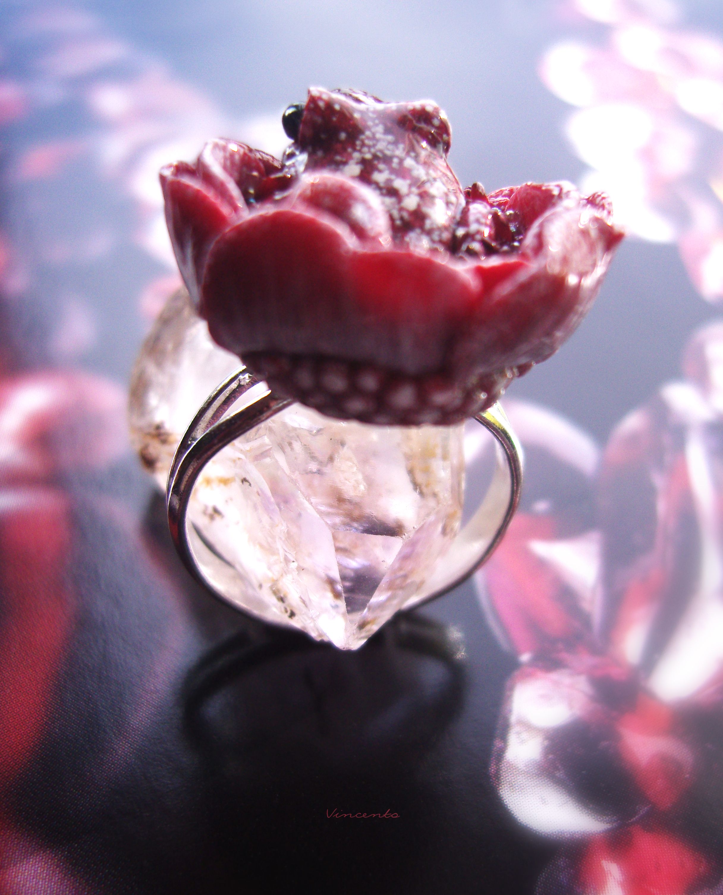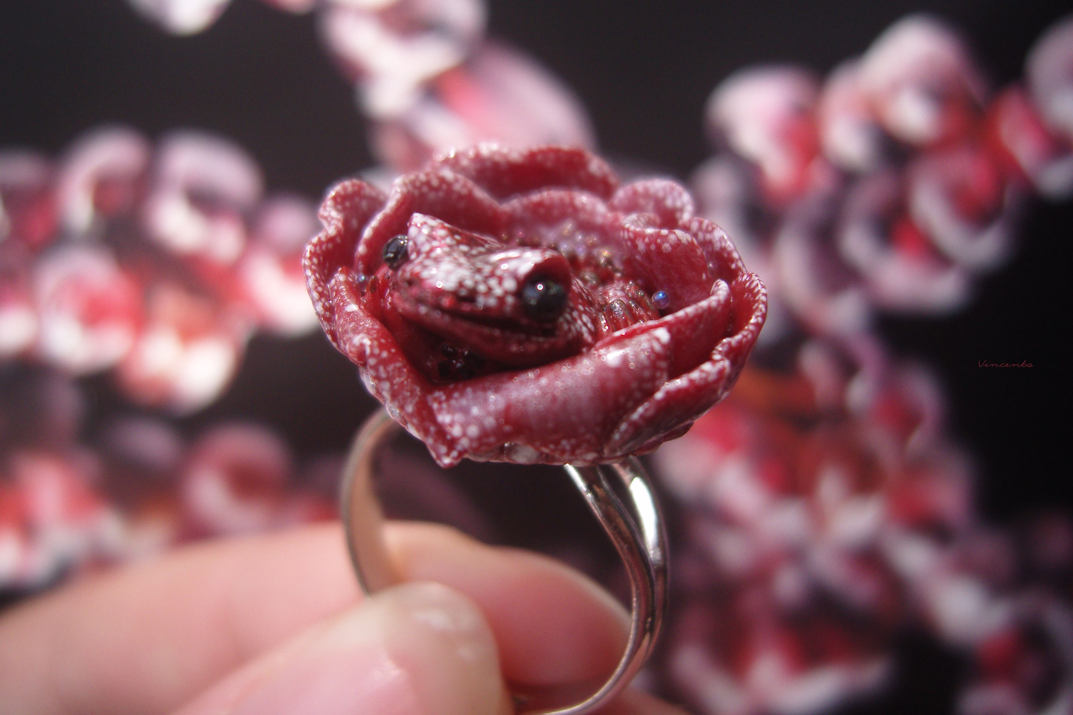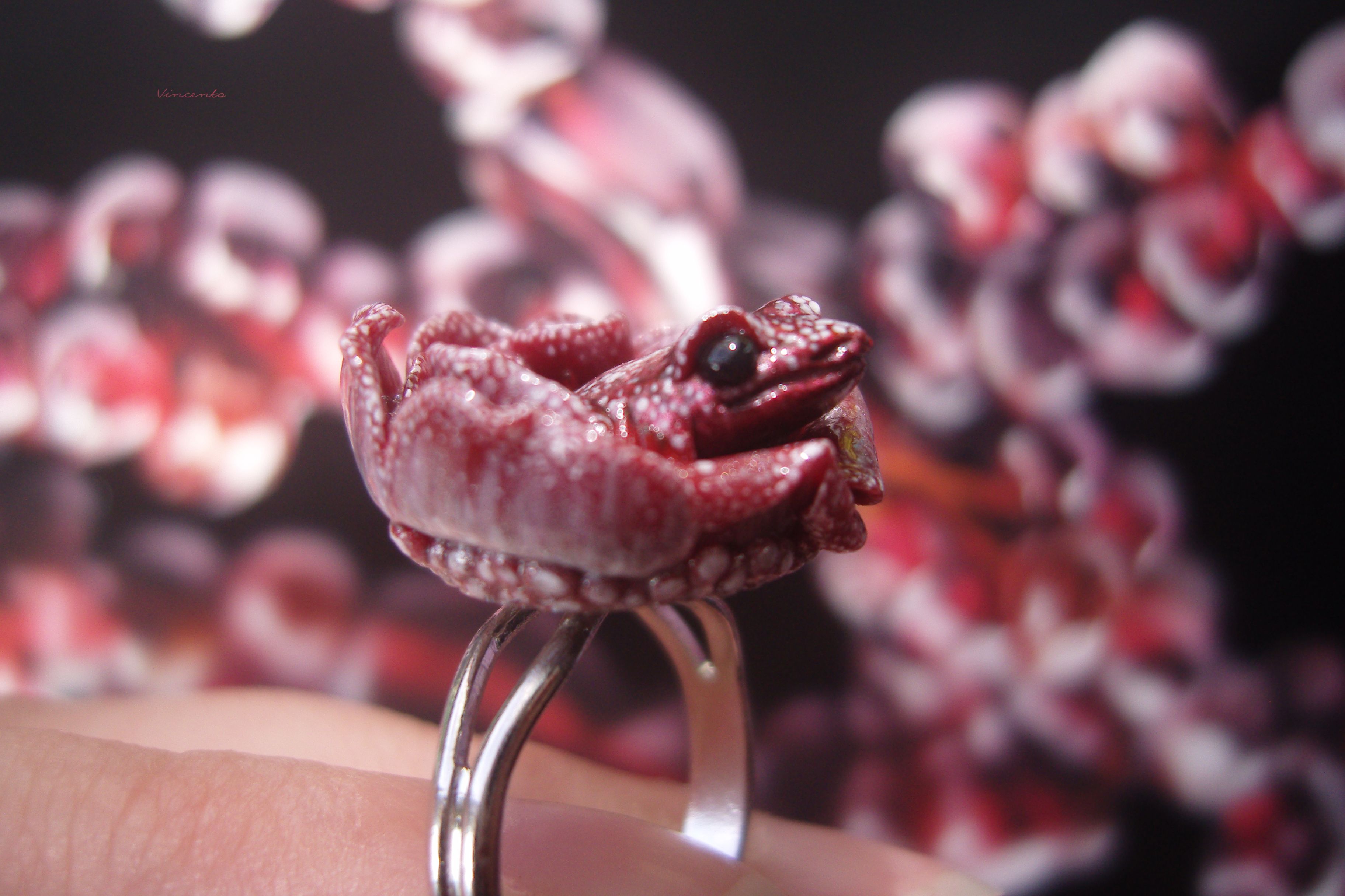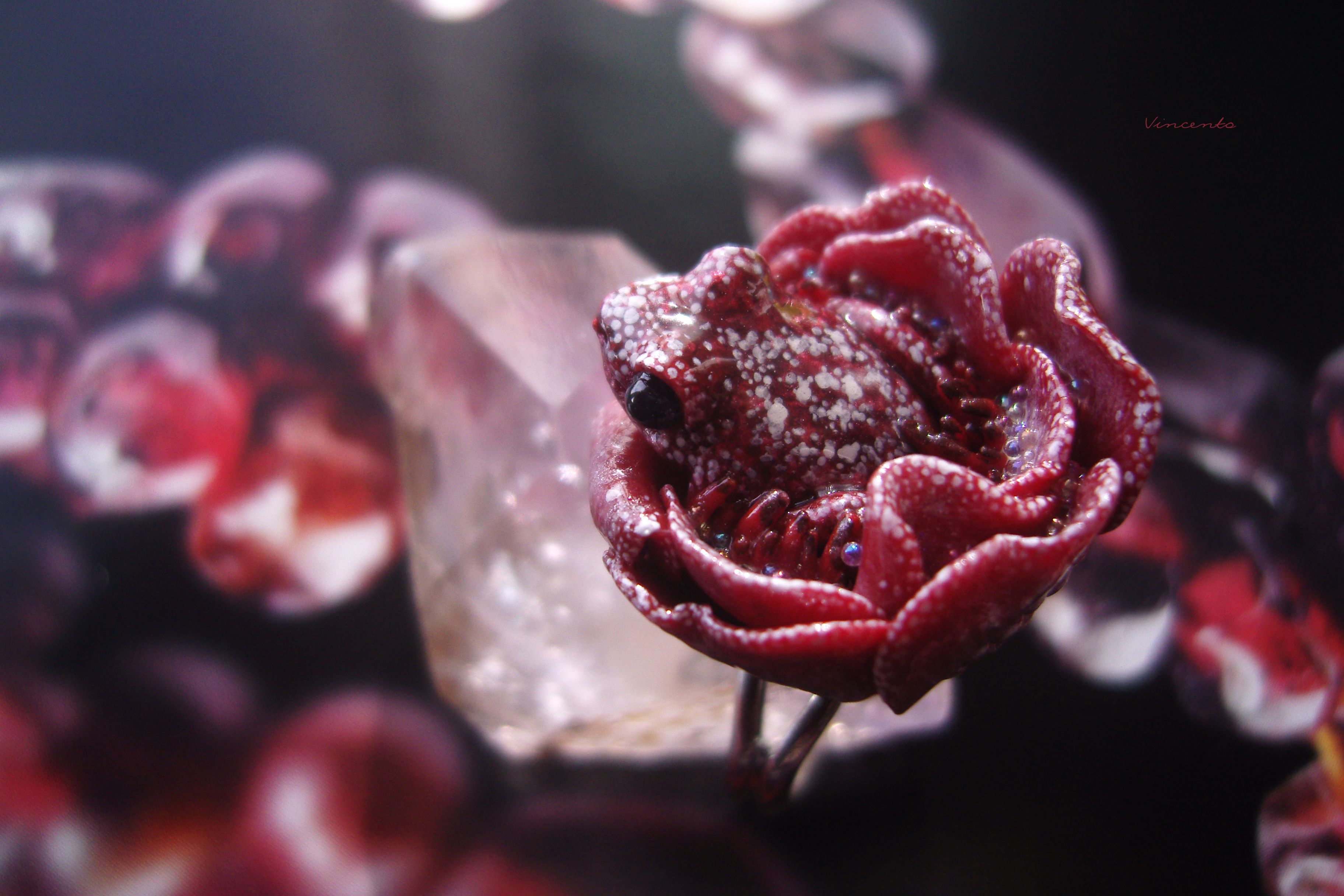 - Элегантное, парадное и изящное кольцо в виде фэнтезийного цветка дикого сербарина и миниатюрной лягушечки.
